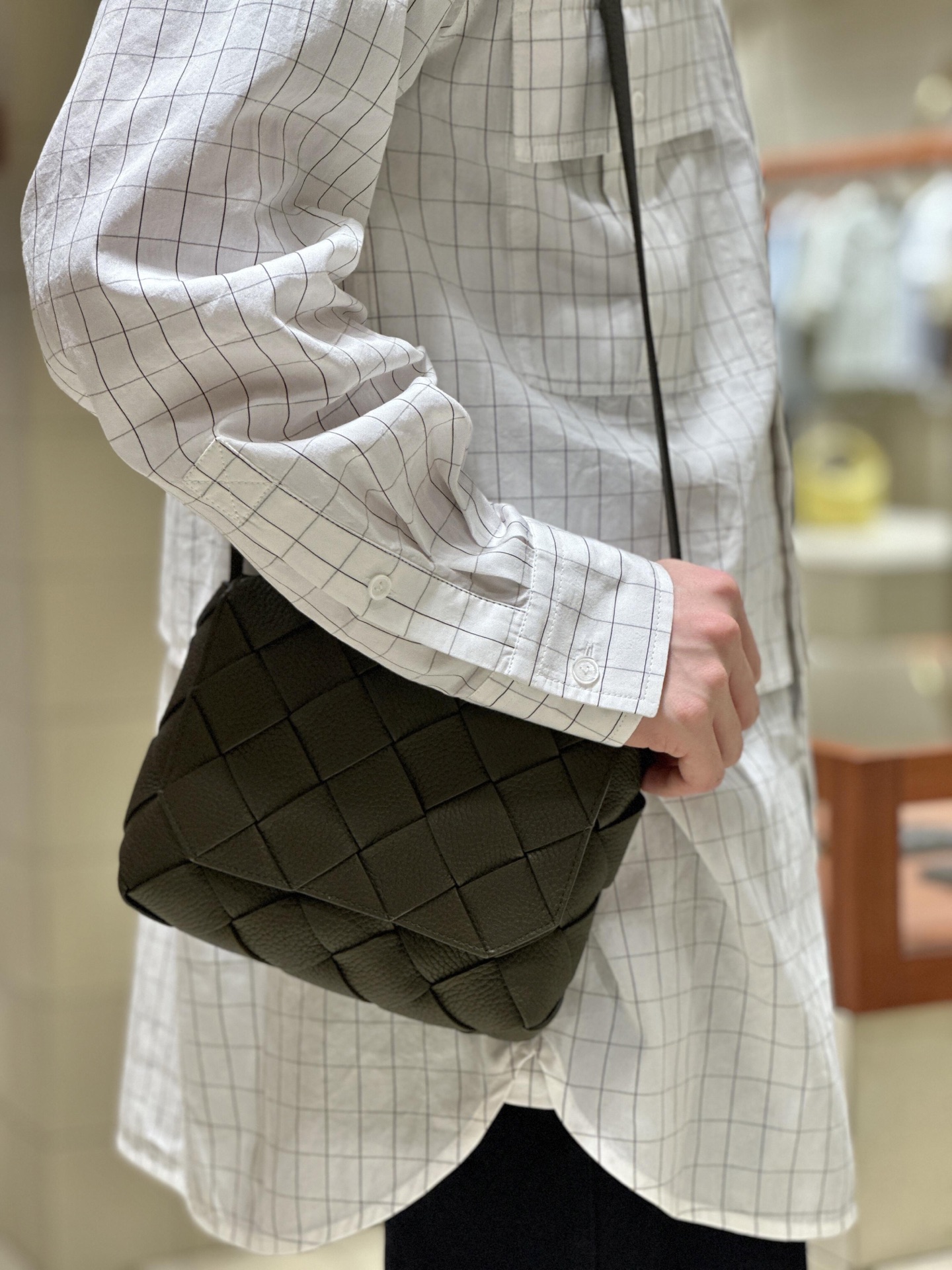 這款包包是AAAAA 1:1 質量(非常棒). 使用了和原版一模一樣的材料. 商標部分也保持了和葆蝶家/Bottega Veneta一樣. 圖片拍攝是實物包包拍攝, 您所收到的實物保證和我們圖片一模一樣.