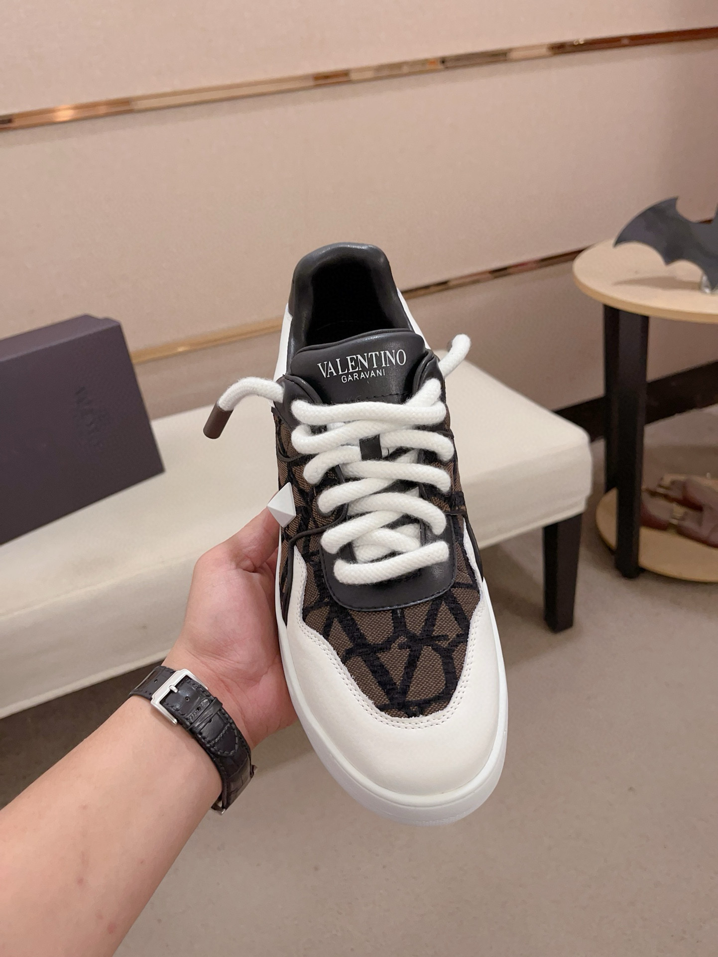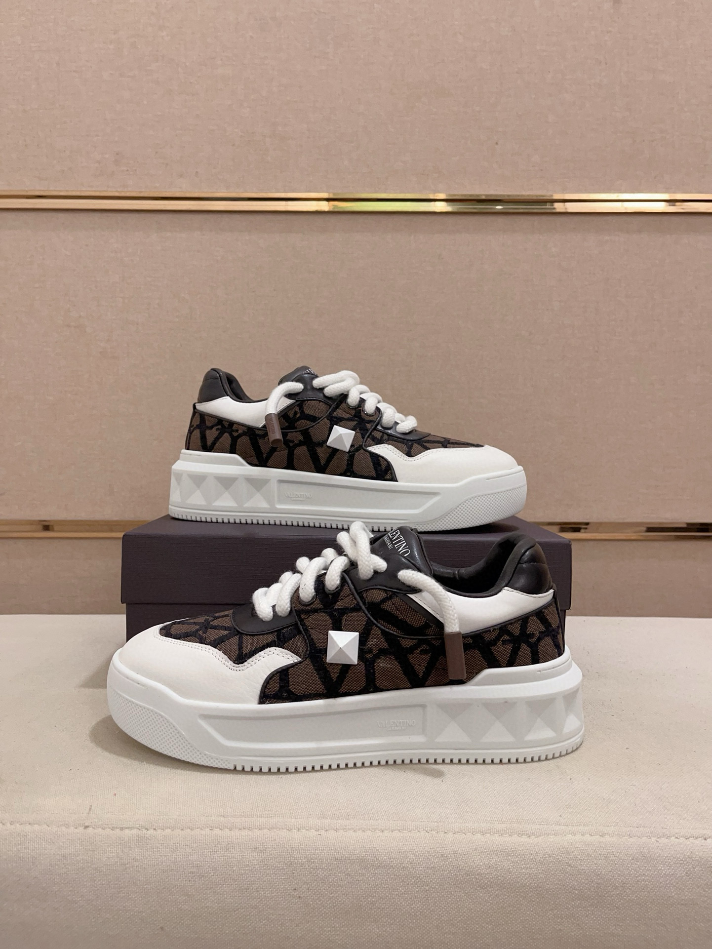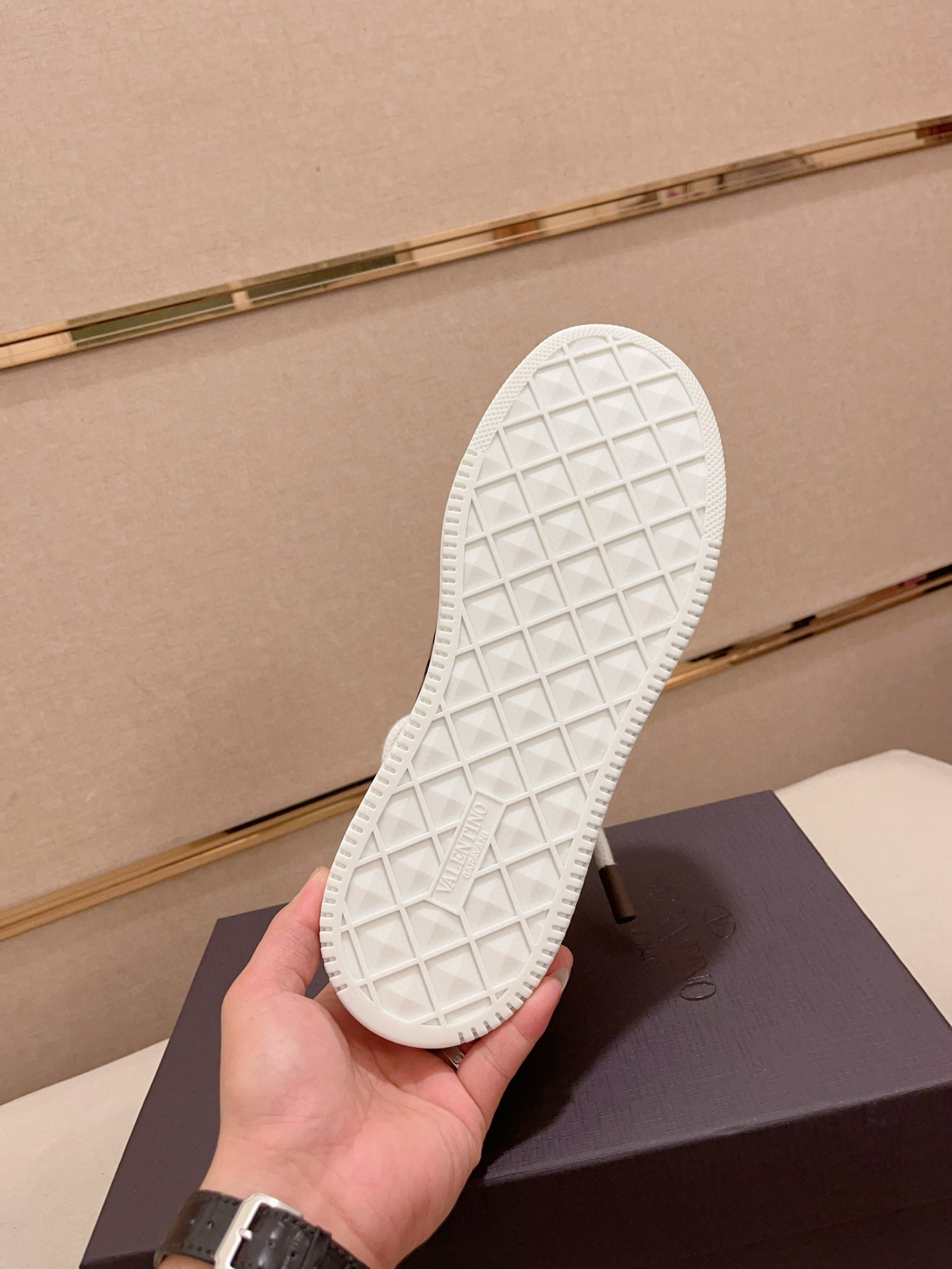 這款鞋子是AAAAA 1:1 質量(非常棒). 使用了和原版一模一樣的材料. 商標部分也保持了和瓦倫蒂諾/Valentino一樣. 圖片拍攝是實物鞋子拍攝, 您所收到的實物保證和我們圖片一模一樣.