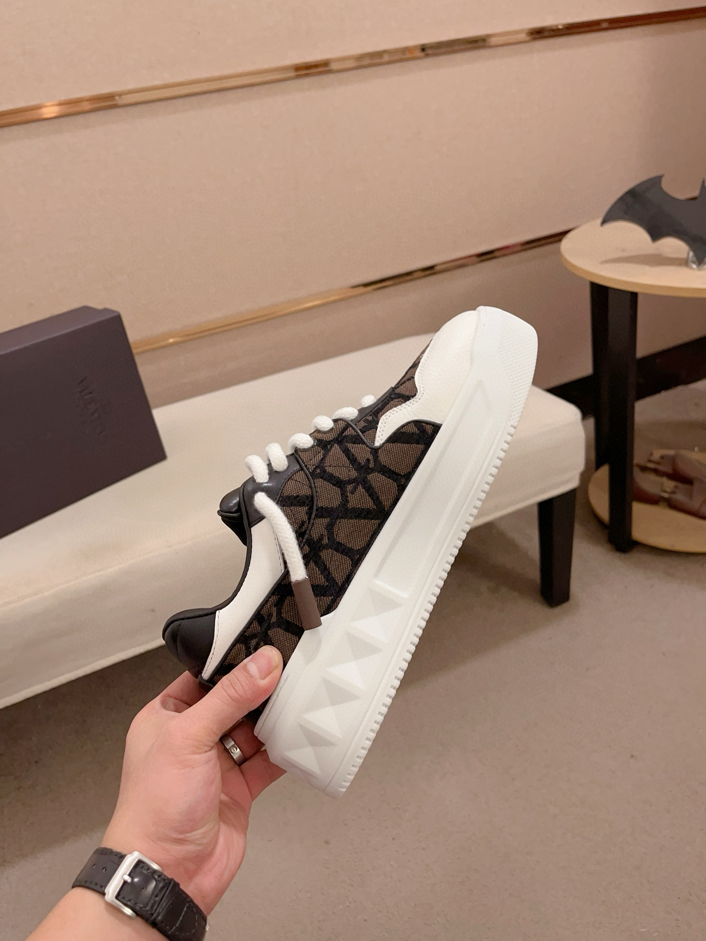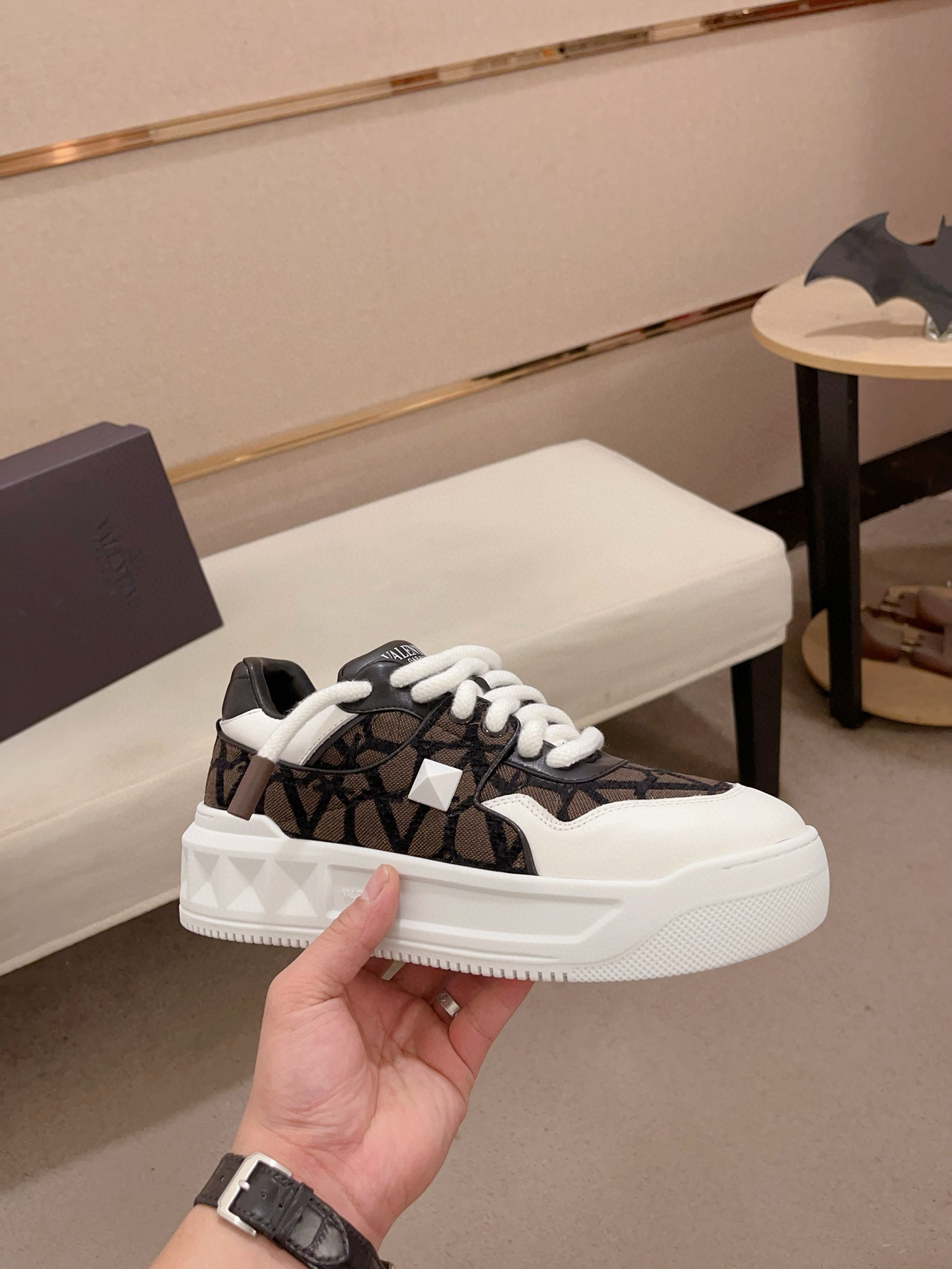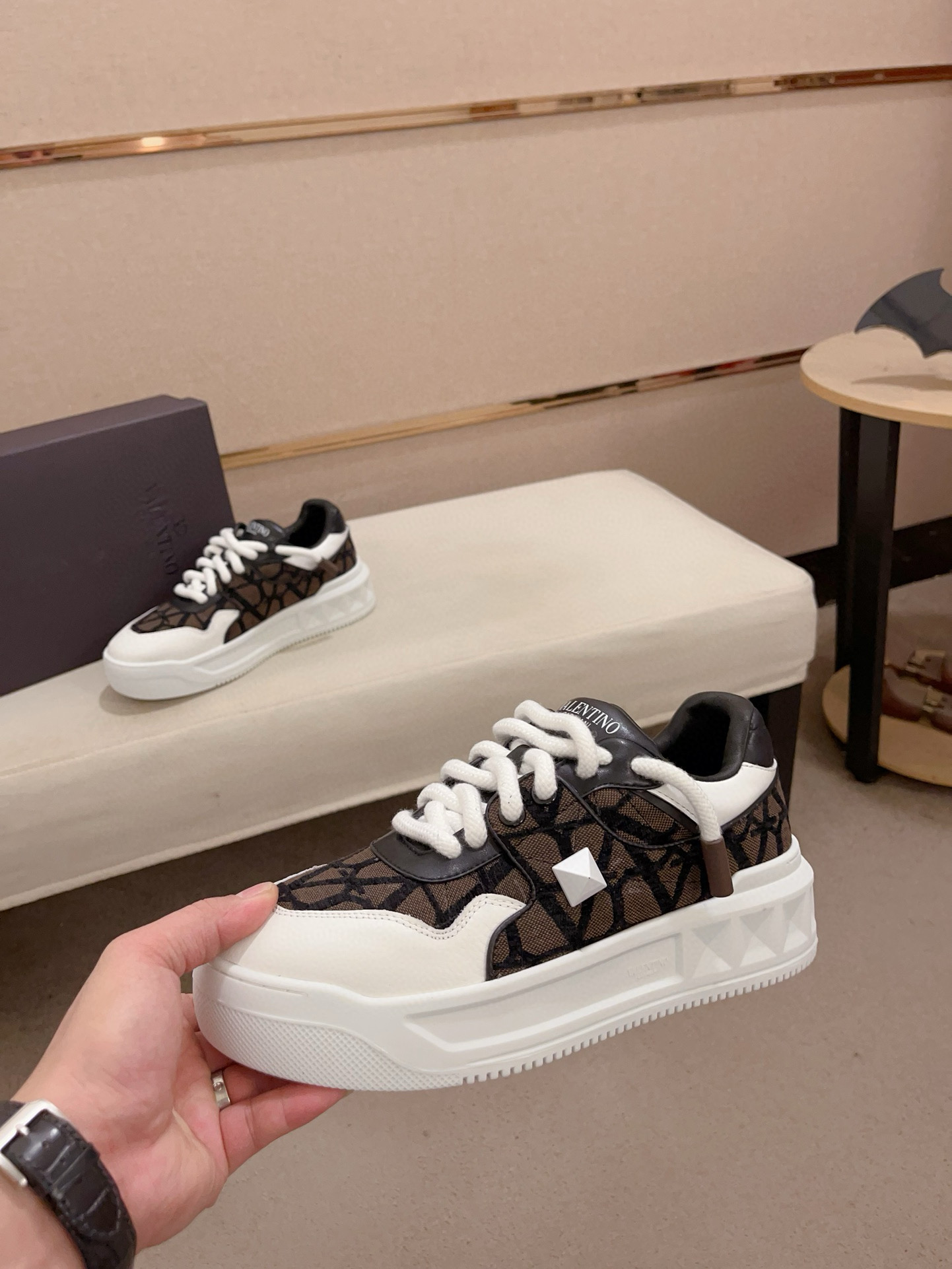 這款鞋子是AAAAA 1:1 質量(非常棒). 使用了和原版一模一樣的材料. 商標部分也保持了和瓦倫蒂諾/Valentino一樣. 圖片拍攝是實物鞋子拍攝, 您所收到的實物保證和我們圖片一模一樣.