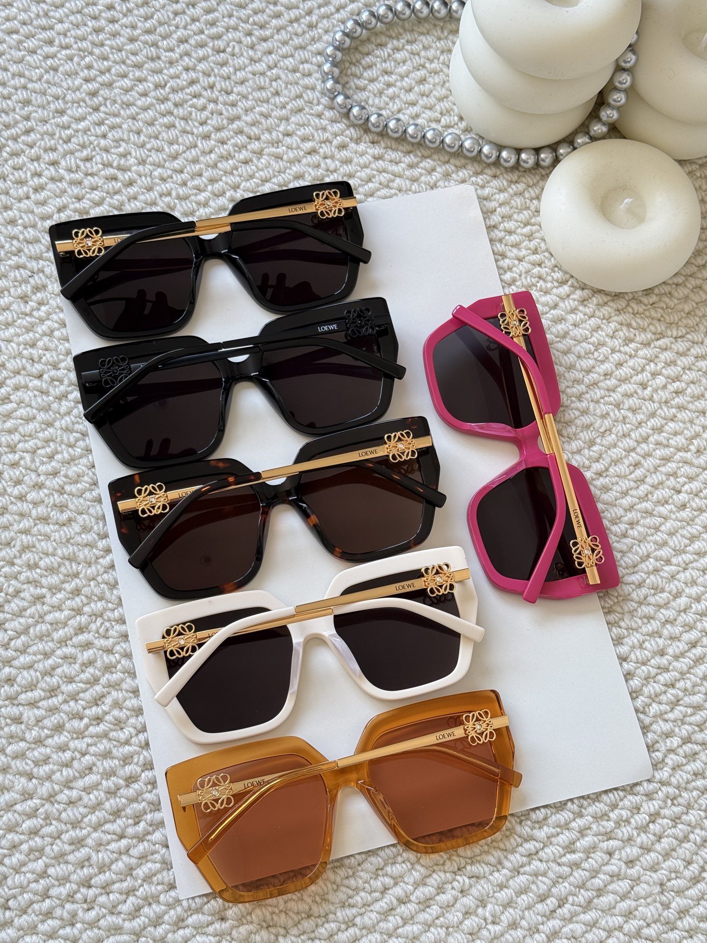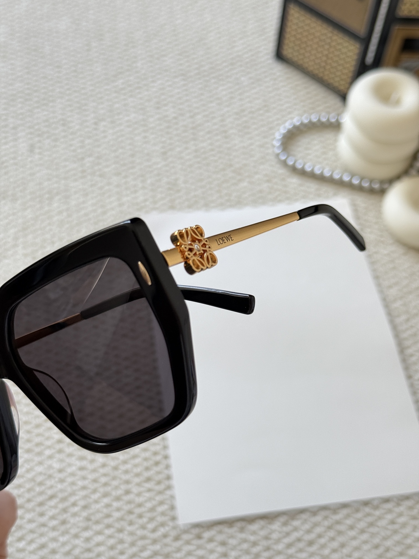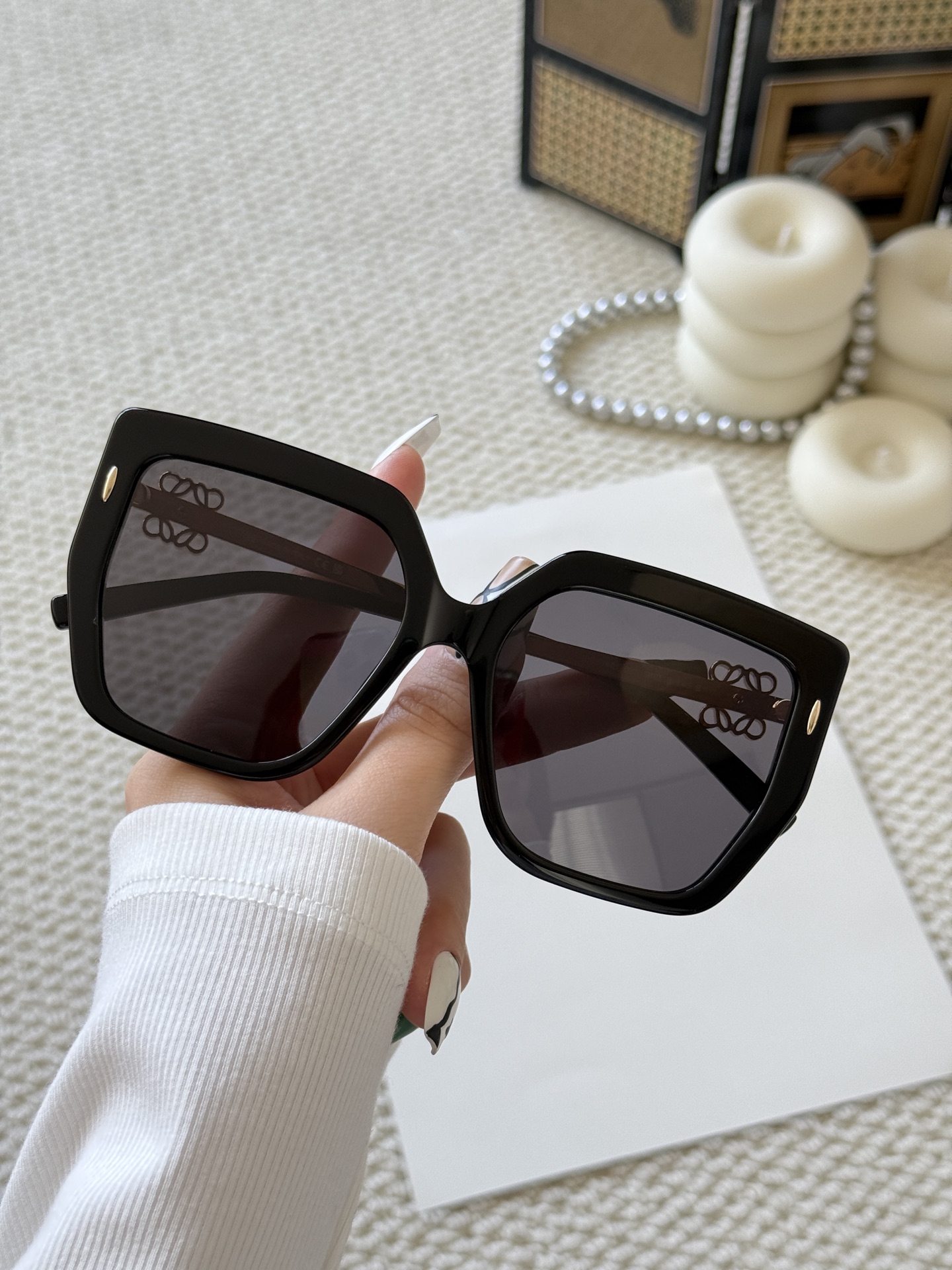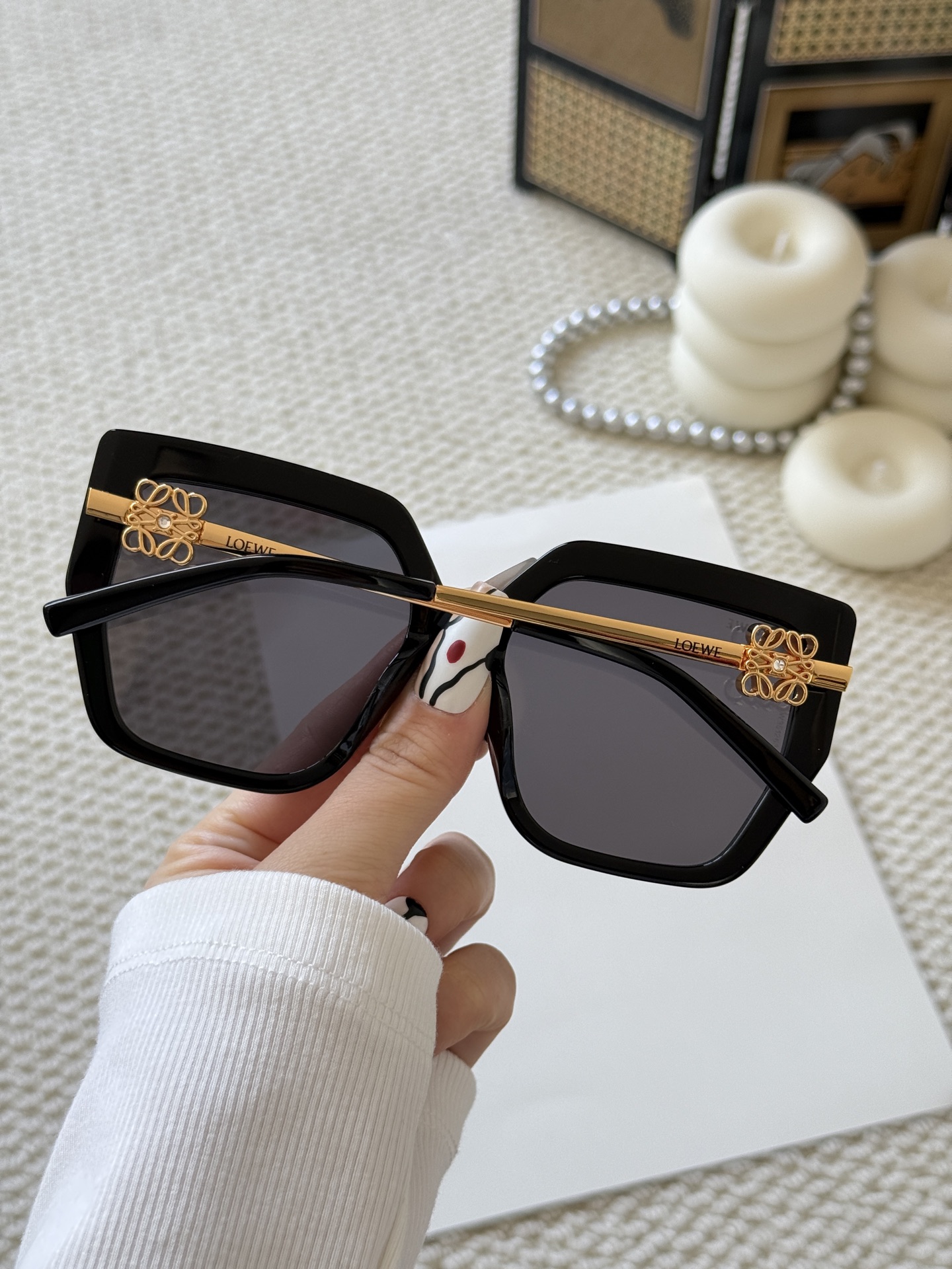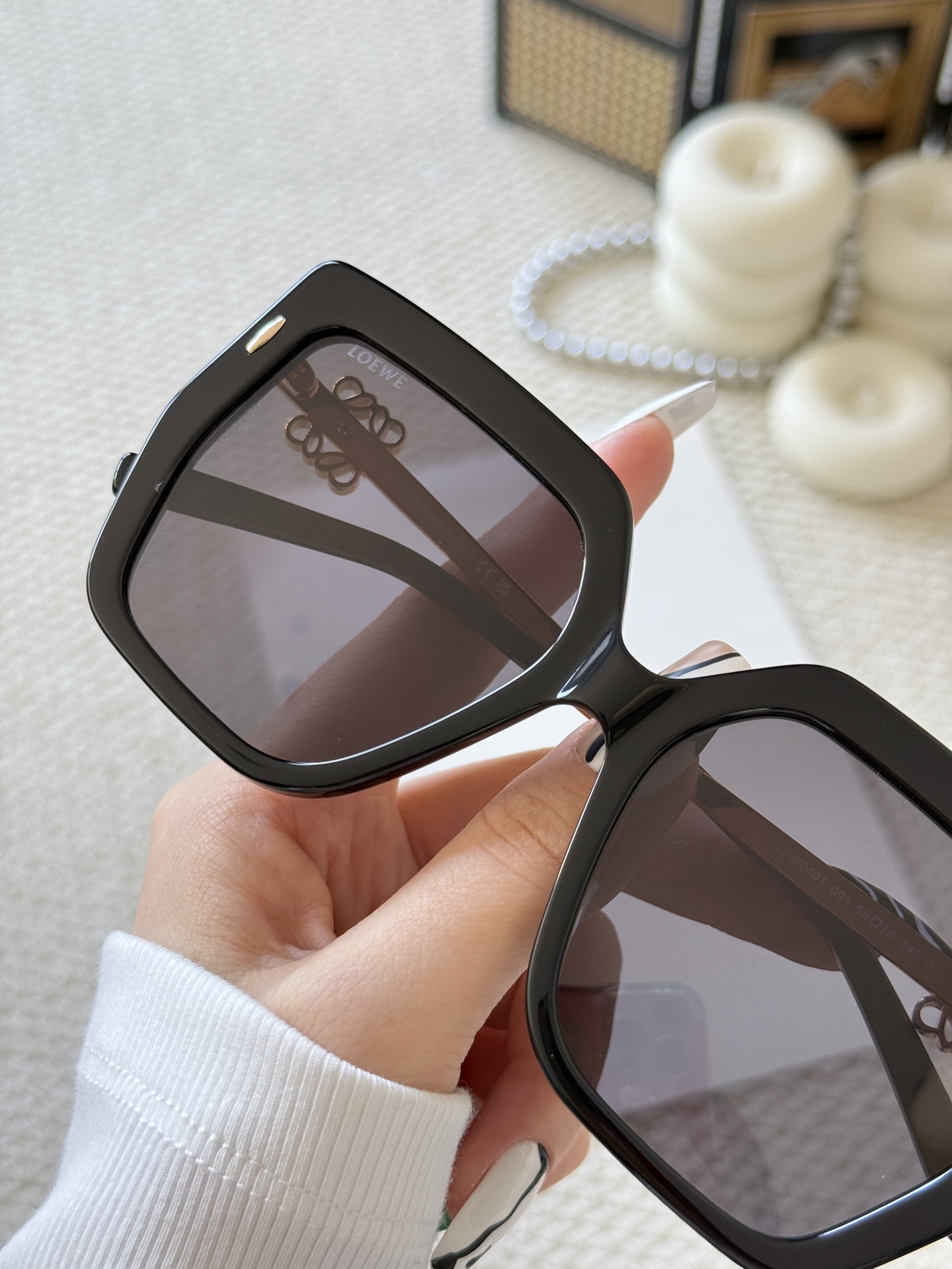 這款太陽眼鏡是AAAAA 1:1 質量(非常棒). 使用了和原版一模一樣的材料. 商標部分也保持了和Loewe一樣. 圖片拍攝是實物太陽眼鏡拍攝, 您所收到的實物保證和我們圖片一模一樣.