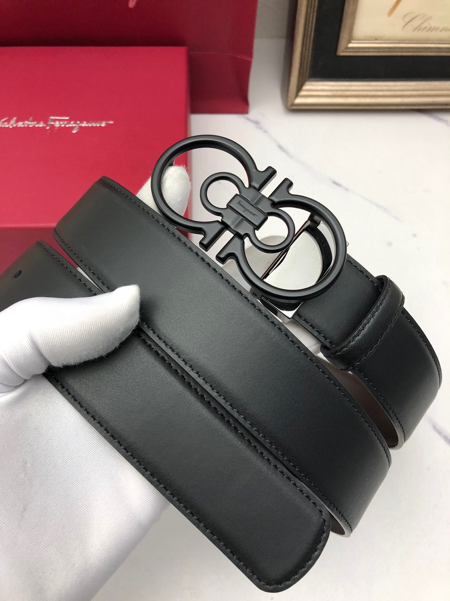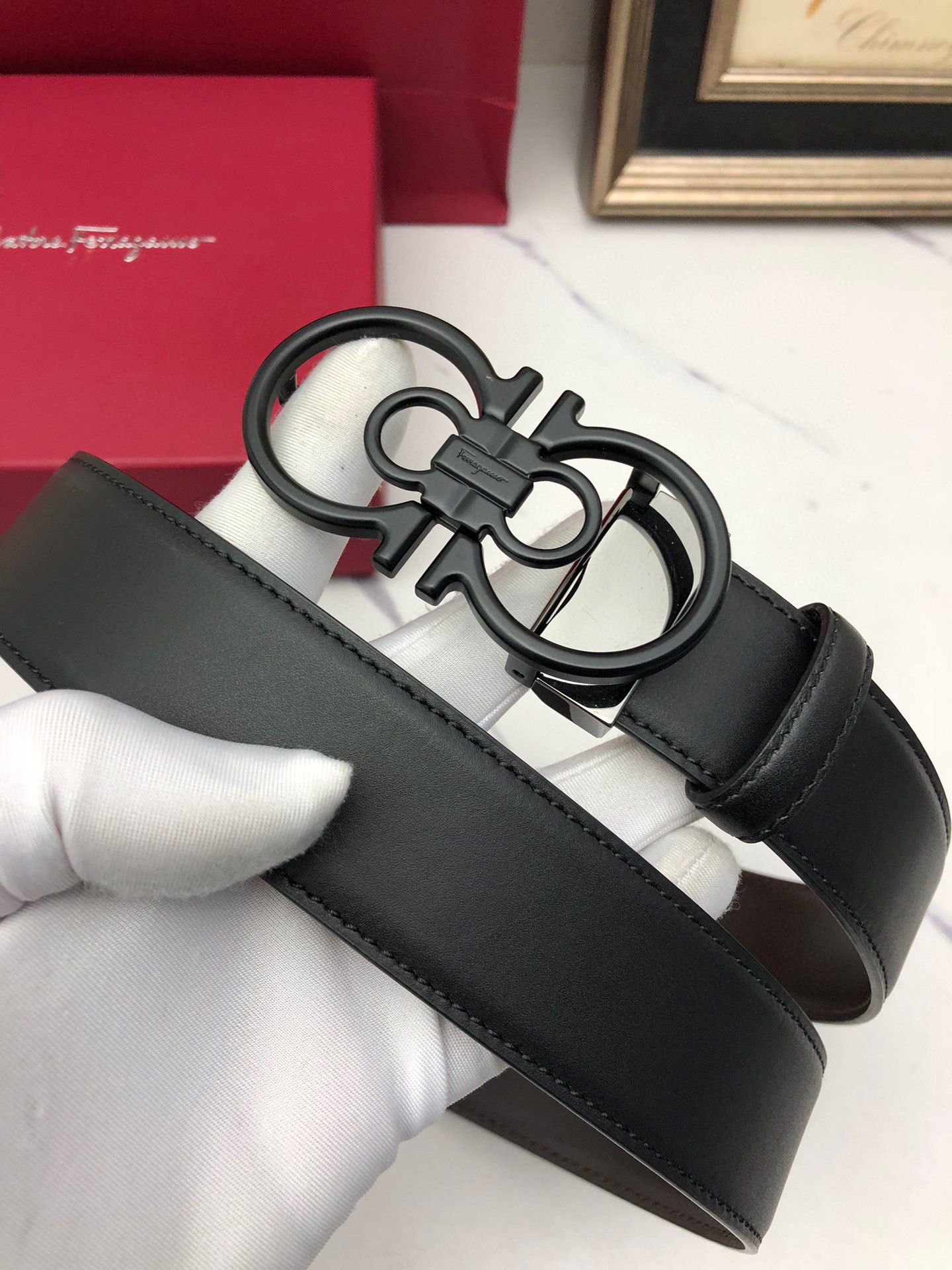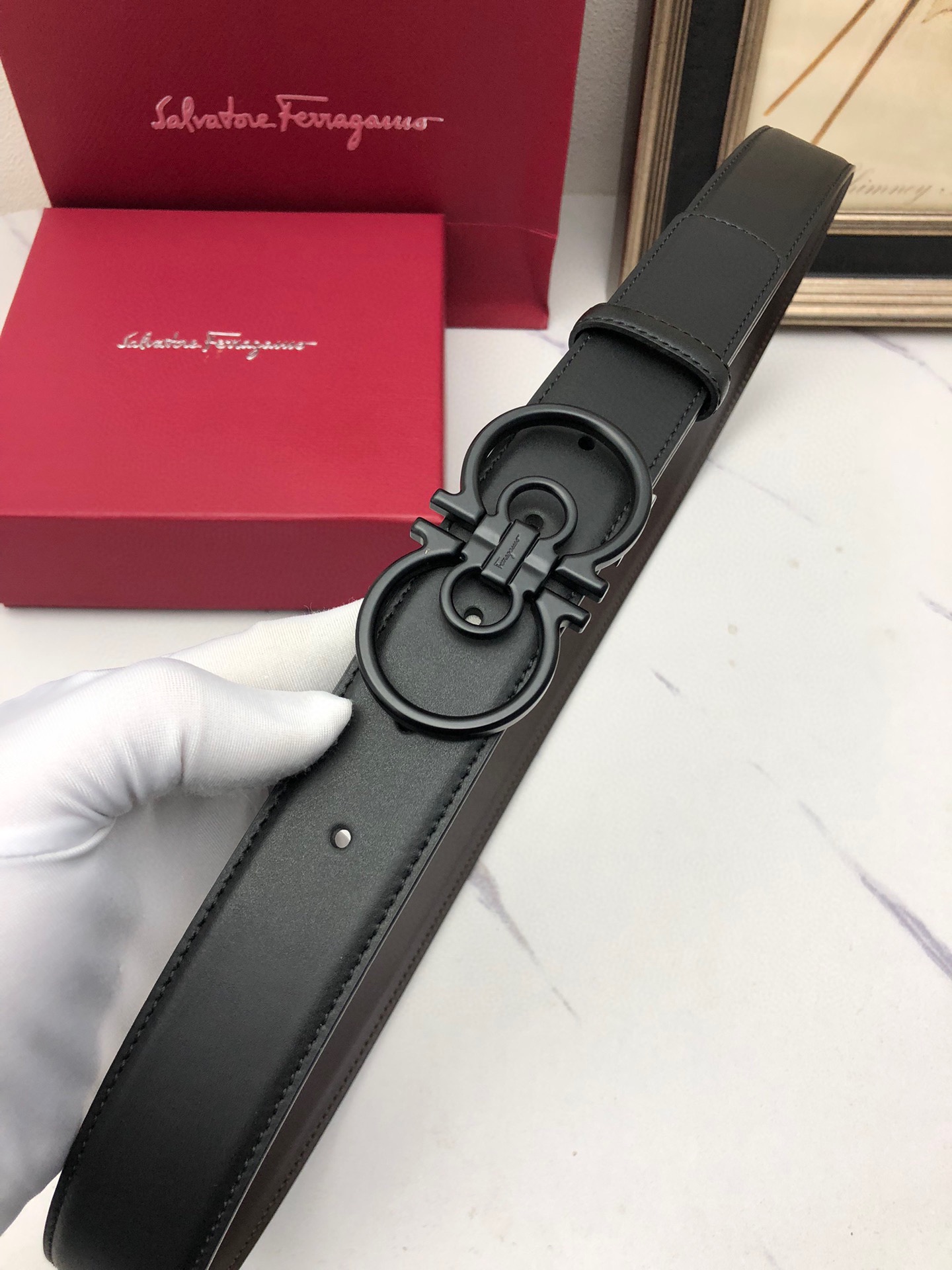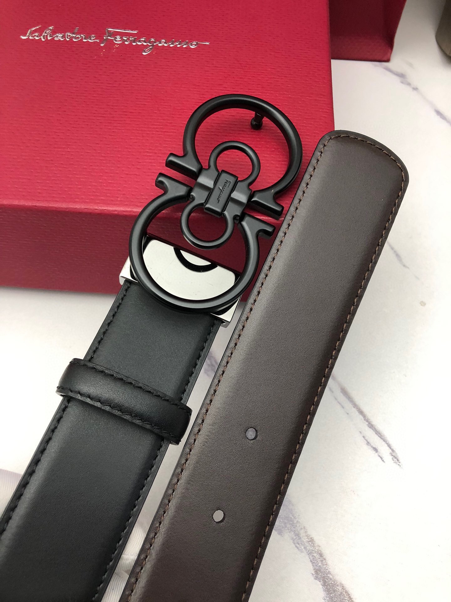 這款皮帶是AAAAA 1:1 質量(非常棒). 使用了和原版一模一樣的材料. 商標部分也保持了和菲拉格慕/Salvatore Ferragamo一樣. 圖片拍攝是實物皮帶拍攝, 您所收到的實物保證和我們圖片一模一樣.