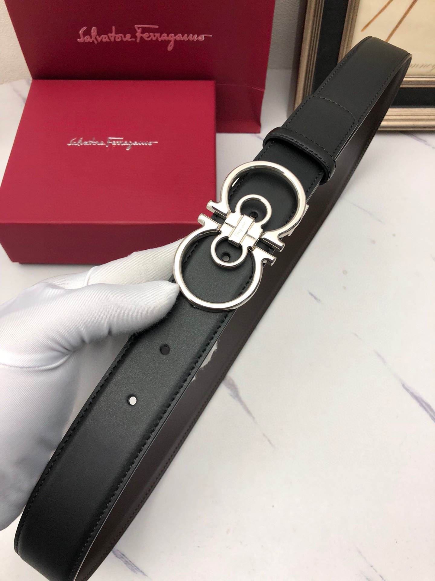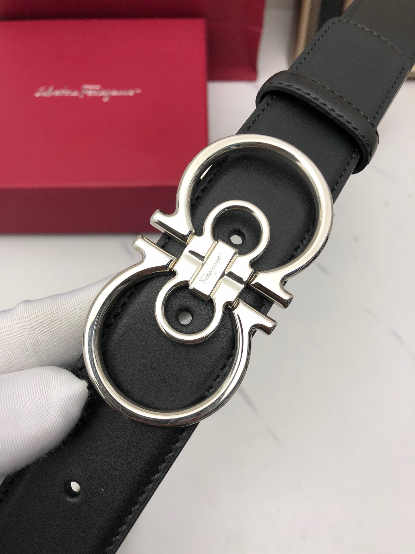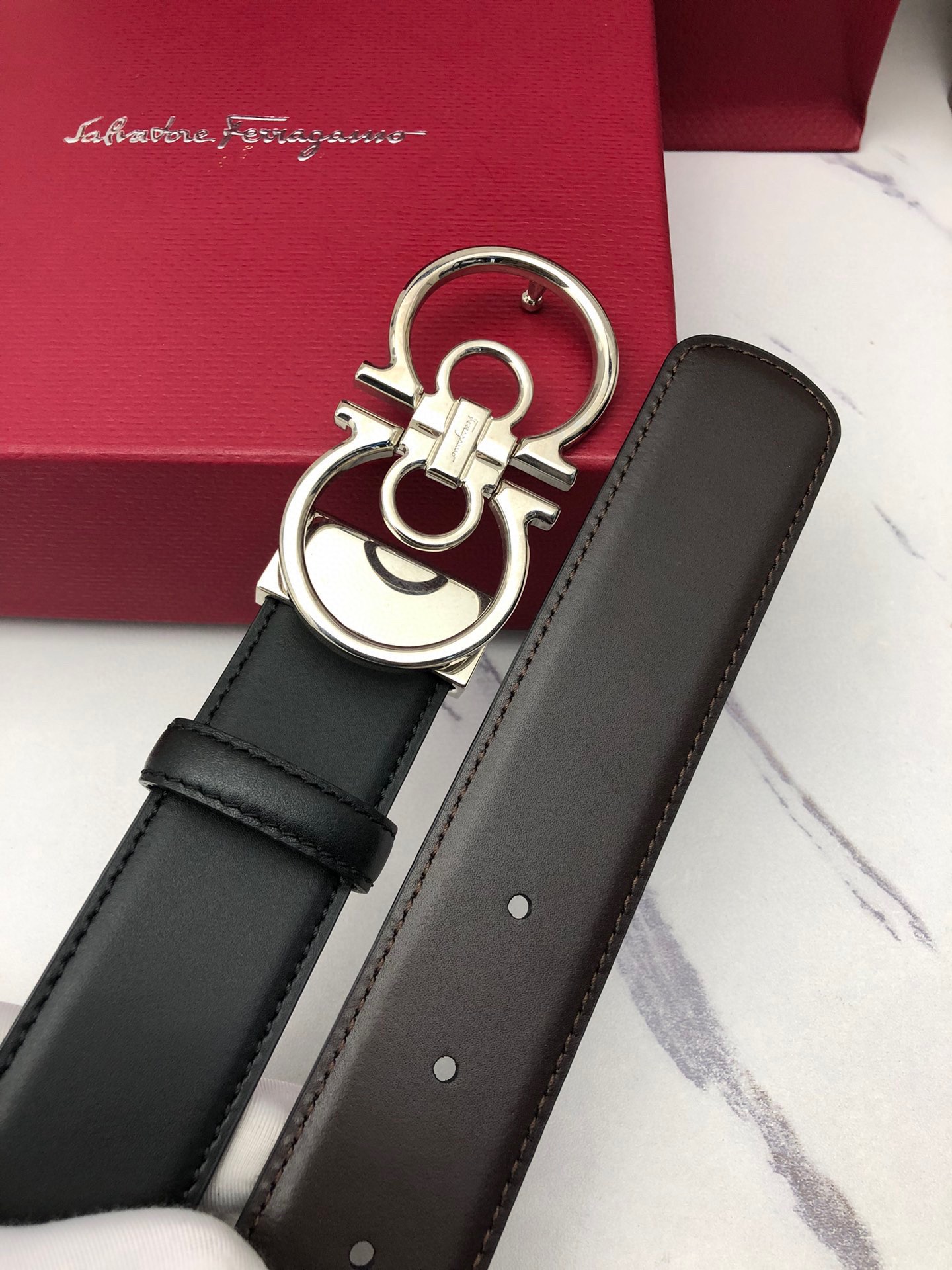 這款皮帶是AAAAA 1:1 質量(非常棒). 使用了和原版一模一樣的材料. 商標部分也保持了和菲拉格慕/Salvatore Ferragamo一樣. 圖片拍攝是實物皮帶拍攝, 您所收到的實物保證和我們圖片一模一樣.