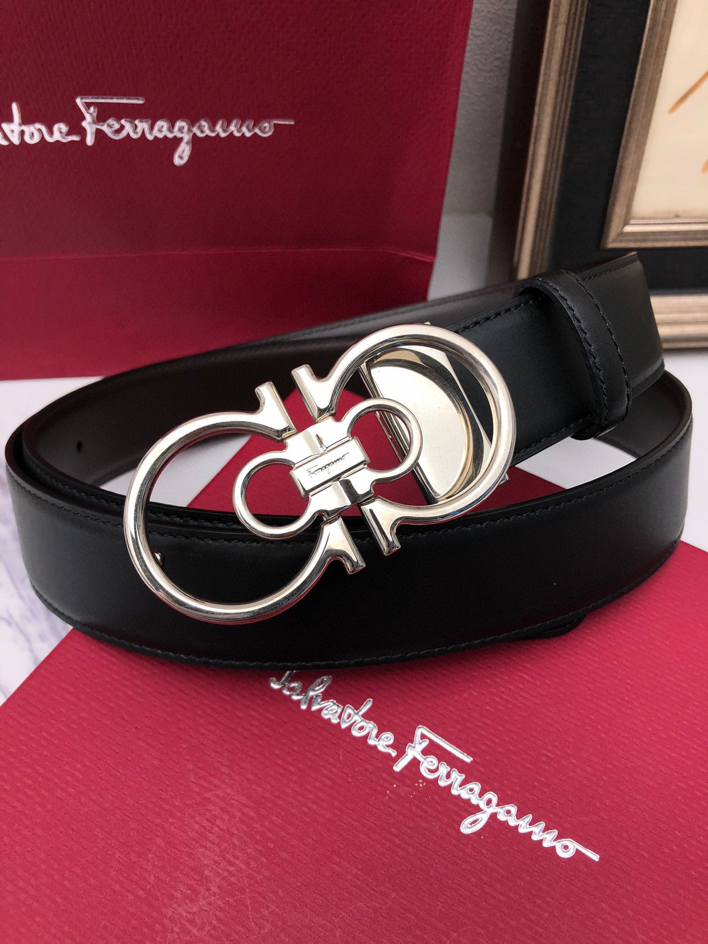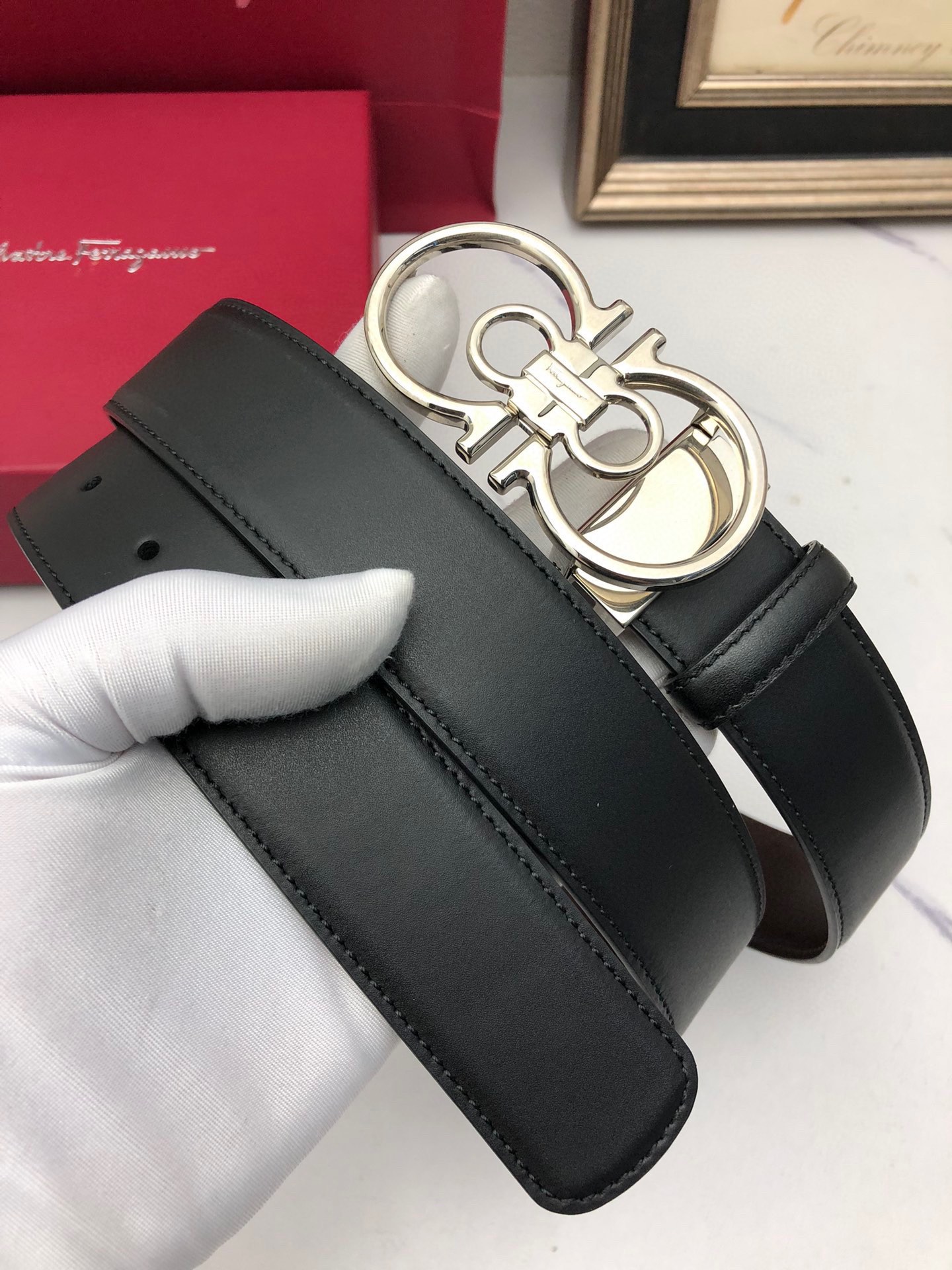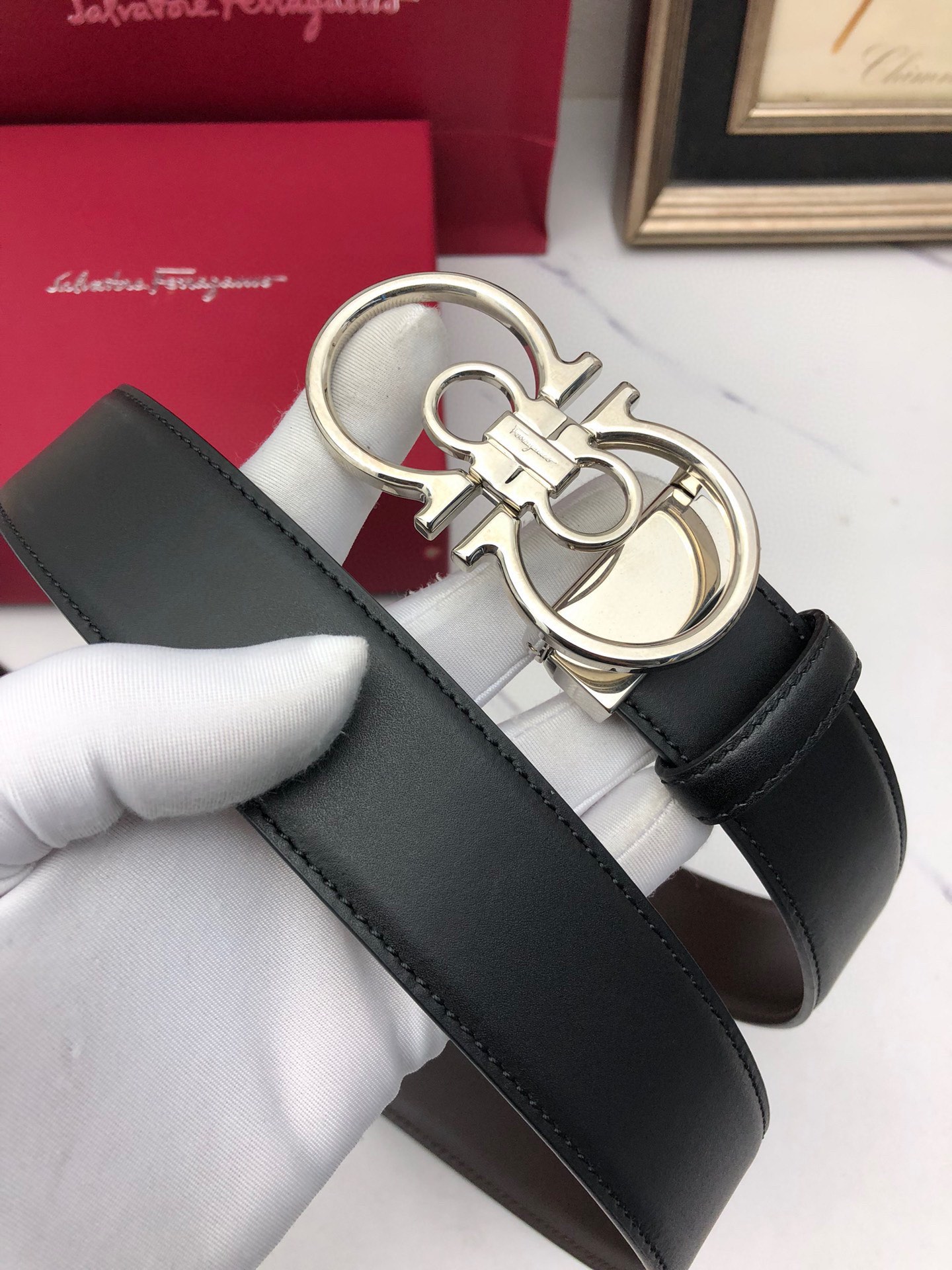 這款皮帶是AAAAA 1:1 質量(非常棒). 使用了和原版一模一樣的材料. 商標部分也保持了和菲拉格慕/Salvatore Ferragamo一樣. 圖片拍攝是實物皮帶拍攝, 您所收到的實物保證和我們圖片一模一樣.