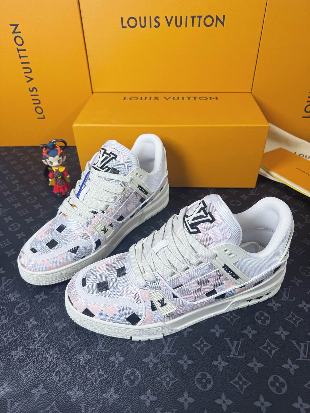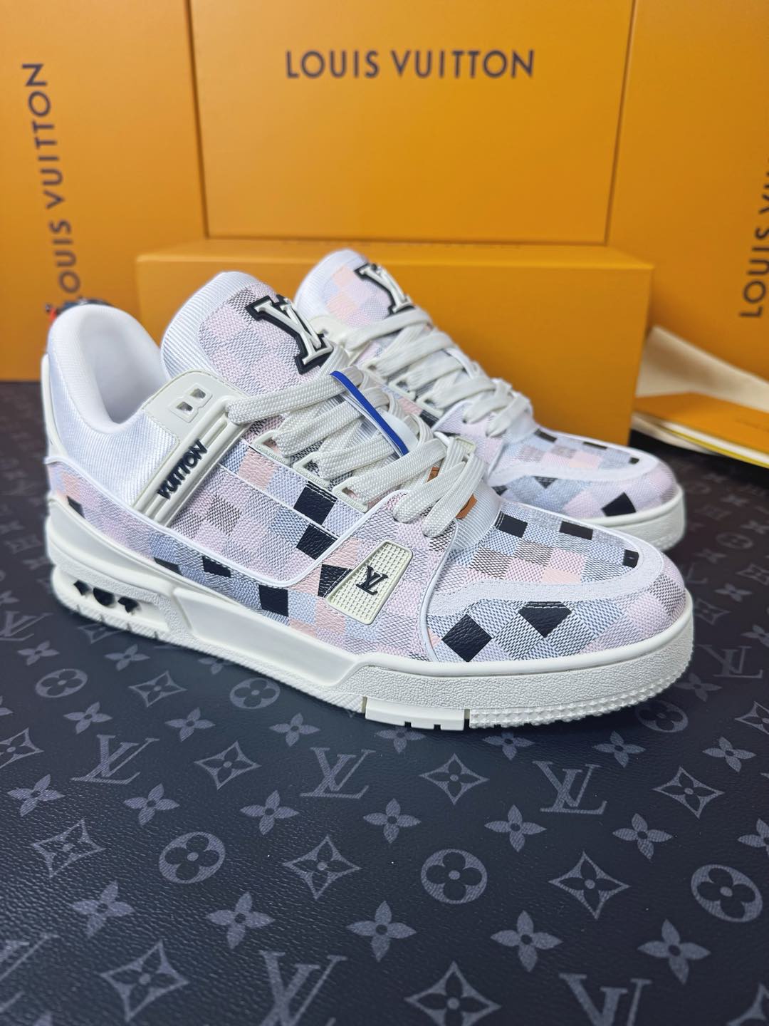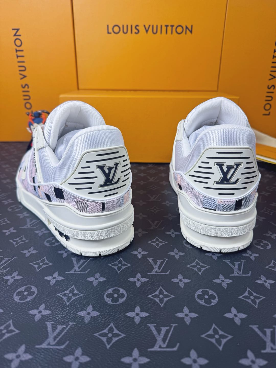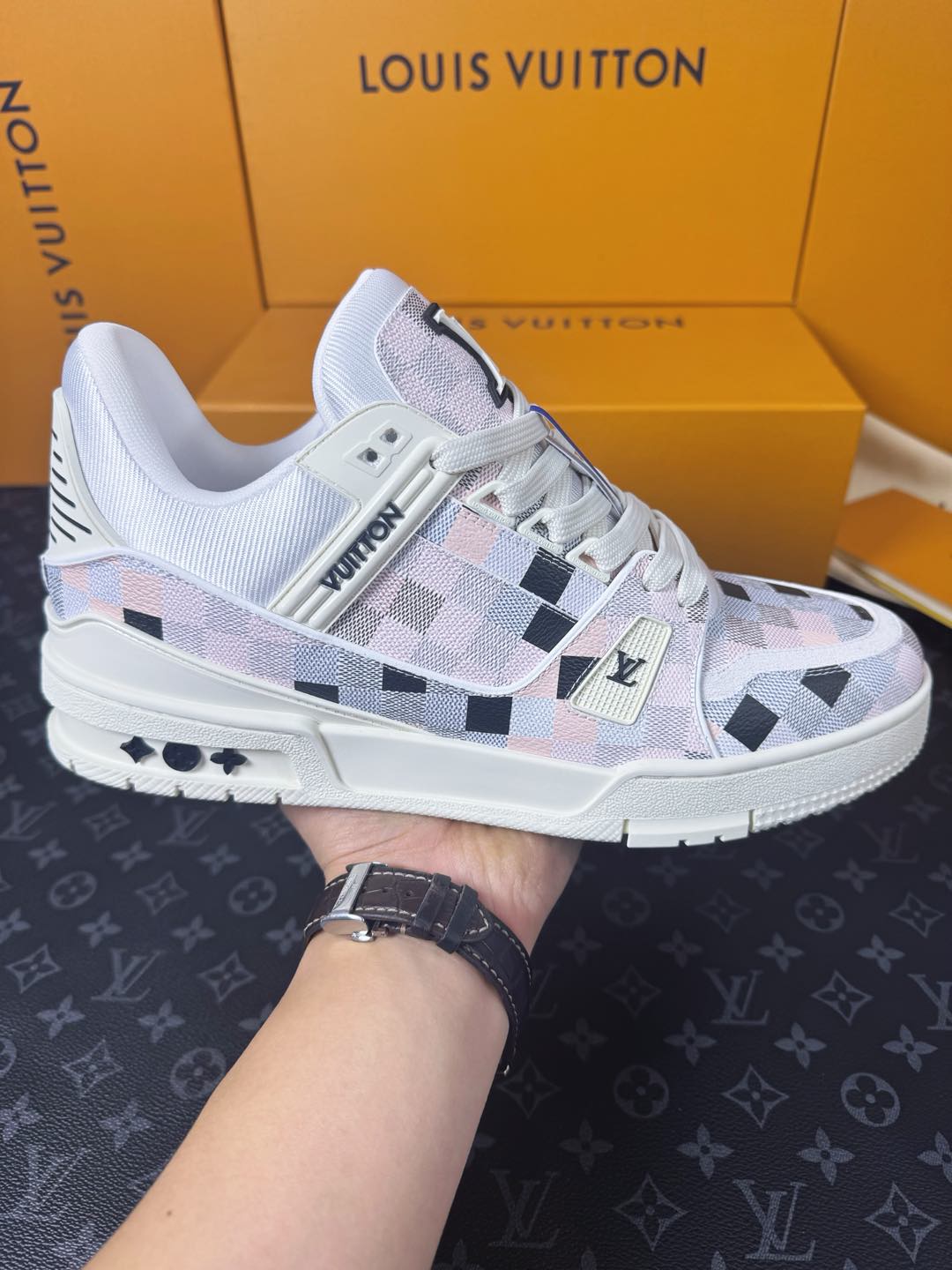 這款鞋子是AAAAA 1:1 質量(非常棒). 使用了和原版一模一樣的材料. 商標部分也保持了和路易威登/Louis Vuitton一樣. 圖片拍攝是實物鞋子拍攝, 您所收到的實物保證和我們圖片一模一樣.