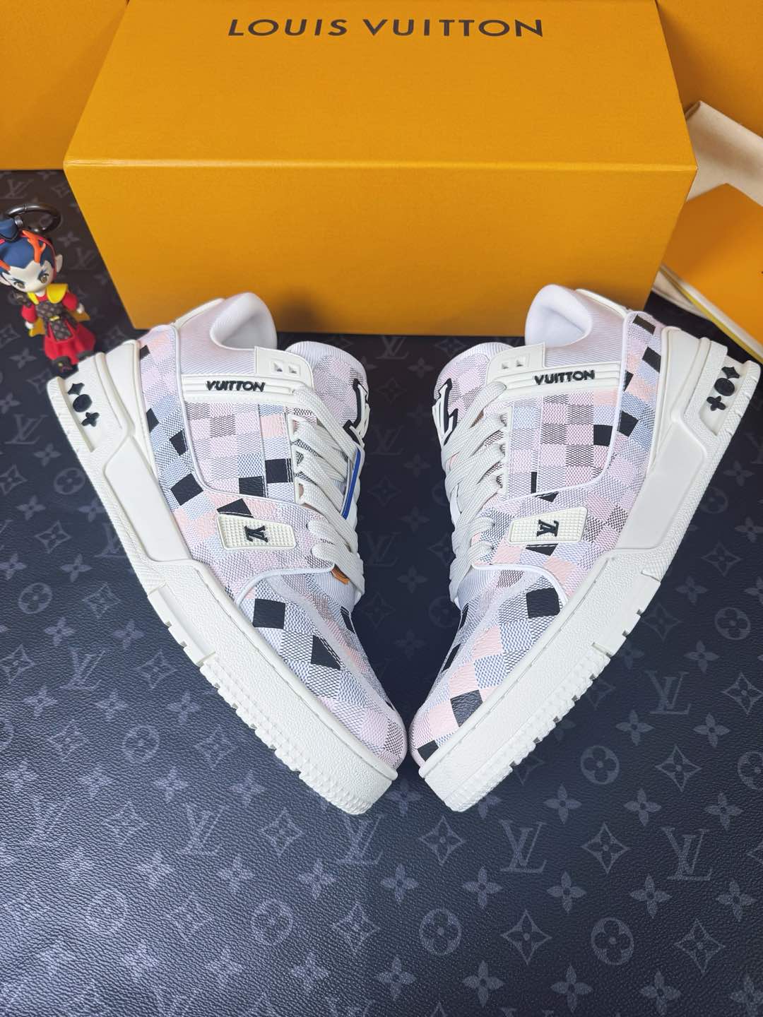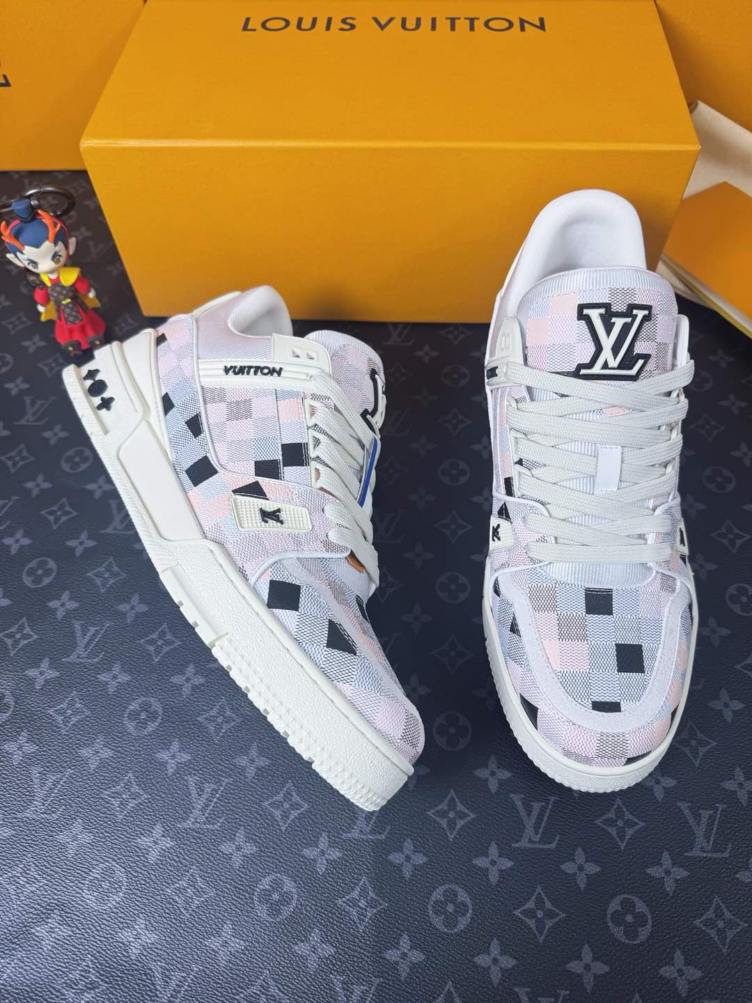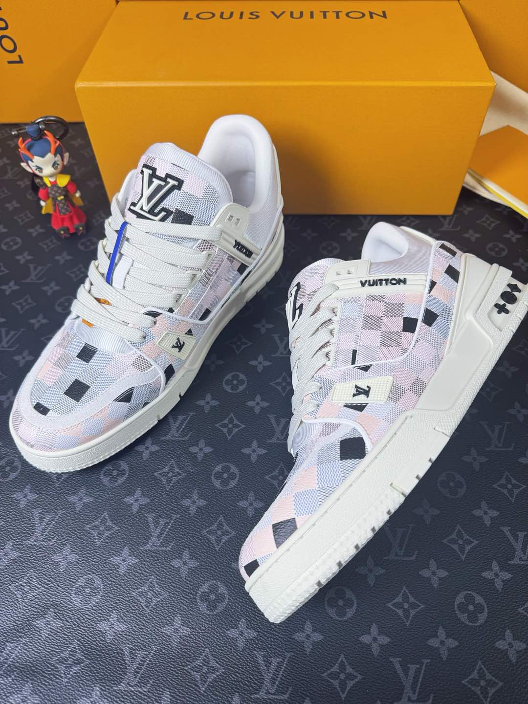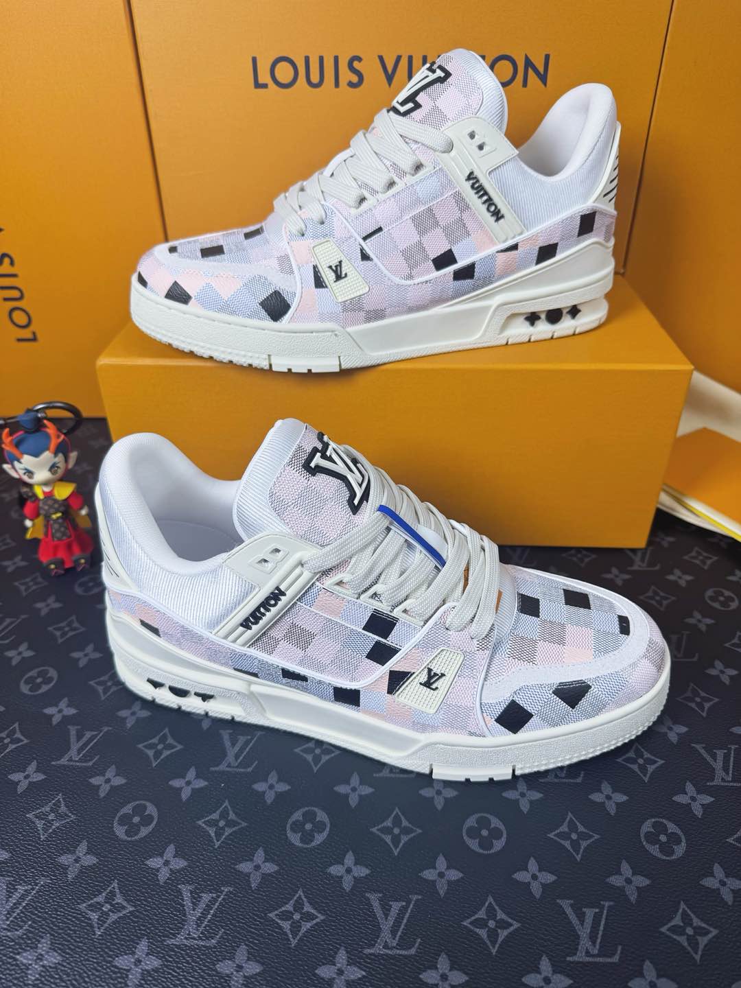 這款鞋子是AAAAA 1:1 質量(非常棒). 使用了和原版一模一樣的材料. 商標部分也保持了和路易威登/Louis Vuitton一樣. 圖片拍攝是實物鞋子拍攝, 您所收到的實物保證和我們圖片一模一樣.