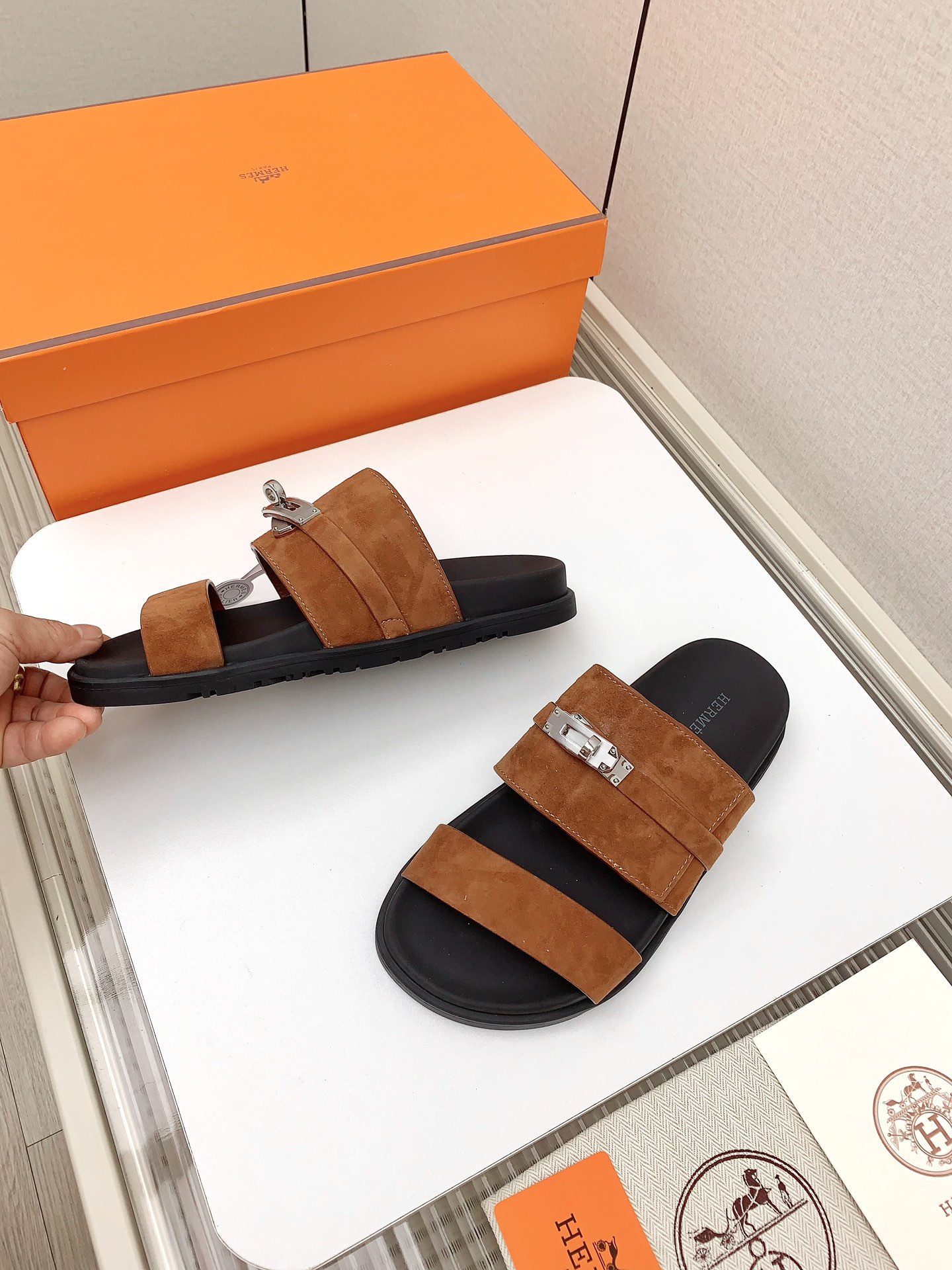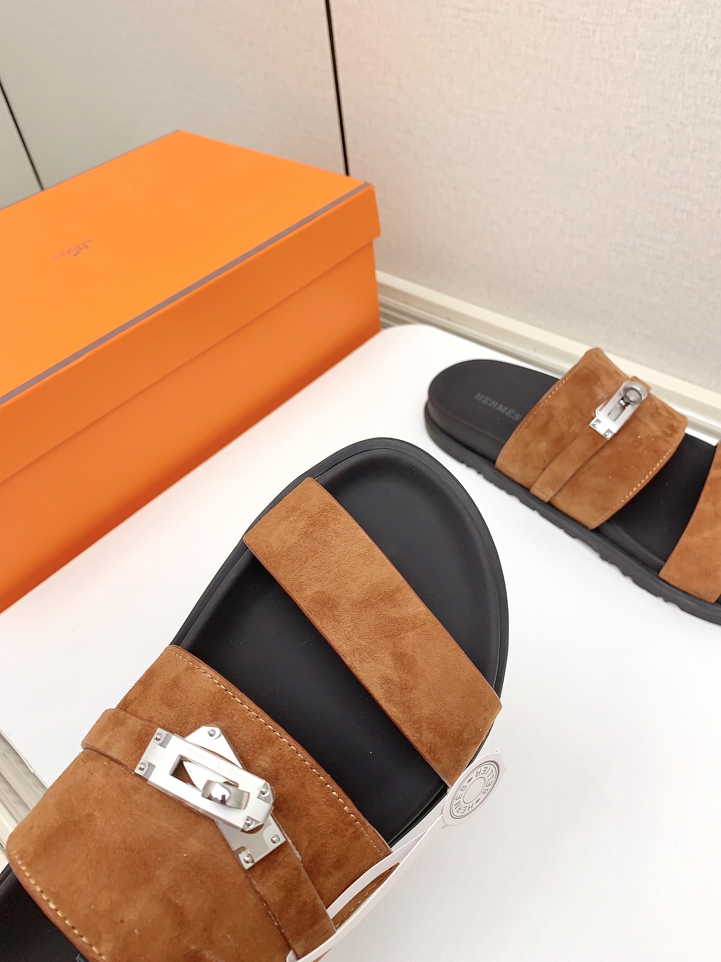 這款鞋子是AAAAA 1:1 質量(非常棒). 使用了和原版一模一樣的材料. 商標部分也保持了和愛馬仕/Hermes一樣. 圖片拍攝是實物鞋子拍攝, 您所收到的實物保證和我們圖片一模一樣.