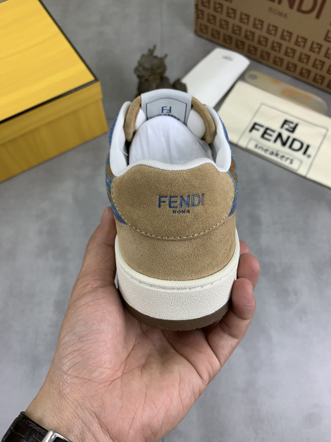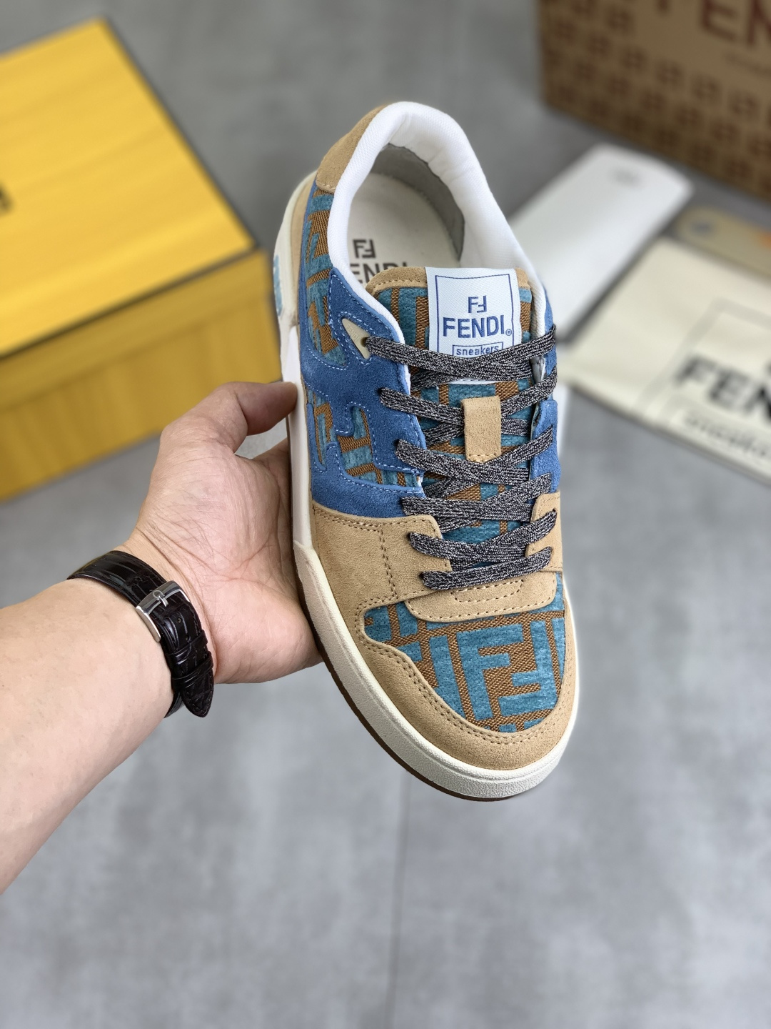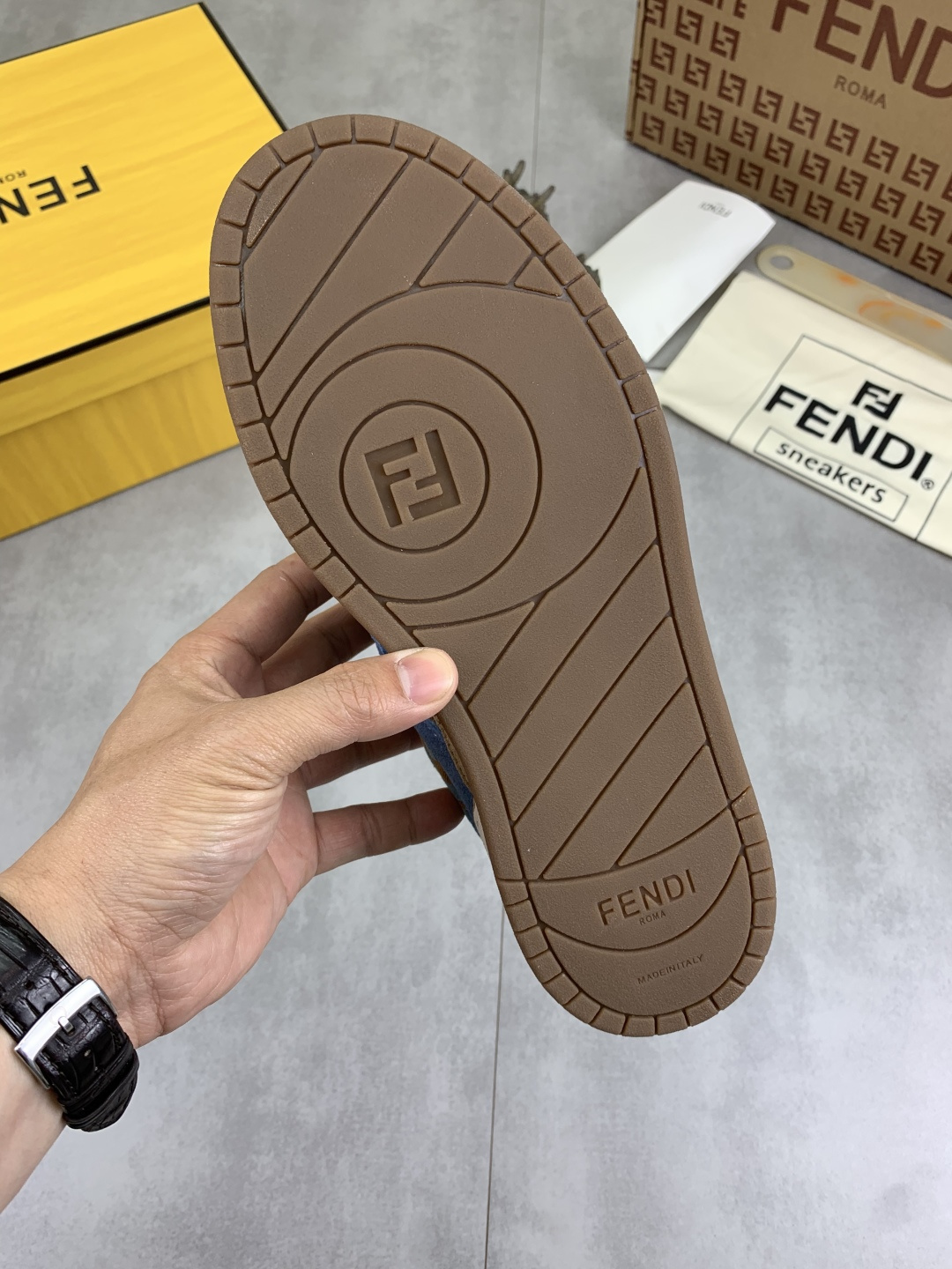 這款鞋子是AAAAA 1:1 質量(非常棒). 使用了和原版一模一樣的材料. 商標部分也保持了和芬迪/Fendi一樣. 圖片拍攝是實物鞋子拍攝, 您所收到的實物保證和我們圖片一模一樣.