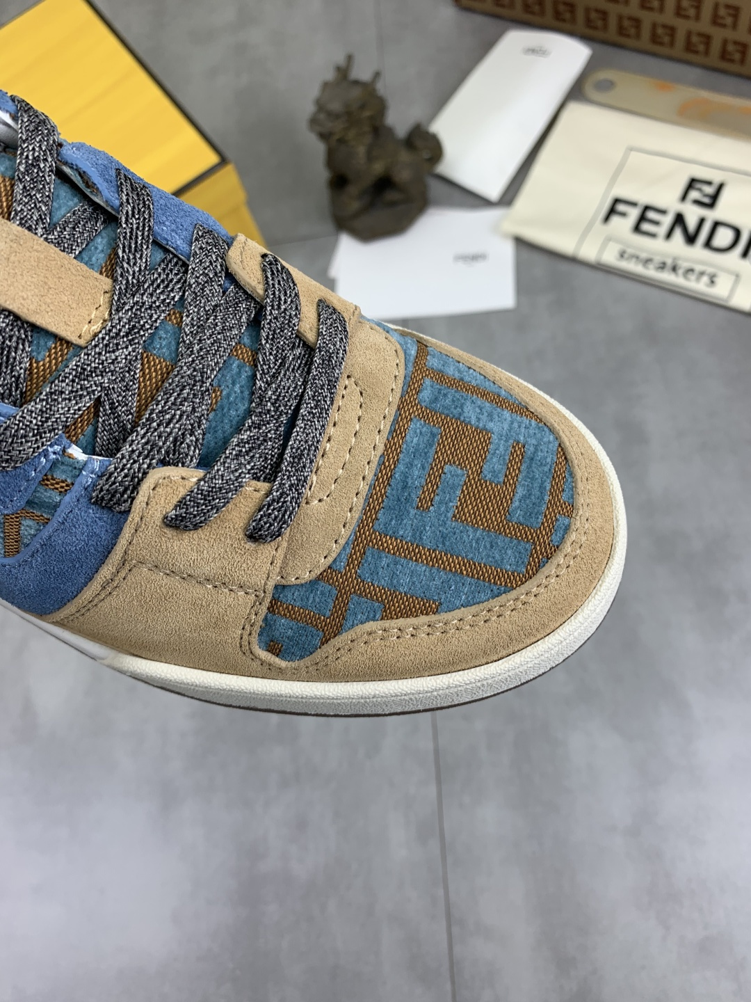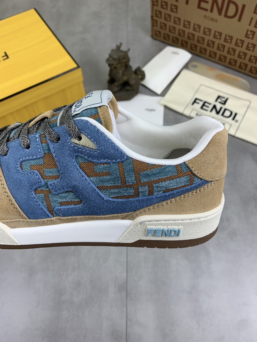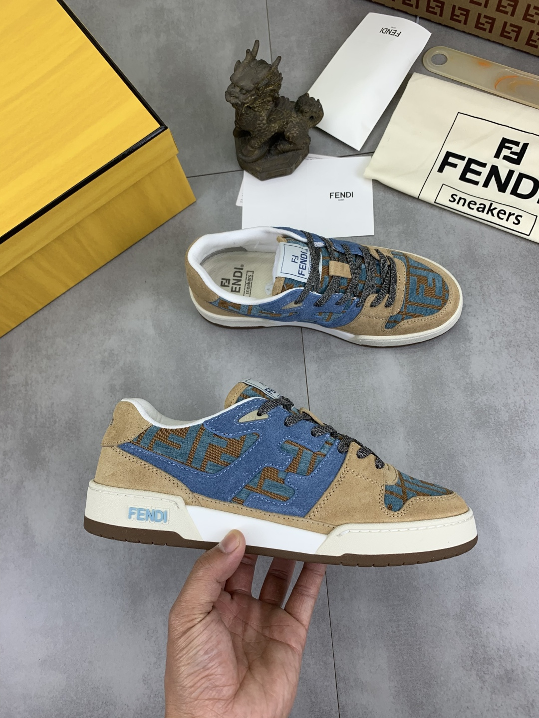 這款鞋子是AAAAA 1:1 質量(非常棒). 使用了和原版一模一樣的材料. 商標部分也保持了和芬迪/Fendi一樣. 圖片拍攝是實物鞋子拍攝, 您所收到的實物保證和我們圖片一模一樣.