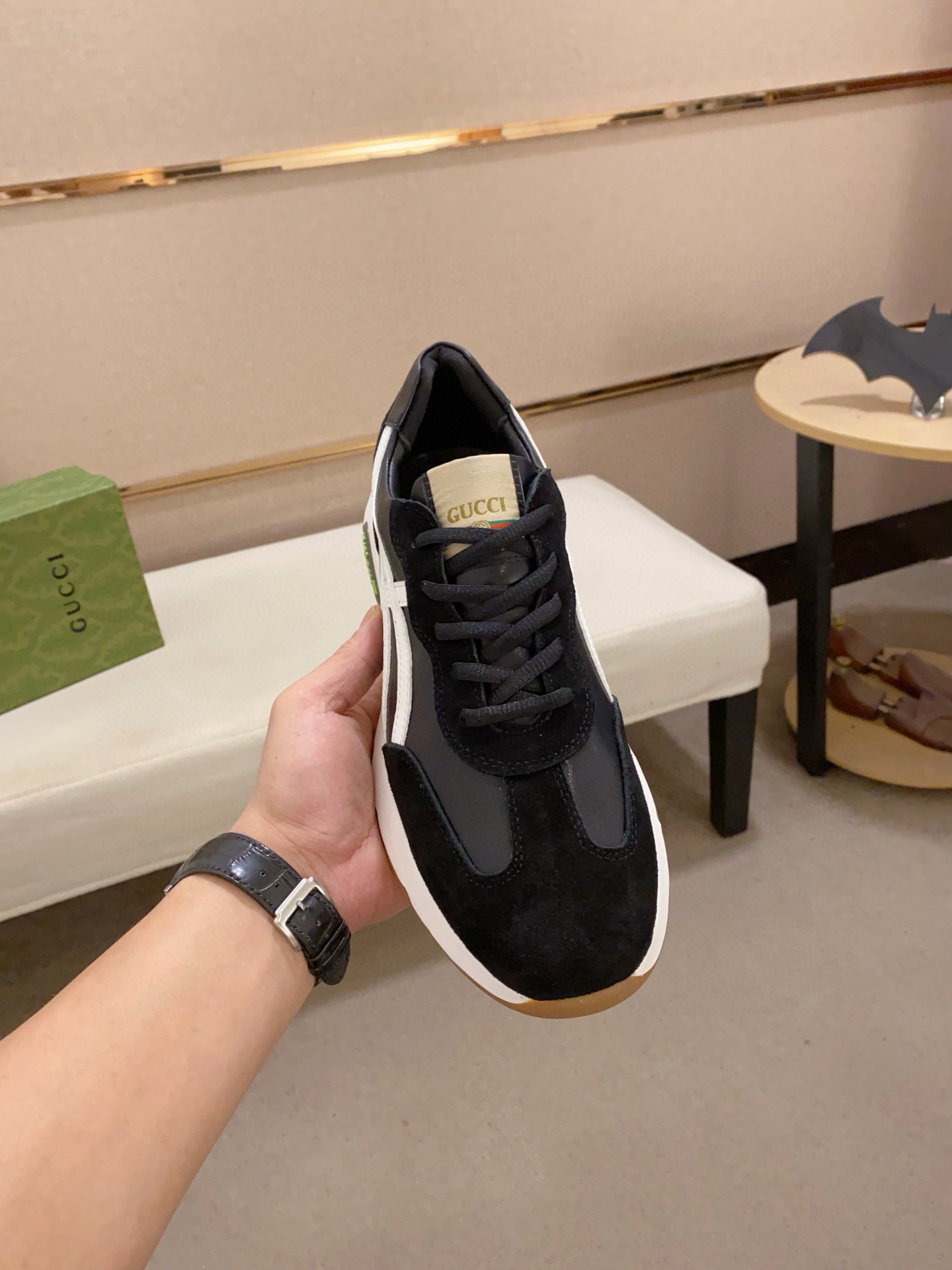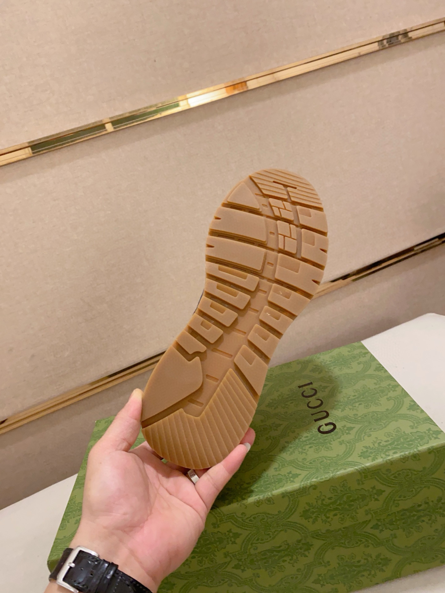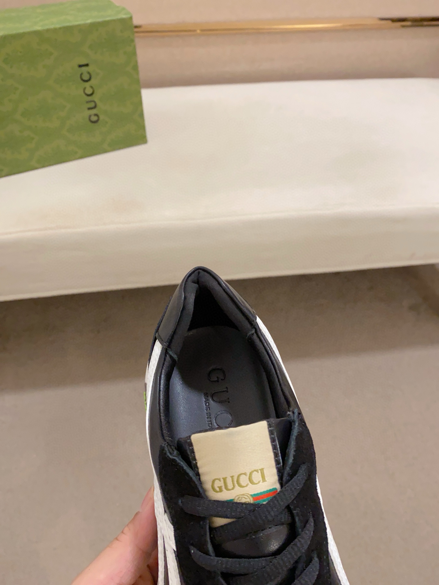 這款鞋子是AAAAA 1:1 質量(非常棒). 使用了和原版一模一樣的材料. 商標部分也保持了和古奇/Gucci一樣. 圖片拍攝是實物鞋子拍攝, 您所收到的實物保證和我們圖片一模一樣.