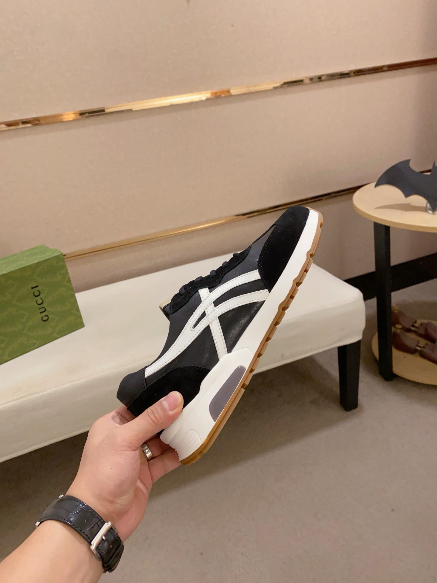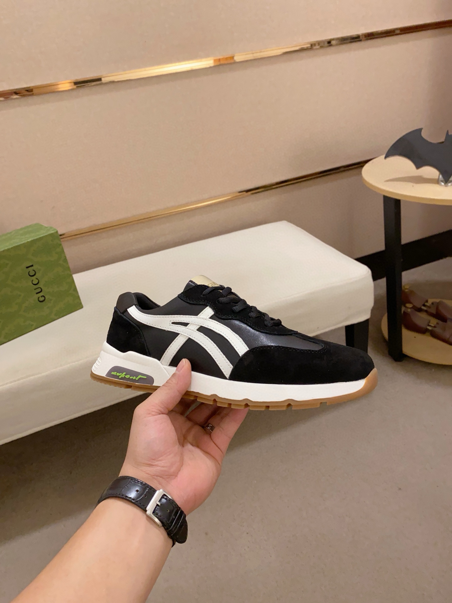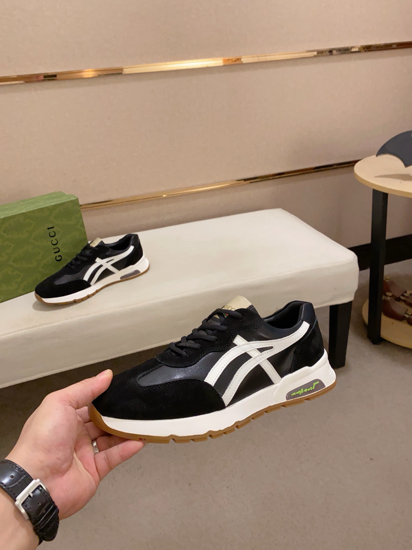 這款鞋子是AAAAA 1:1 質量(非常棒). 使用了和原版一模一樣的材料. 商標部分也保持了和古奇/Gucci一樣. 圖片拍攝是實物鞋子拍攝, 您所收到的實物保證和我們圖片一模一樣.