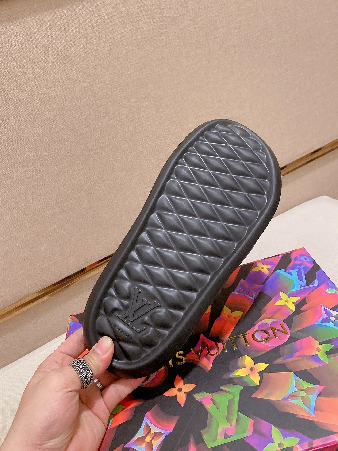 這款鞋子是AAAAA 1:1 質量(非常棒). 使用了和原版一模一樣的材料. 商標部分也保持了和路易威登/Louis Vuitton一樣. 圖片拍攝是實物鞋子拍攝, 您所收到的實物保證和我們圖片一模一樣.