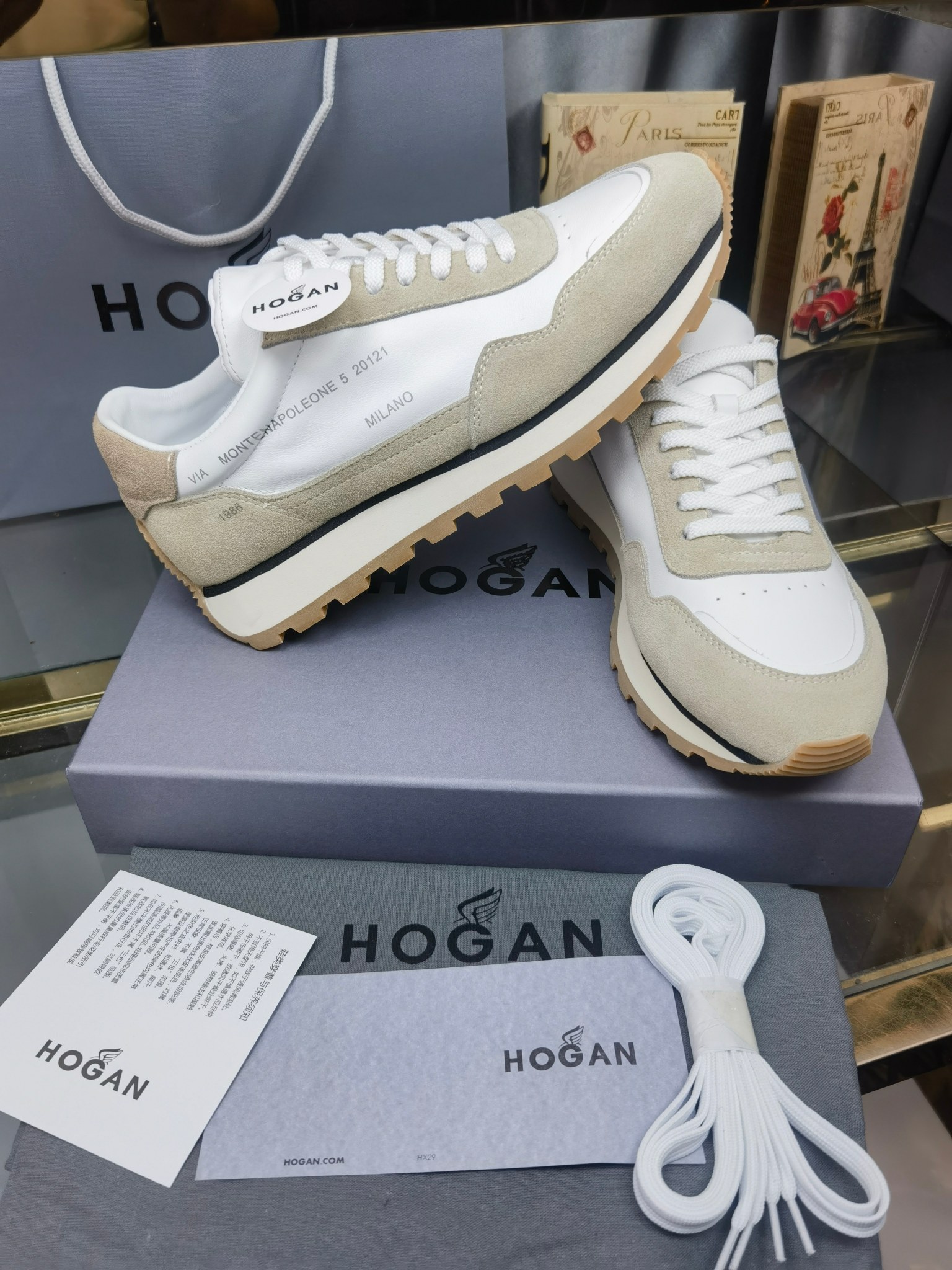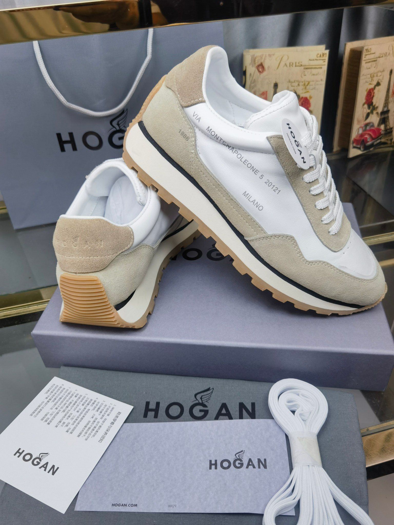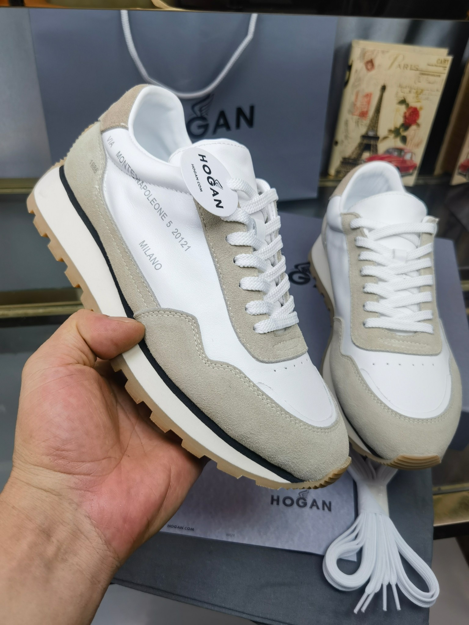 這款鞋子是AAAAA 1:1 質量(非常棒). 使用了和原版一模一樣的材料. 商標部分也保持了和Hogan一樣. 圖片拍攝是實物鞋子拍攝, 您所收到的實物保證和我們圖片一模一樣.