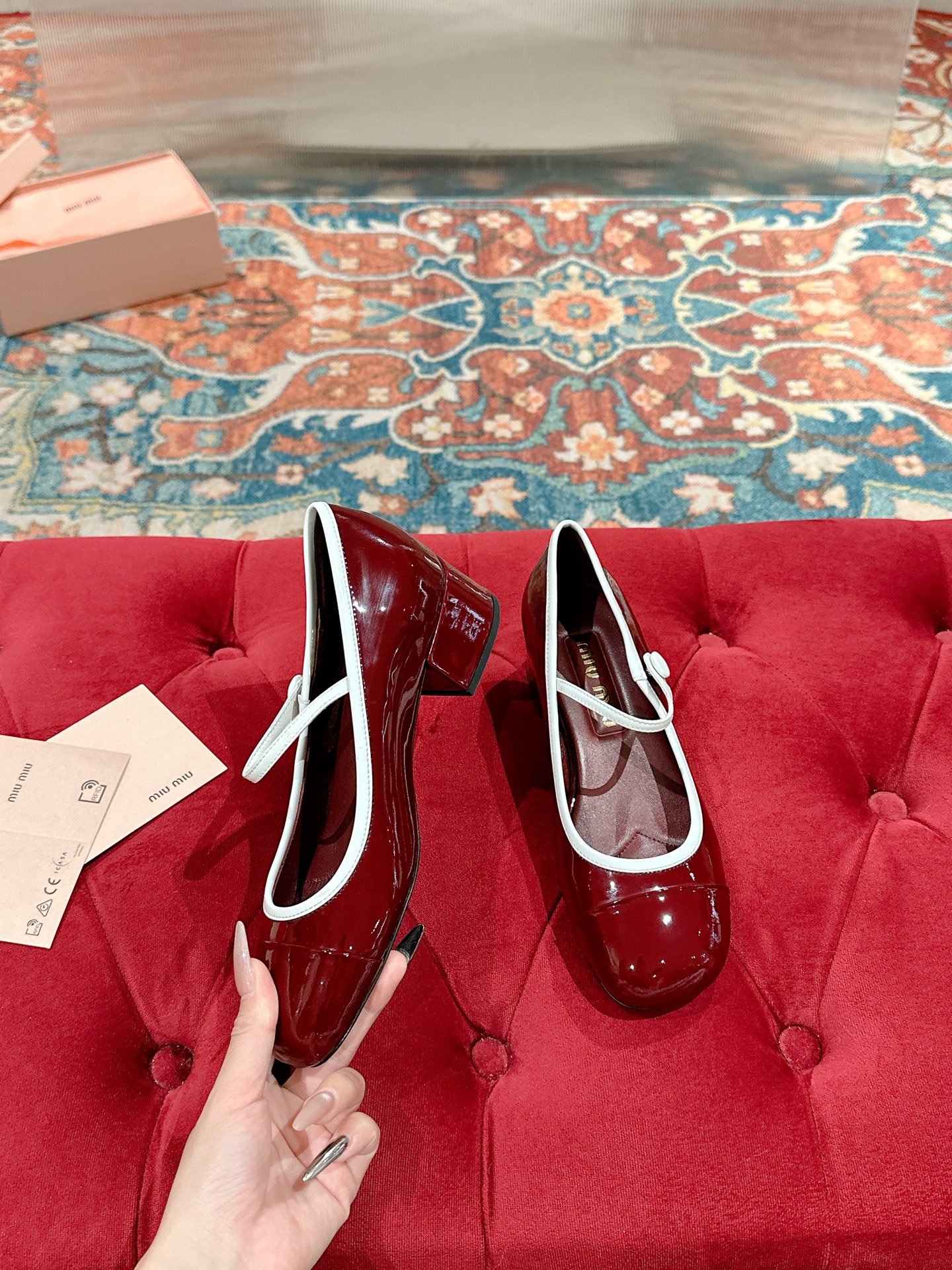 這款鞋子是AAAAA 1:1 質量(非常棒). 使用了和原版一模一樣的材料. 商標部分也保持了和繆繆/Miu Miu一樣. 圖片拍攝是實物鞋子拍攝, 您所收到的實物保證和我們圖片一模一樣.