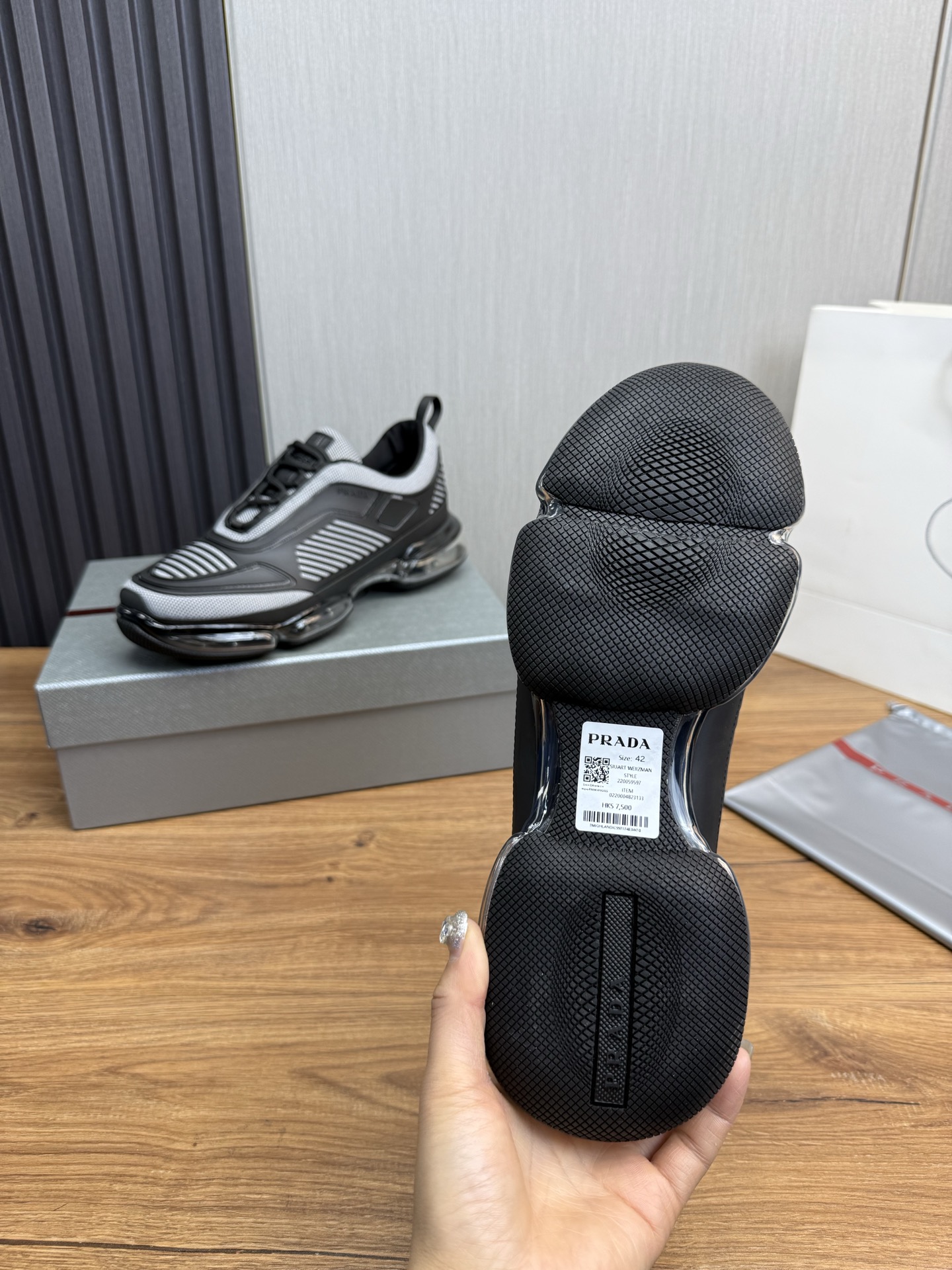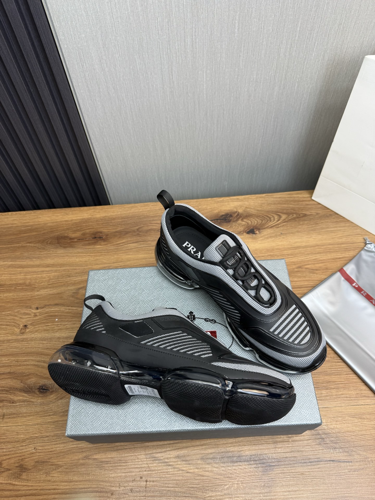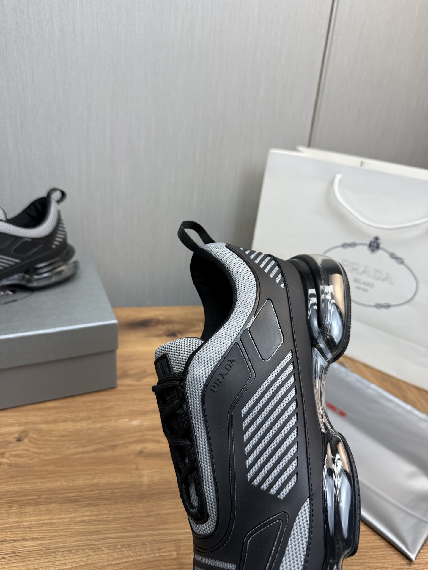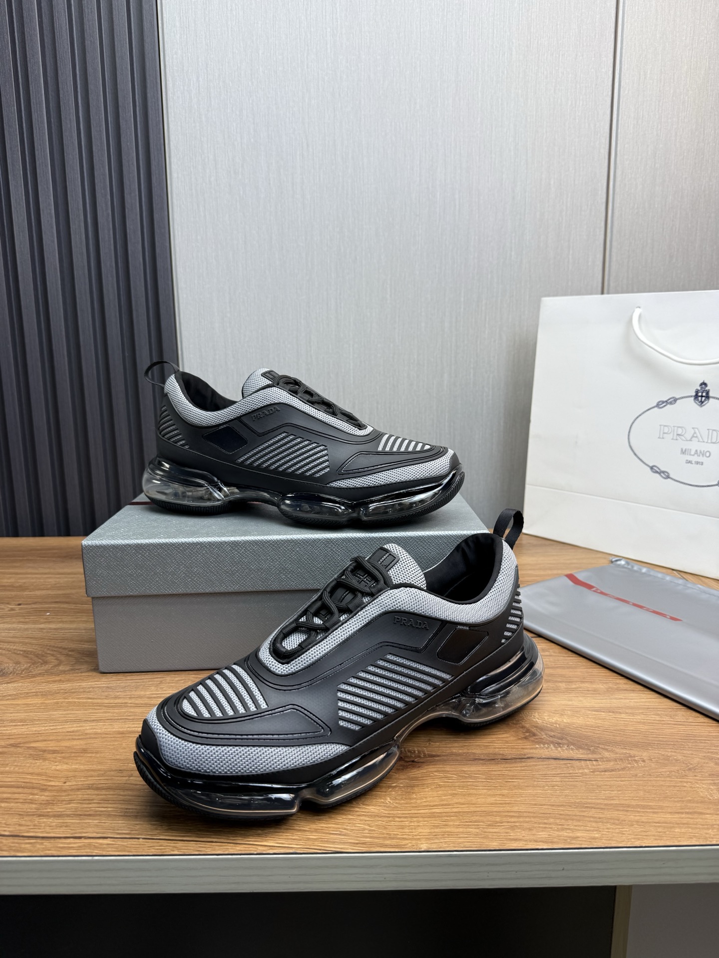 這款鞋子是AAAAA 1:1 質量(非常棒). 使用了和原版一模一樣的材料. 商標部分也保持了和普拉達/Prada一樣. 圖片拍攝是實物鞋子拍攝, 您所收到的實物保證和我們圖片一模一樣.