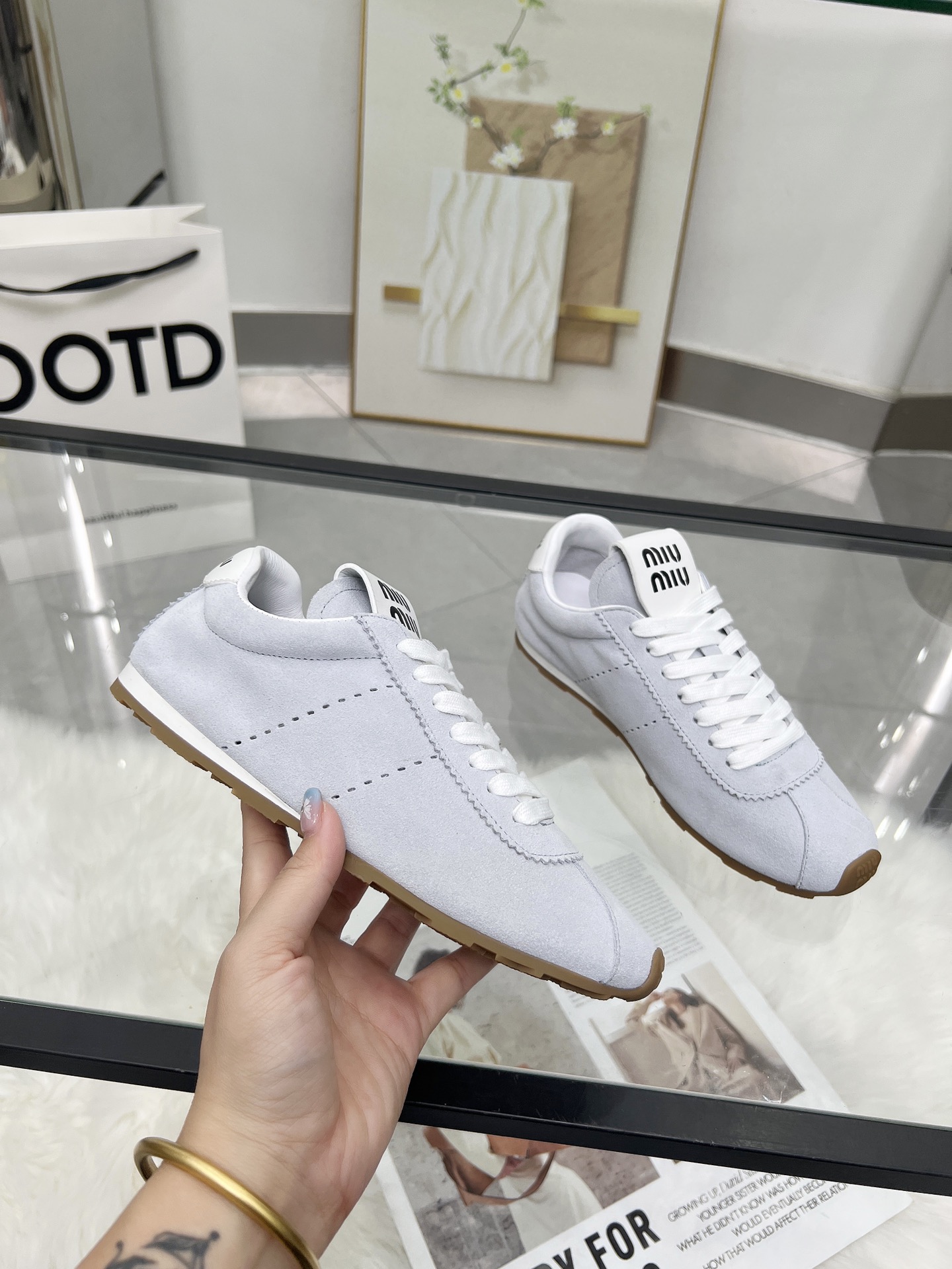 這款鞋子是AAAAA 1:1 質量(非常棒). 使用了和原版一模一樣的材料. 商標部分也保持了和繆繆/Miu Miu一樣. 圖片拍攝是實物鞋子拍攝, 您所收到的實物保證和我們圖片一模一樣.