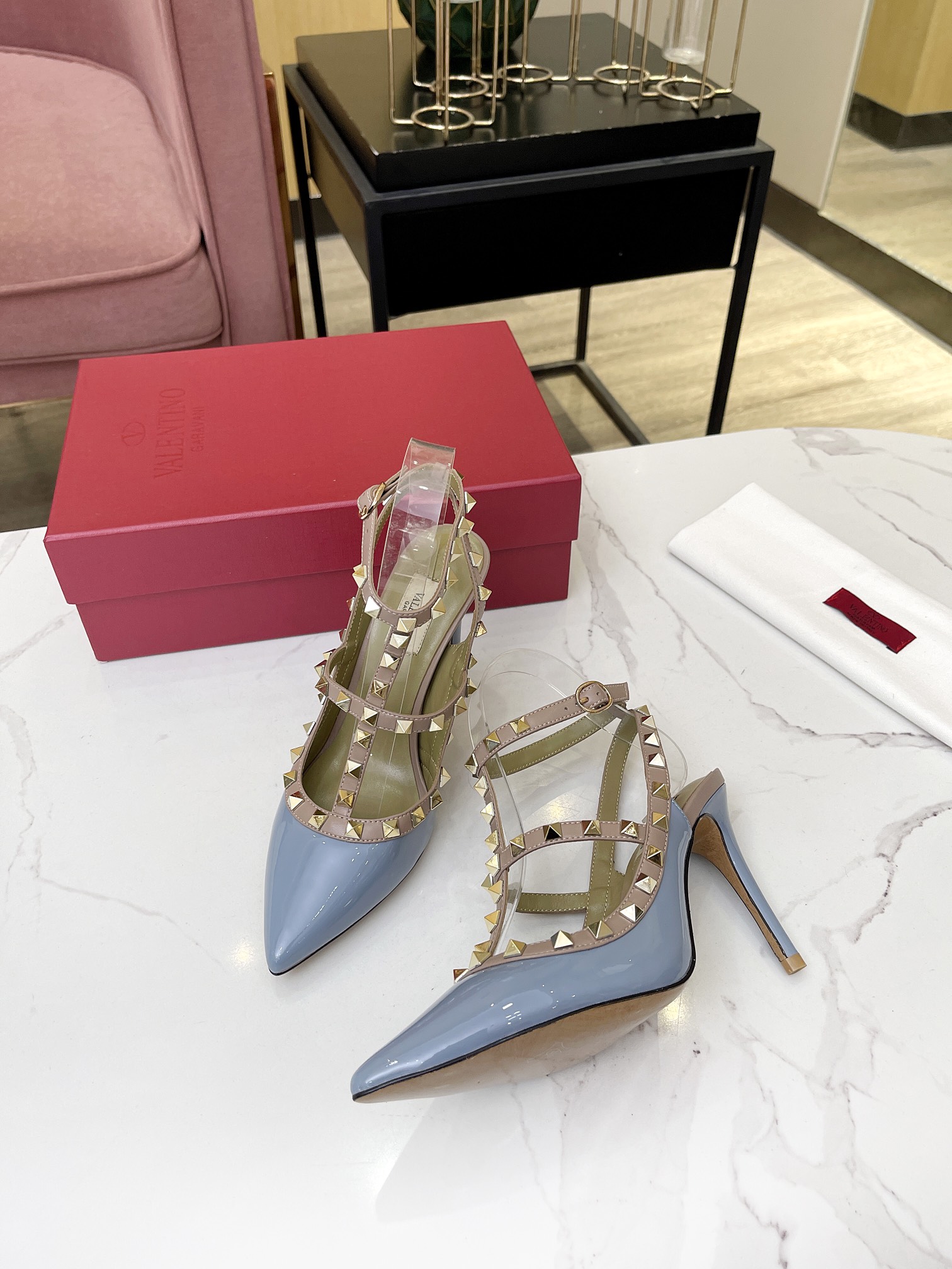 這款鞋子是AAAAA 1:1 質量(非常棒). 使用了和原版一模一樣的材料. 商標部分也保持了和瓦倫蒂諾/Valentino一樣. 圖片拍攝是實物鞋子拍攝, 您所收到的實物保證和我們圖片一模一樣.