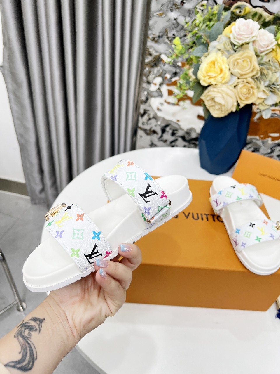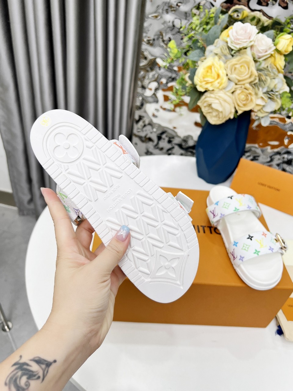 這款鞋子是AAAAA 1:1 質量(非常棒). 使用了和原版一模一樣的材料. 商標部分也保持了和路易威登/Louis Vuitton一樣. 圖片拍攝是實物鞋子拍攝, 您所收到的實物保證和我們圖片一模一樣.