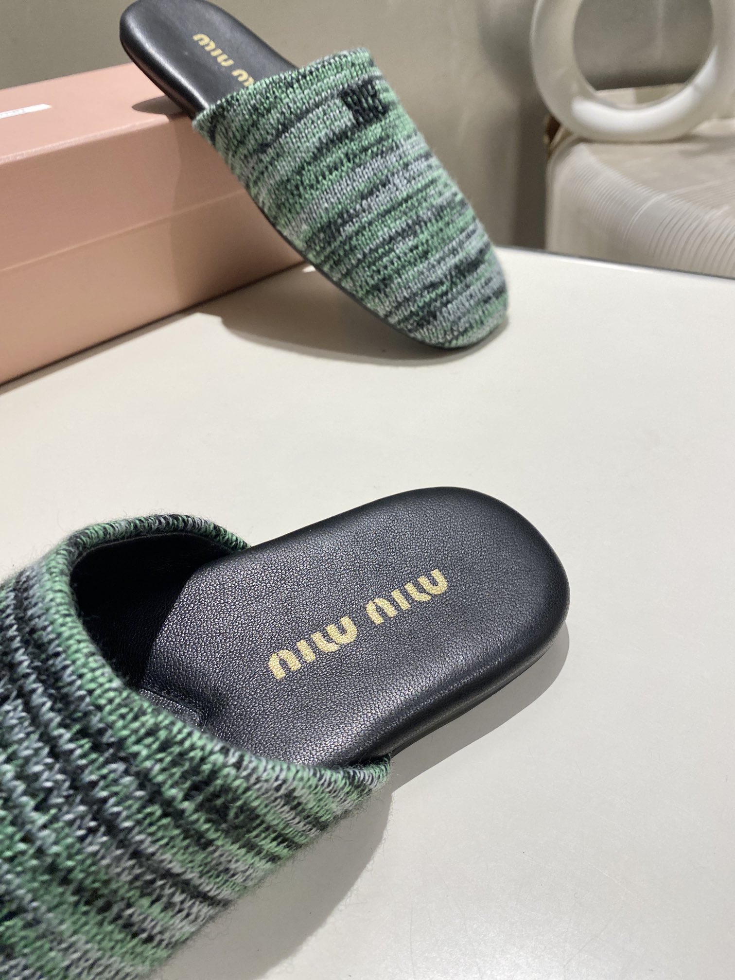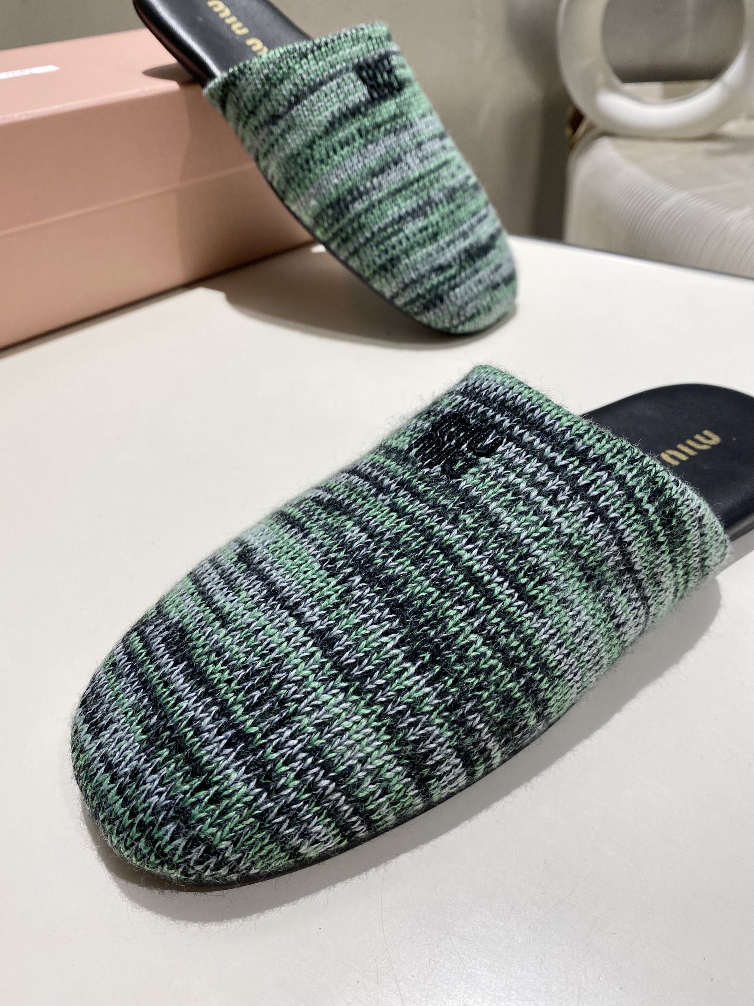 這款鞋子是AAAAA 1:1 質量(非常棒). 使用了和原版一模一樣的材料. 商標部分也保持了和繆繆/Miu Miu一樣. 圖片拍攝是實物鞋子拍攝, 您所收到的實物保證和我們圖片一模一樣.