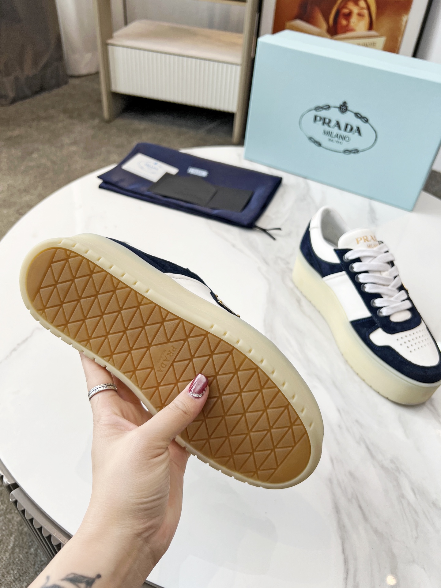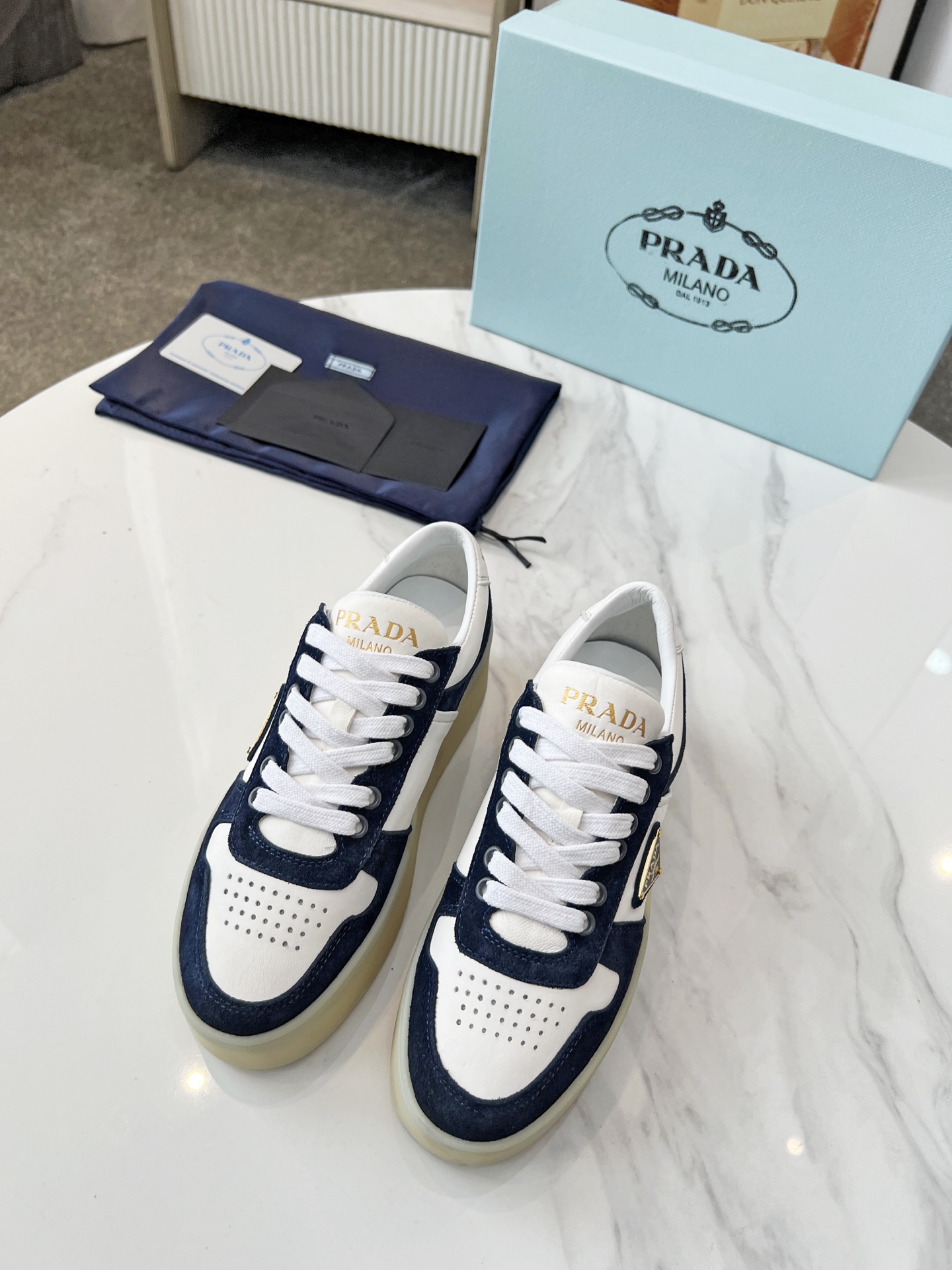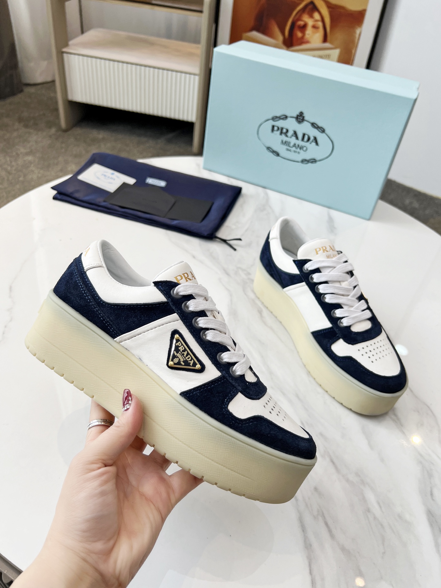 這款鞋子是AAAAA 1:1 質量(非常棒). 使用了和原版一模一樣的材料. 商標部分也保持了和普拉達/Prada一樣. 圖片拍攝是實物鞋子拍攝, 您所收到的實物保證和我們圖片一模一樣.