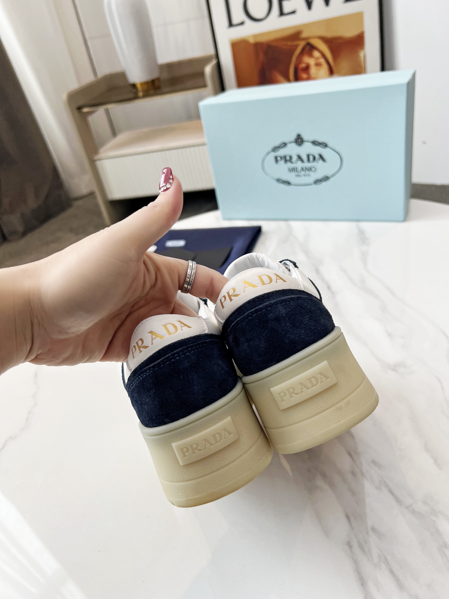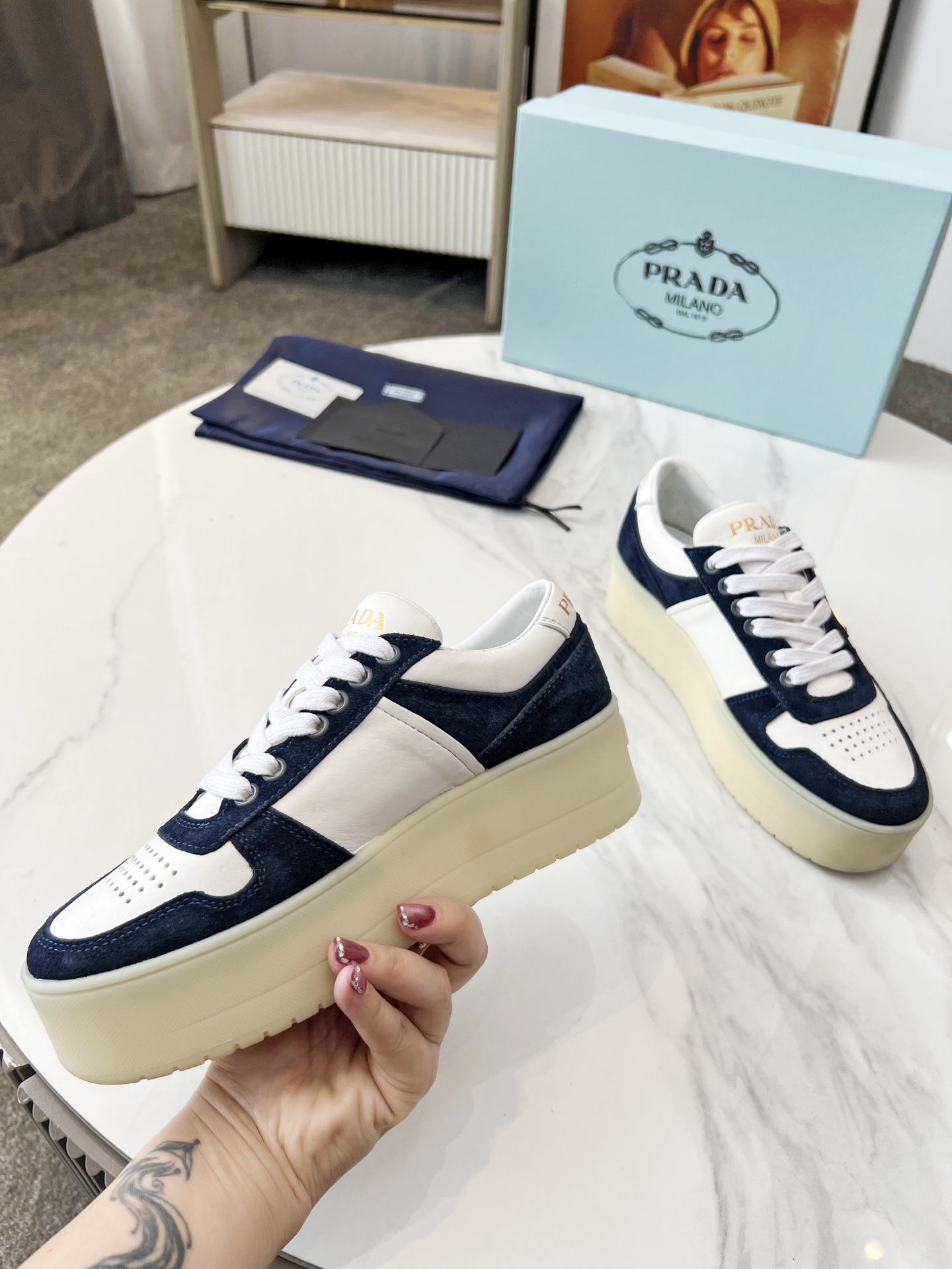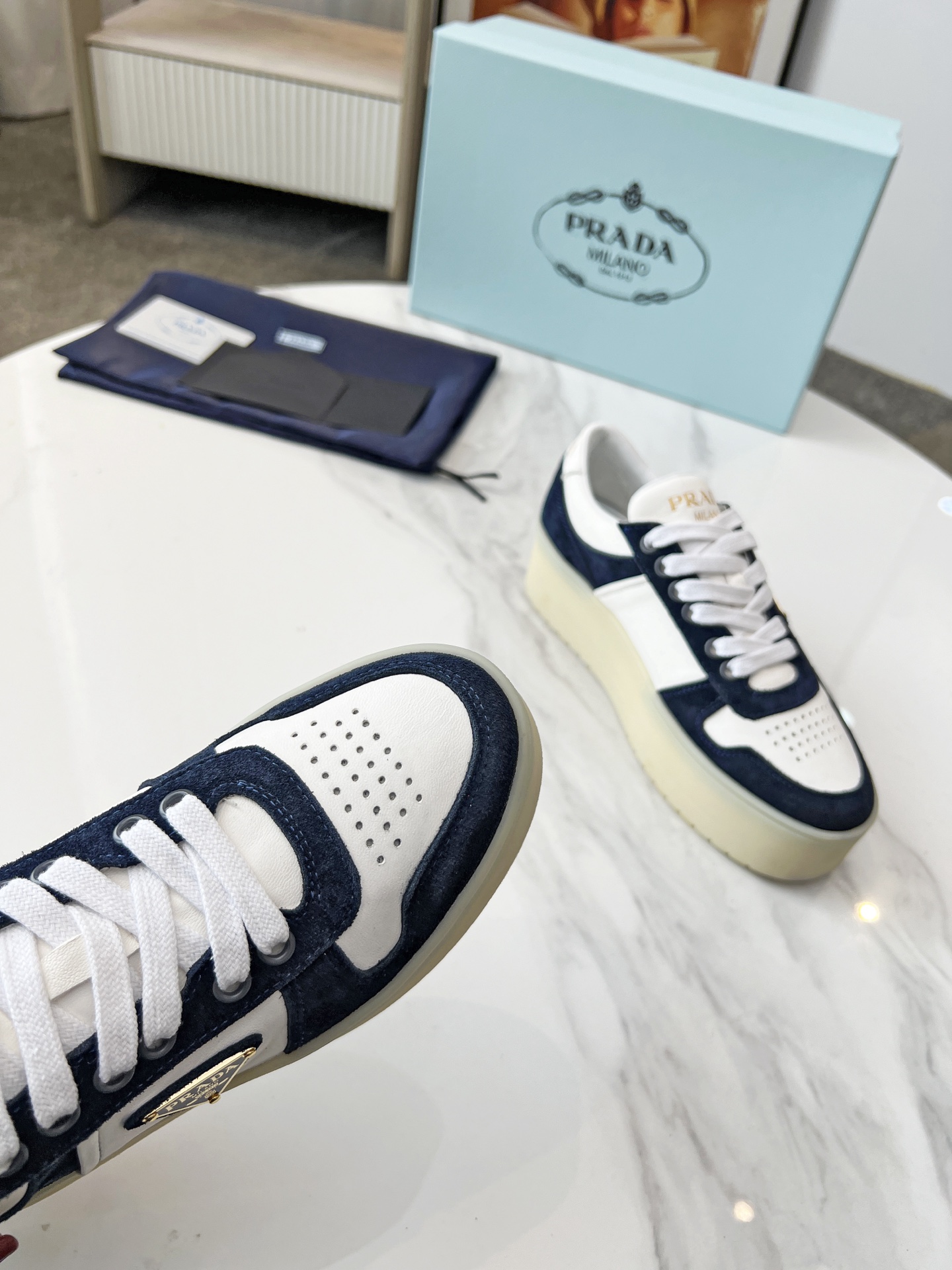 這款鞋子是AAAAA 1:1 質量(非常棒). 使用了和原版一模一樣的材料. 商標部分也保持了和普拉達/Prada一樣. 圖片拍攝是實物鞋子拍攝, 您所收到的實物保證和我們圖片一模一樣.