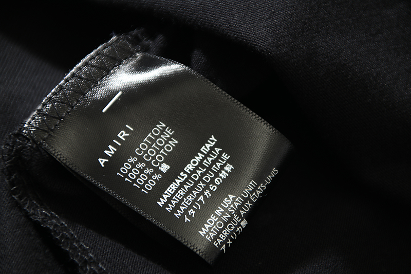 這款衣服是AAAAA 1:1 質量(非常棒). 使用了和原版一模一樣的材料. 商標部分也保持了和AMIRI一樣. 圖片拍攝是實物衣服拍攝, 您所收到的實物保證和我們圖片一模一樣.