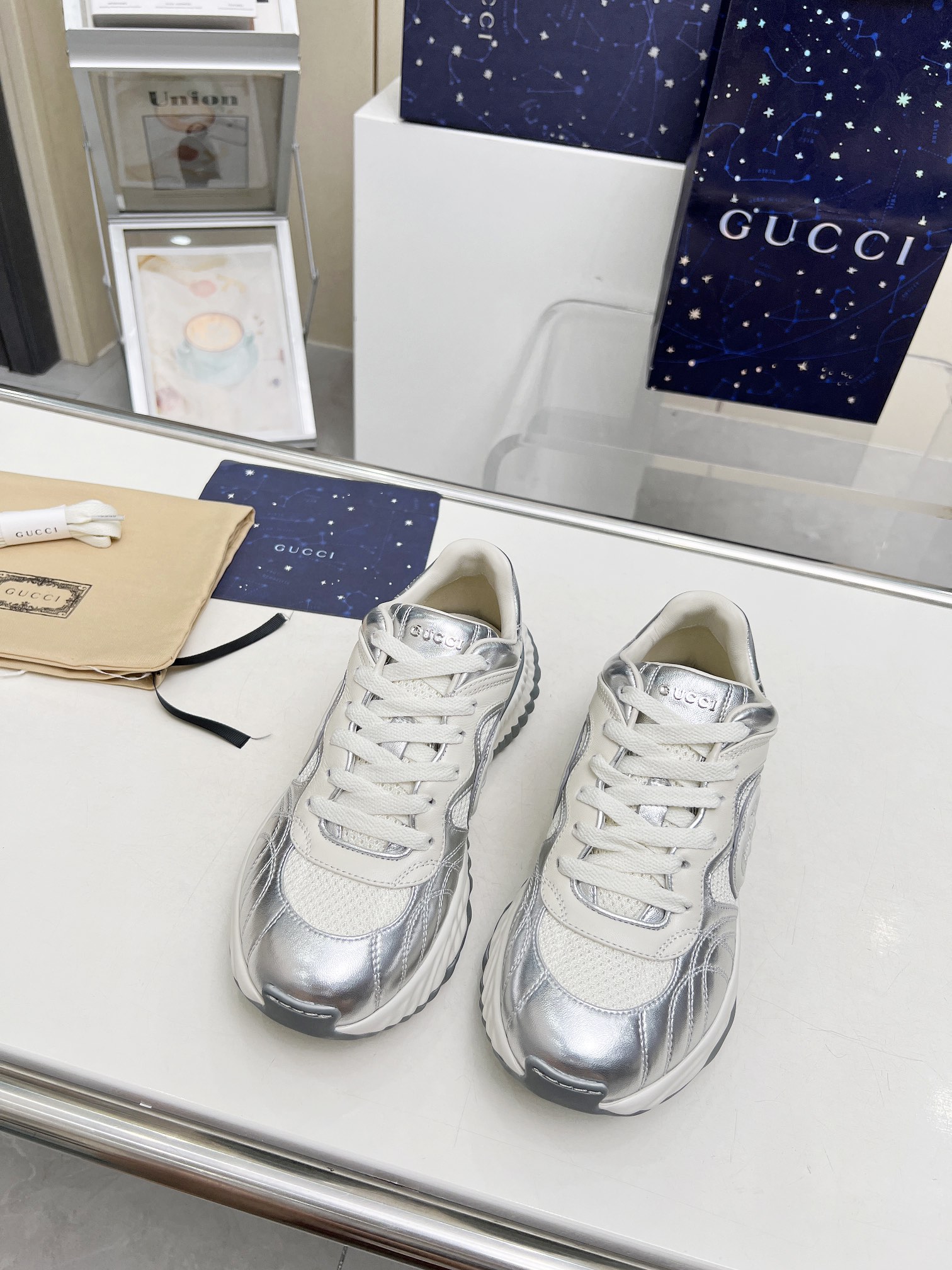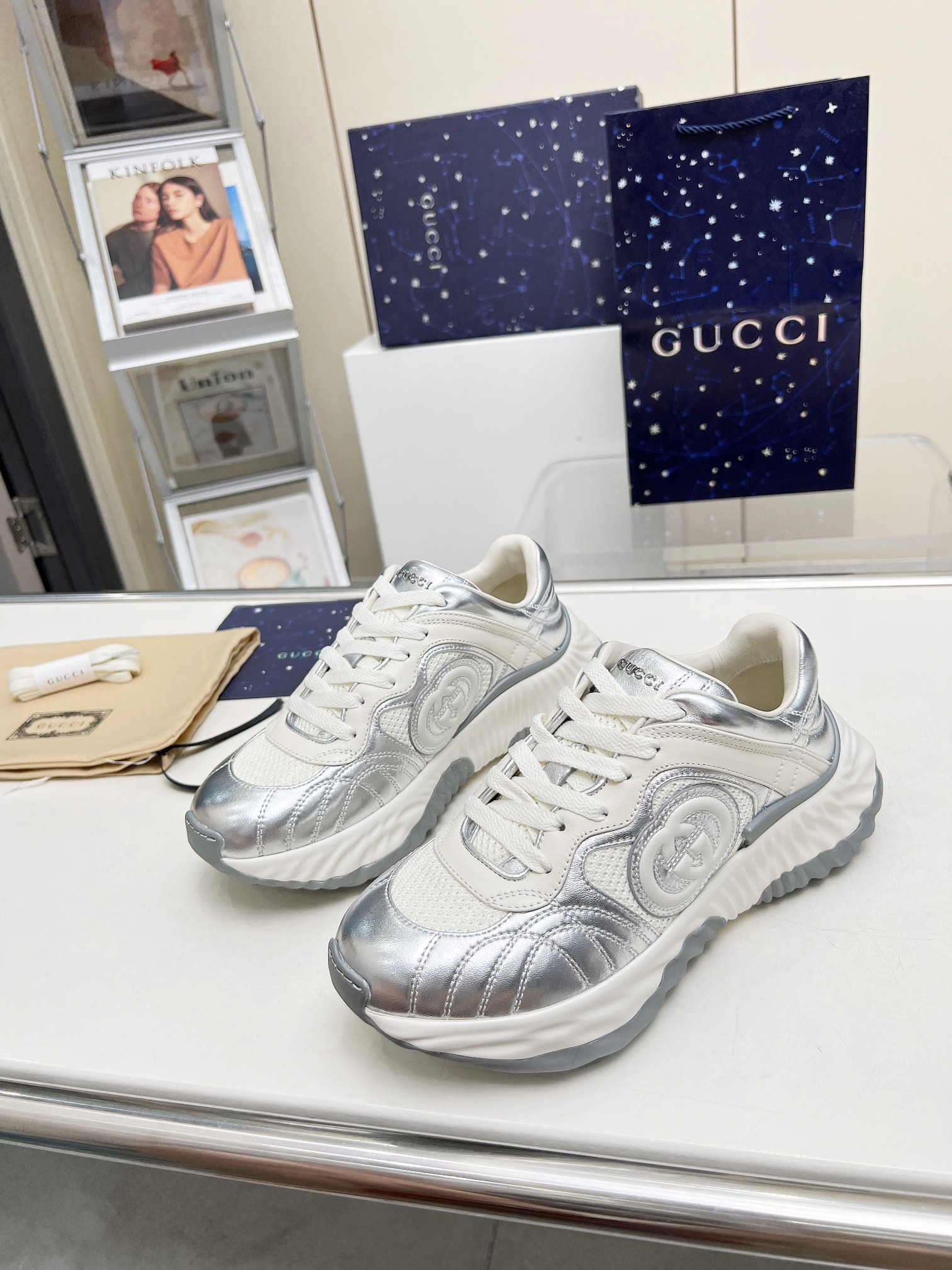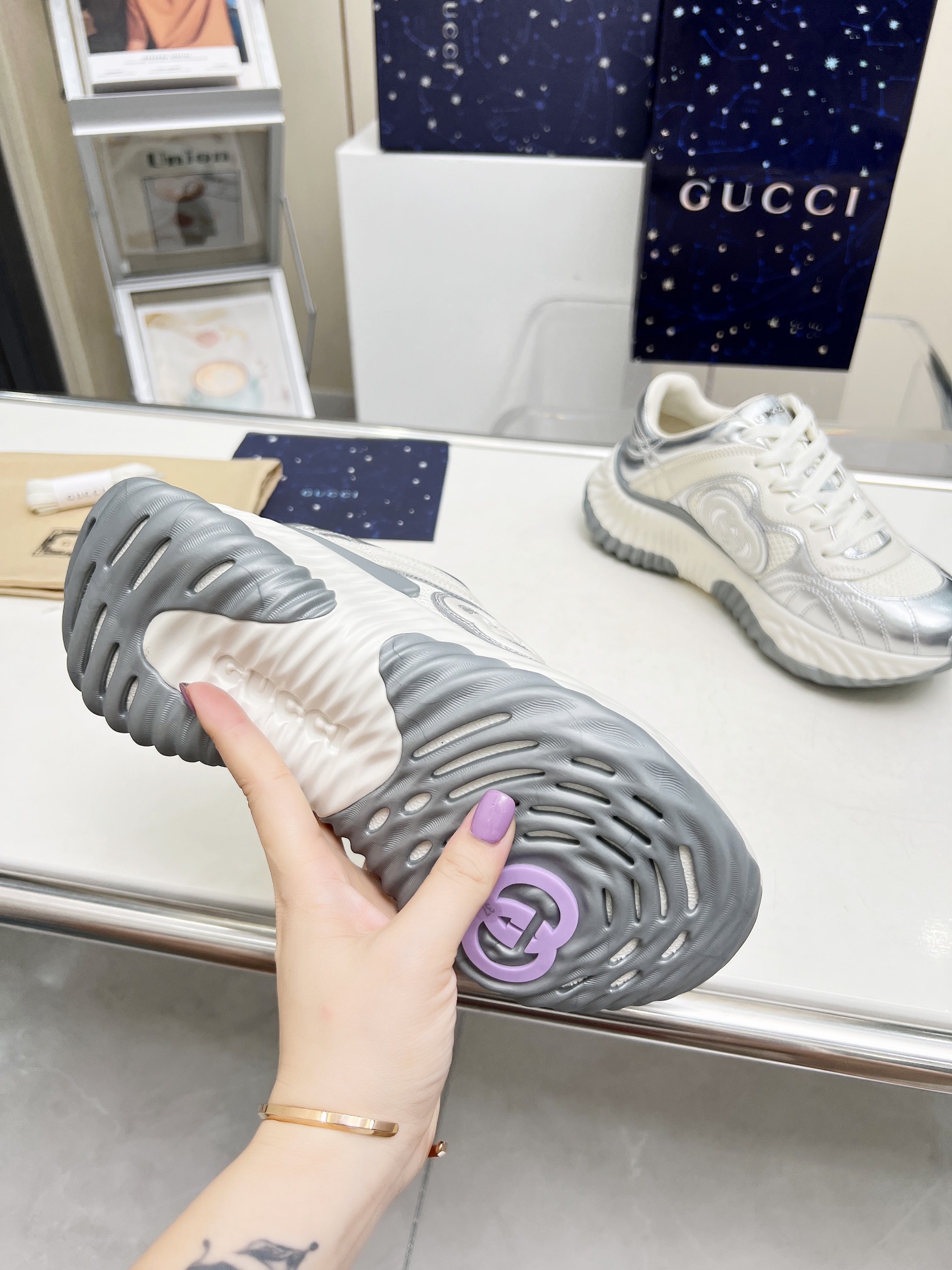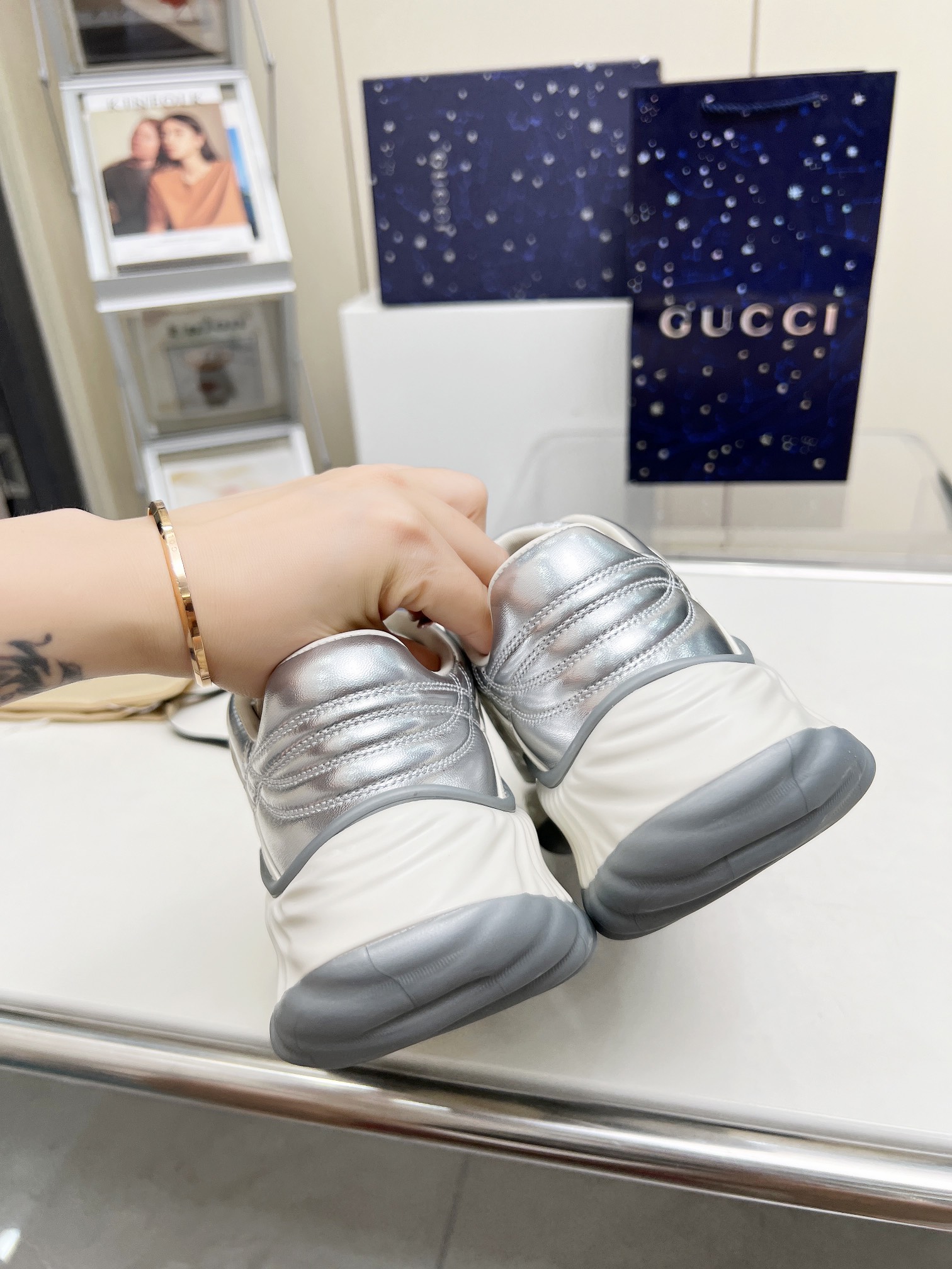 這款鞋子是AAAAA 1:1 質量(非常棒). 使用了和原版一模一樣的材料. 商標部分也保持了和古奇/Gucci一樣. 圖片拍攝是實物鞋子拍攝, 您所收到的實物保證和我們圖片一模一樣.