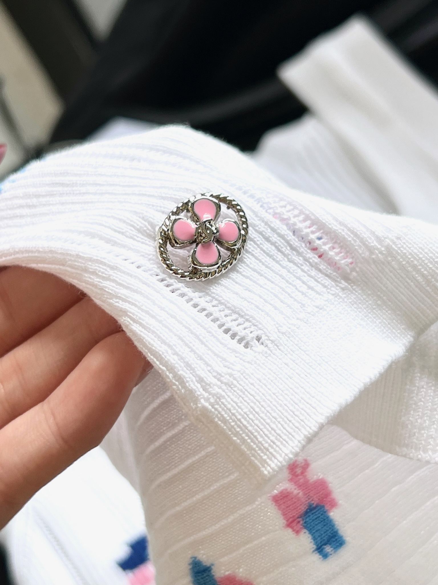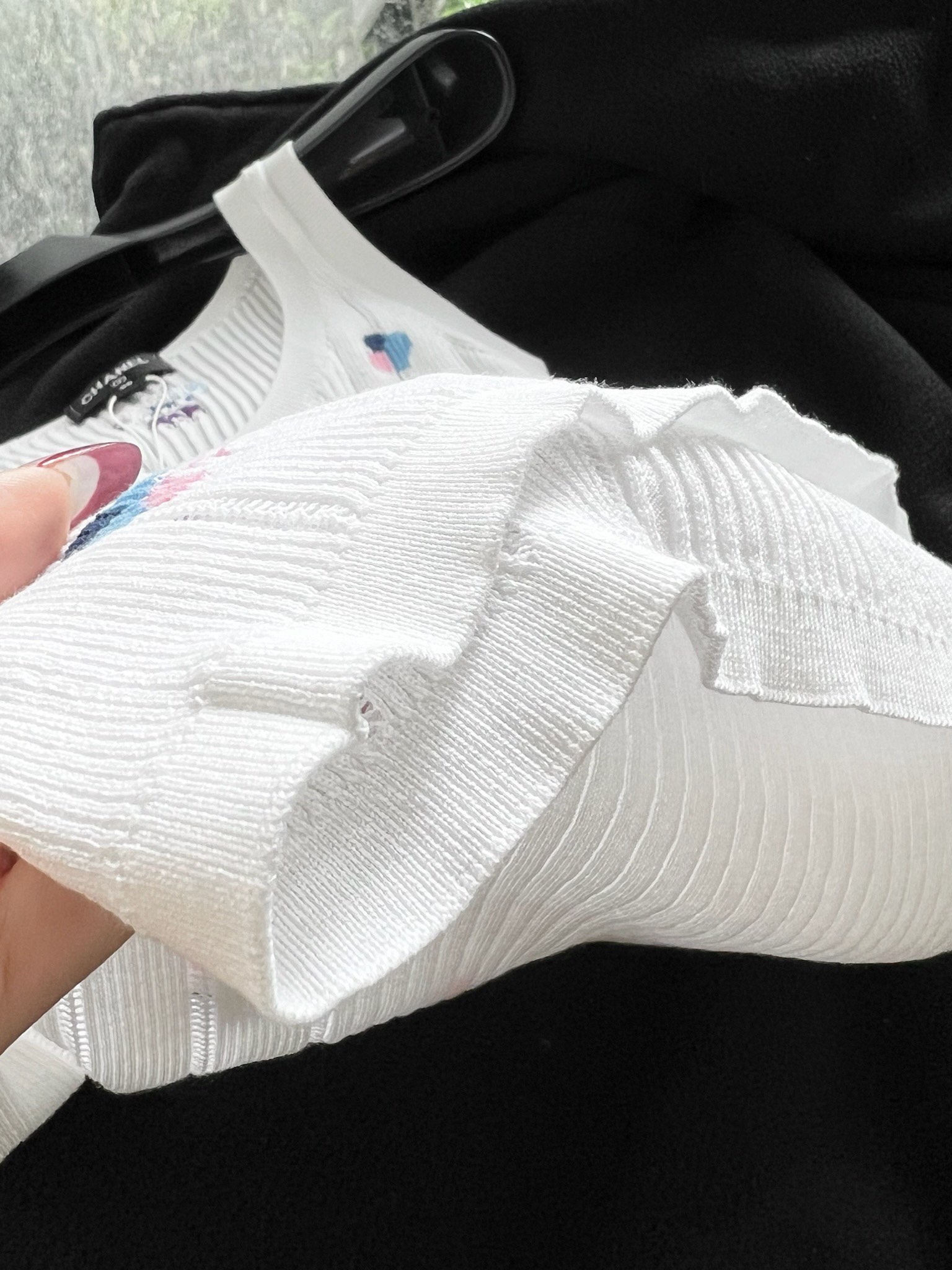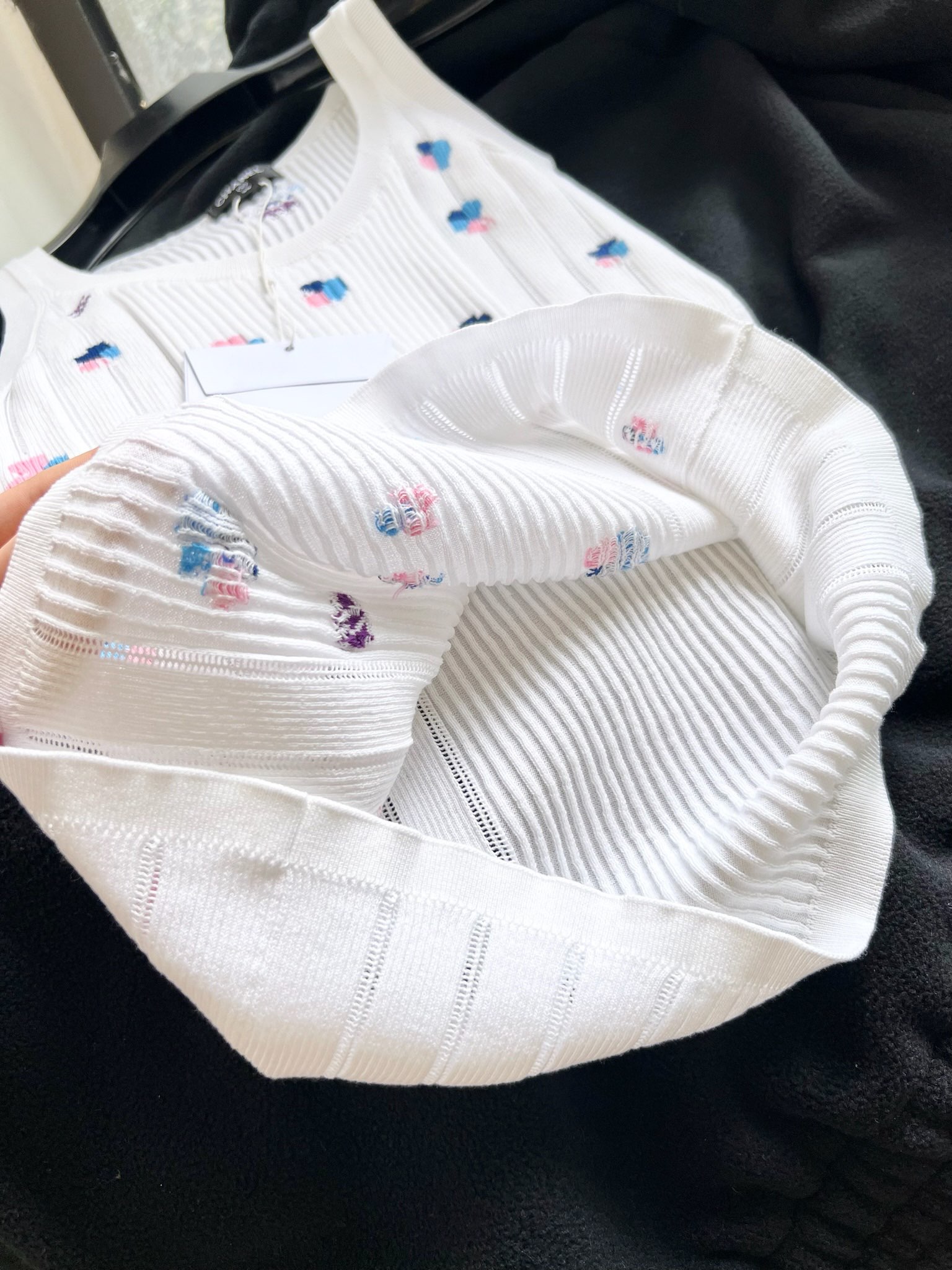 這款衣服是AAAAA 1:1 質量(非常棒). 使用了和原版一模一樣的材料. 商標部分也保持了和香奈兒/Chanel一樣. 圖片拍攝是實物衣服拍攝, 您所收到的實物保證和我們圖片一模一樣.