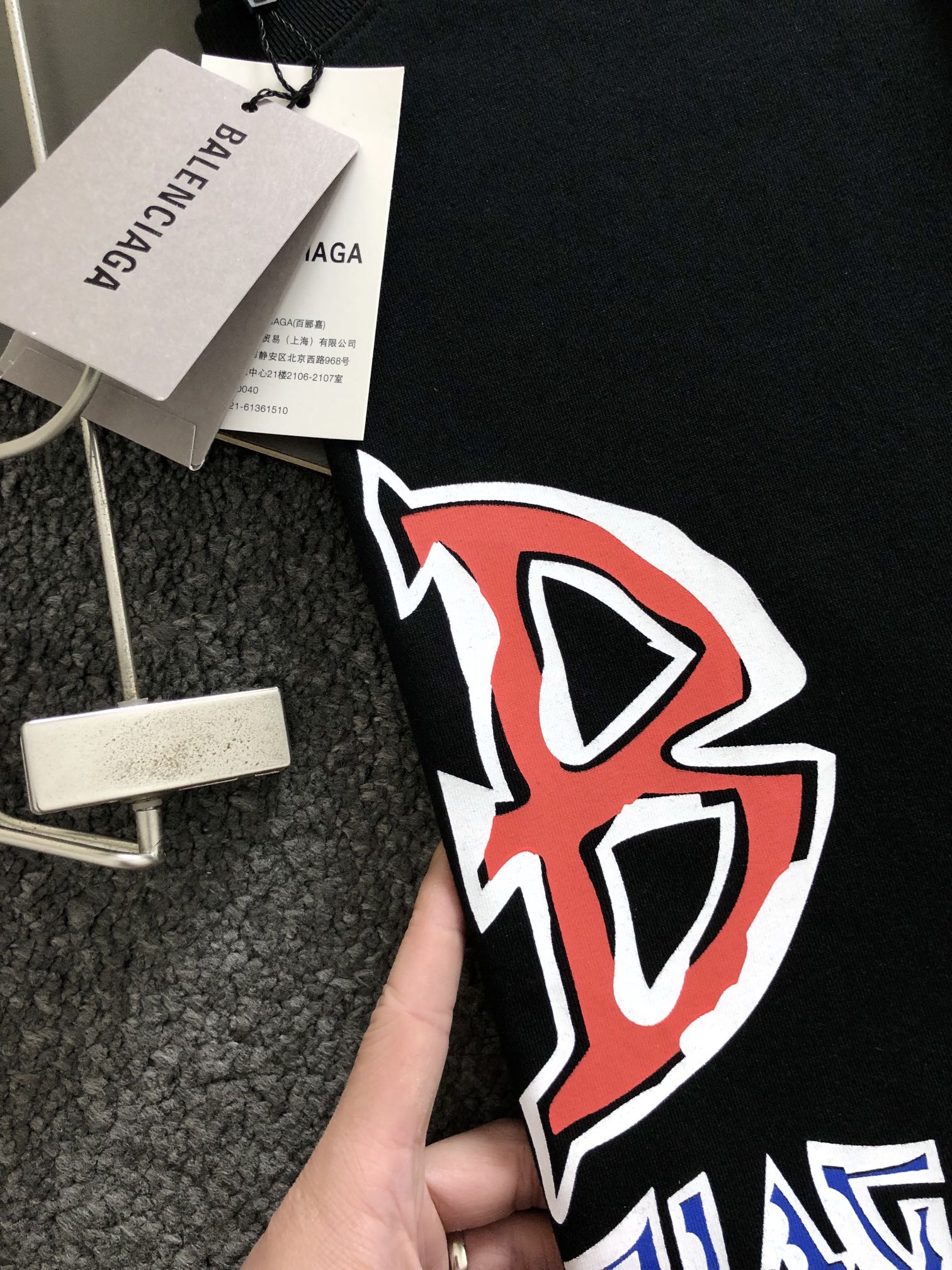 這款衣服是AAAAA 1:1 質量(非常棒). 使用了和原版一模一樣的材料. 商標部分也保持了和巴倫西亞/Balenciaga一樣. 圖片拍攝是實物衣服拍攝, 您所收到的實物保證和我們圖片一模一樣.