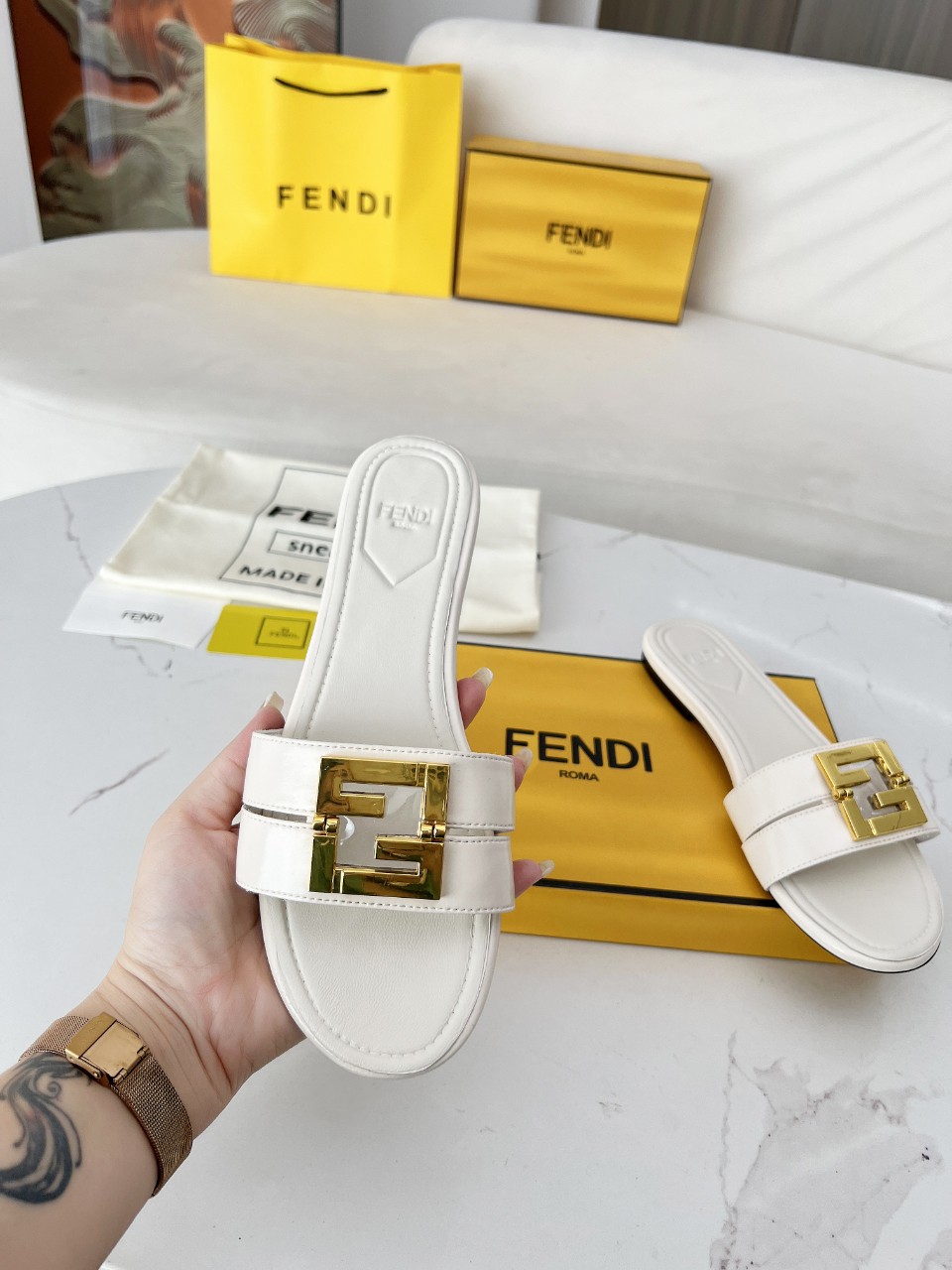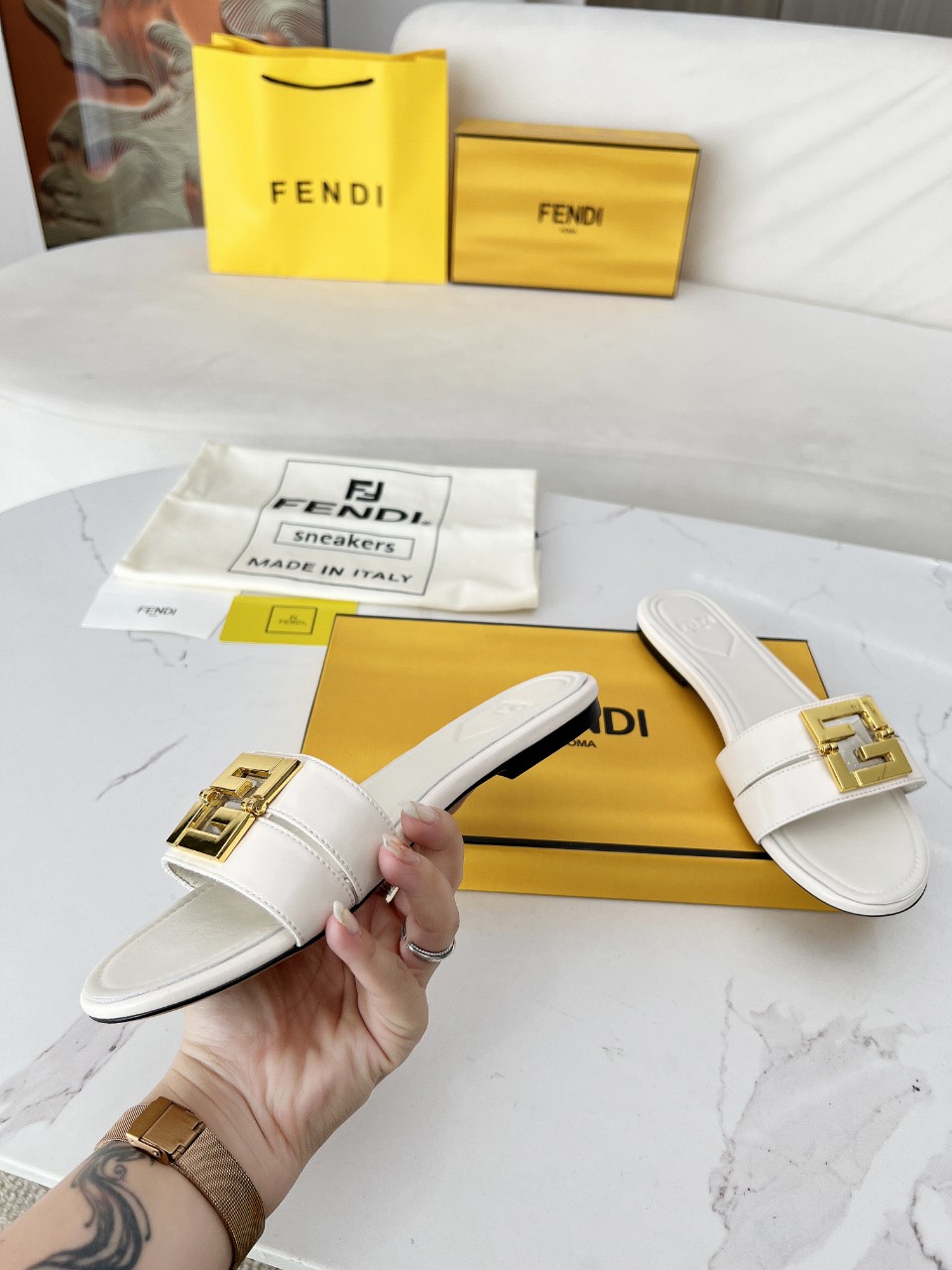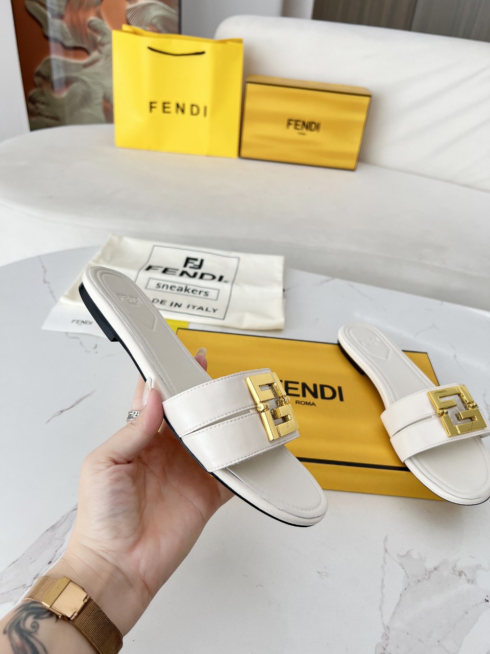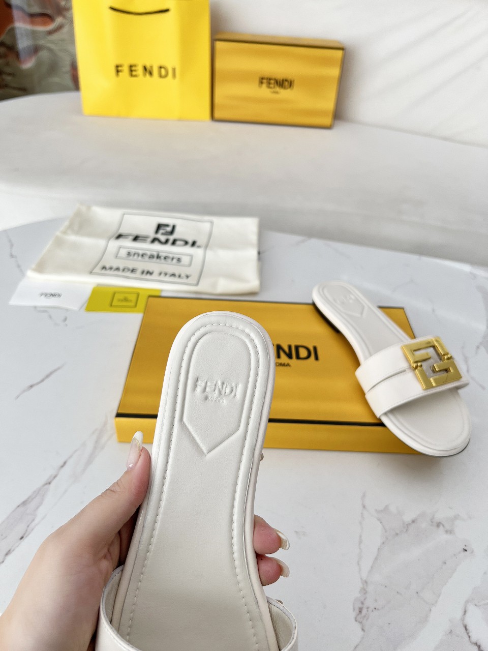 這款鞋子是AAAAA 1:1 質量(非常棒). 使用了和原版一模一樣的材料. 商標部分也保持了和芬迪/Fendi一樣. 圖片拍攝是實物鞋子拍攝, 您所收到的實物保證和我們圖片一模一樣.