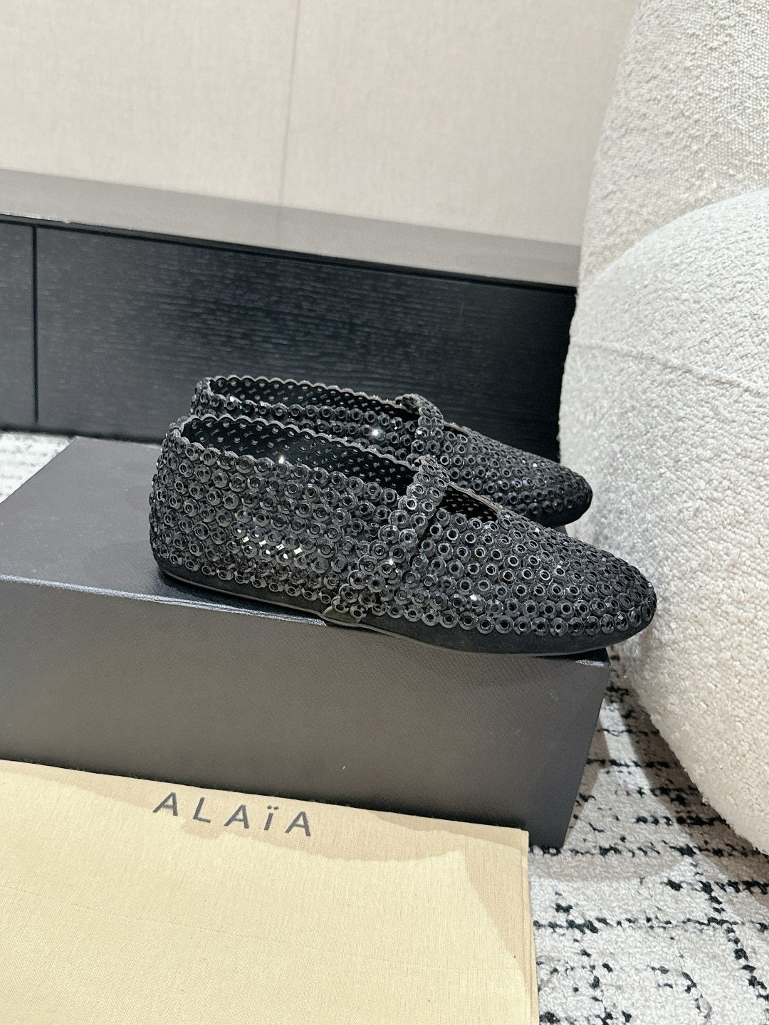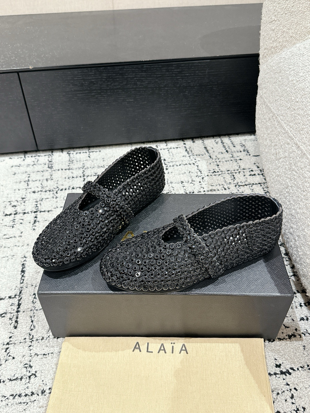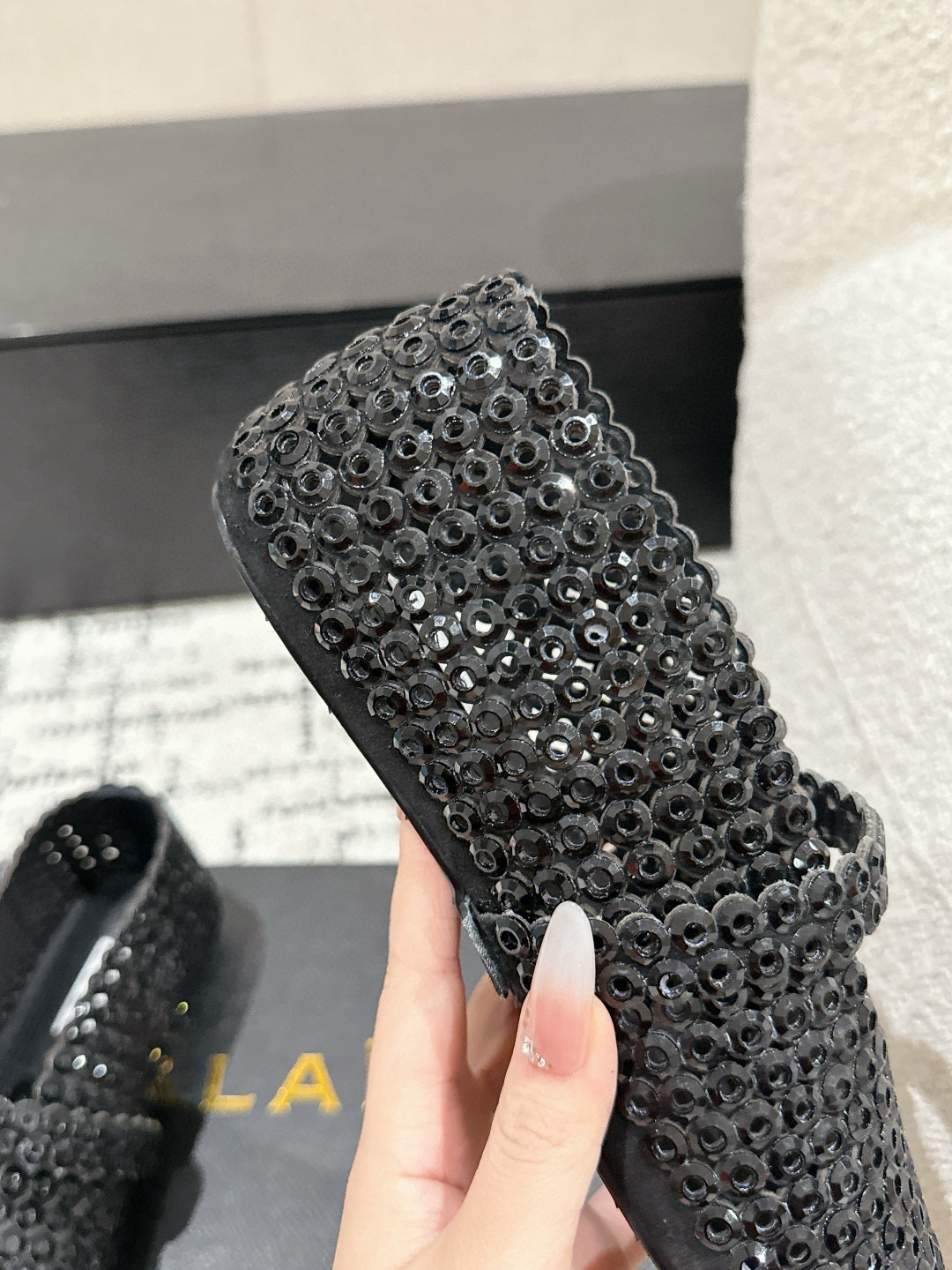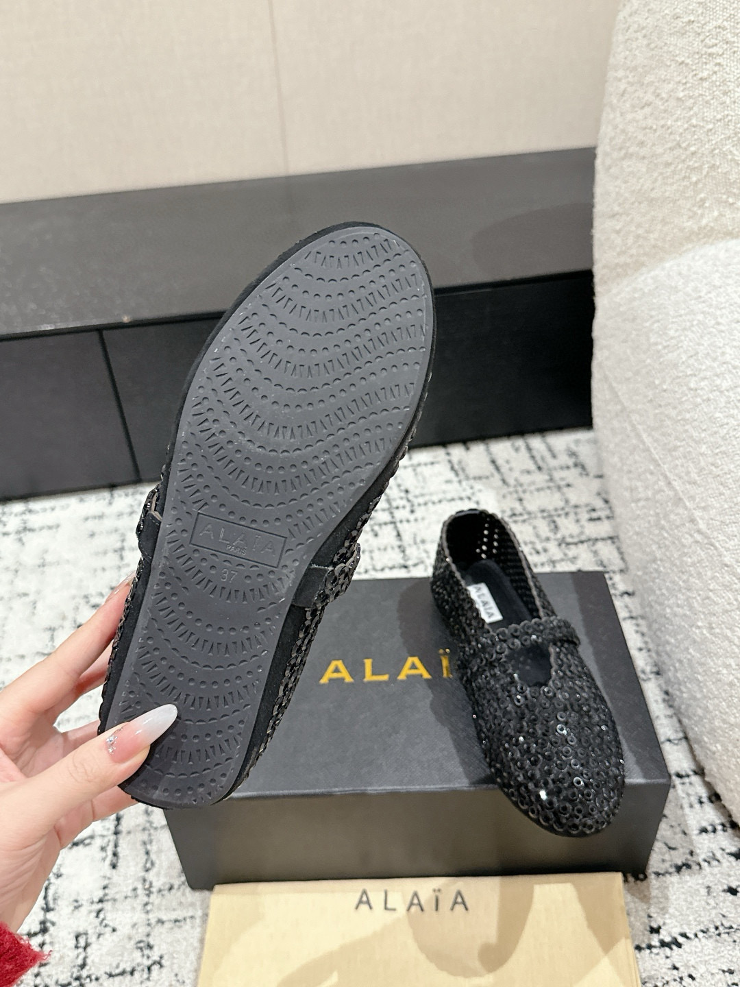這款鞋子是AAAAA 1:1 質量(非常棒). 使用了和原版一模一樣的材料. 商標部分也保持了和Alaia一樣. 圖片拍攝是實物鞋子拍攝, 您所收到的實物保證和我們圖片一模一樣.