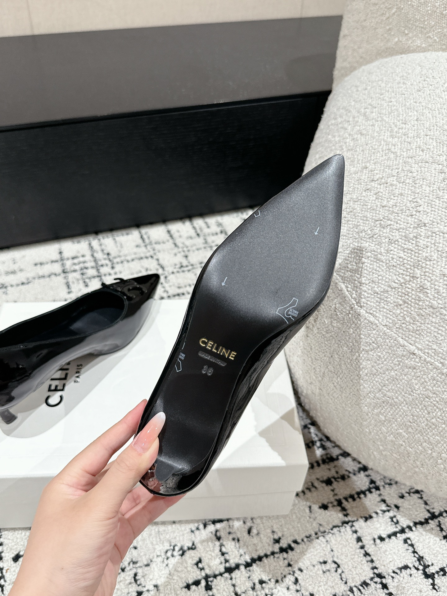 這款鞋子是AAAAA 1:1 質量(非常棒). 使用了和原版一模一樣的材料. 商標部分也保持了和思琳/赛琳/Celine一樣. 圖片拍攝是實物鞋子拍攝, 您所收到的實物保證和我們圖片一模一樣.