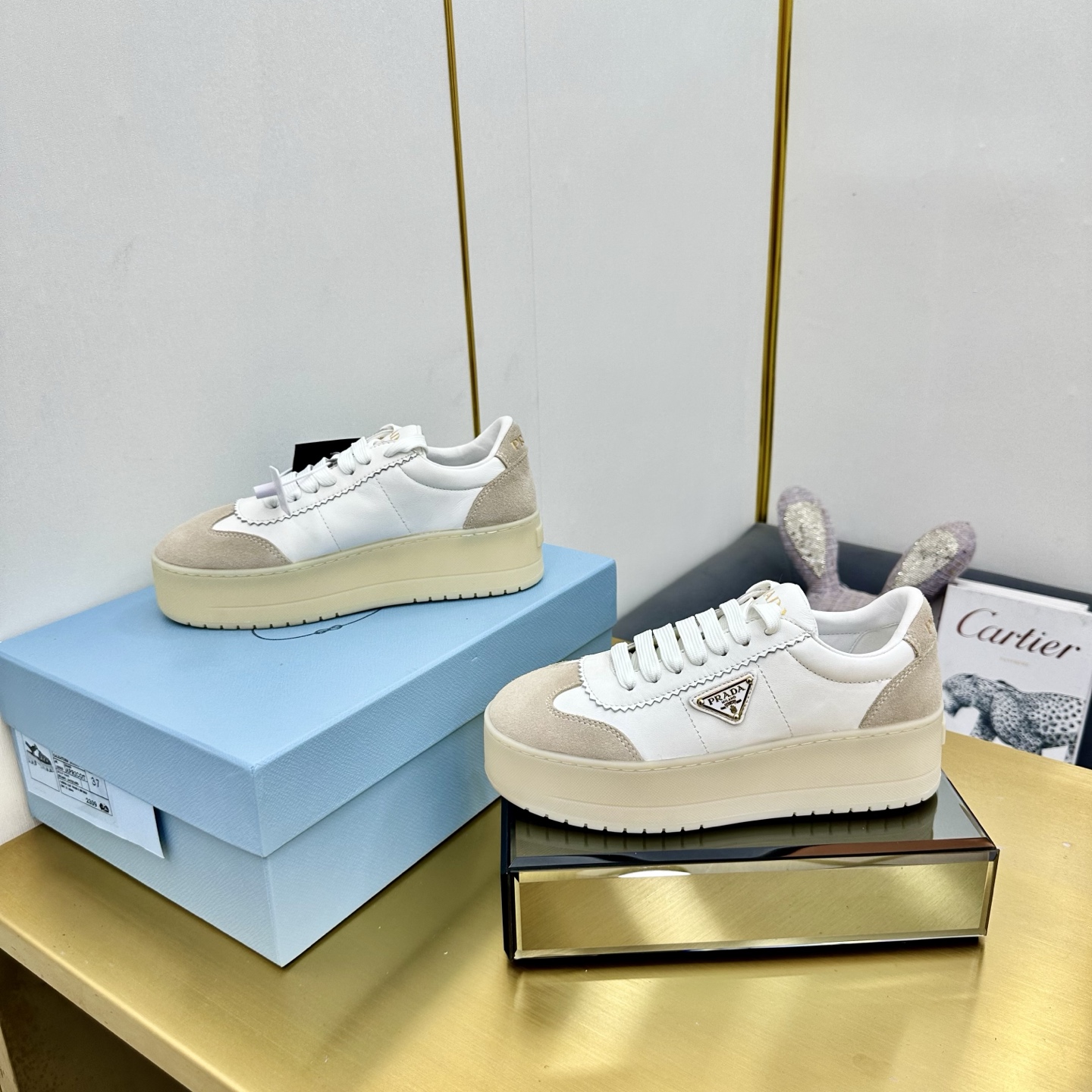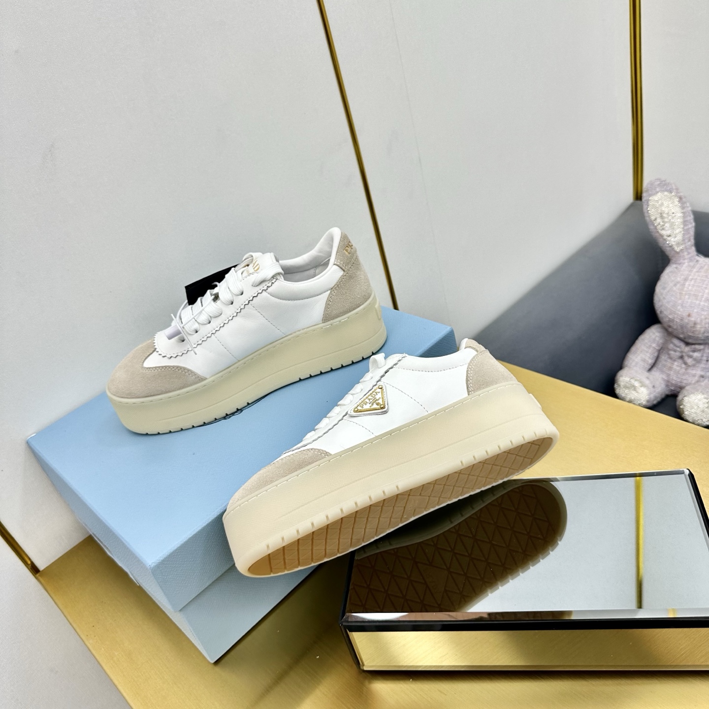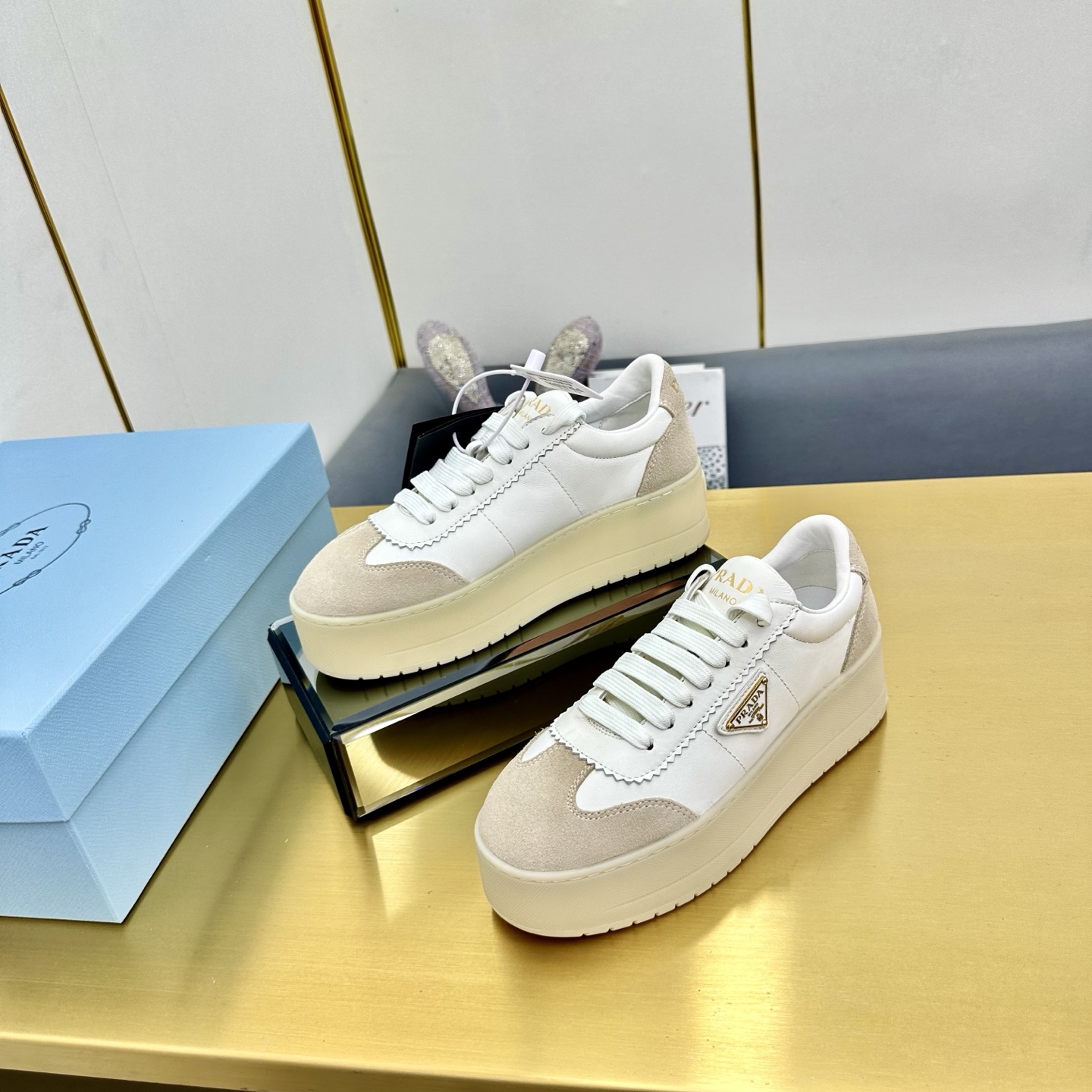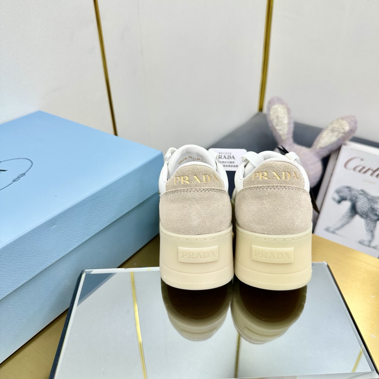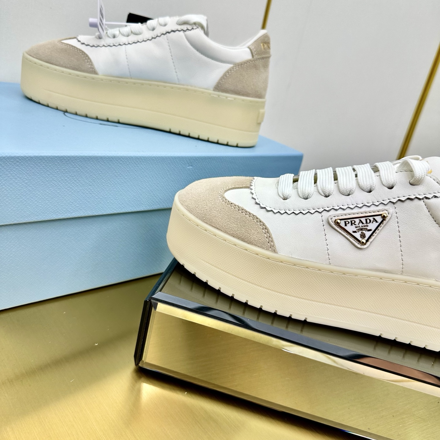 這款鞋子是AAAAA 1:1 質量(非常棒). 使用了和原版一模一樣的材料. 商標部分也保持了和普拉達/Prada一樣. 圖片拍攝是實物鞋子拍攝, 您所收到的實物保證和我們圖片一模一樣.
