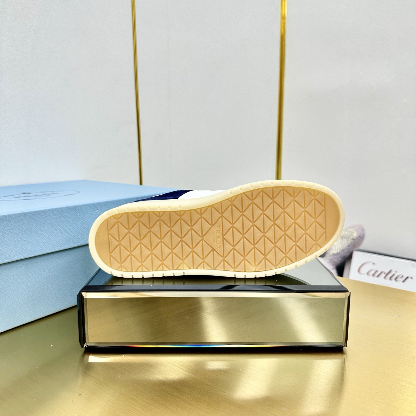 這款鞋子是AAAAA 1:1 質量(非常棒). 使用了和原版一模一樣的材料. 商標部分也保持了和普拉達/Prada一樣. 圖片拍攝是實物鞋子拍攝, 您所收到的實物保證和我們圖片一模一樣.