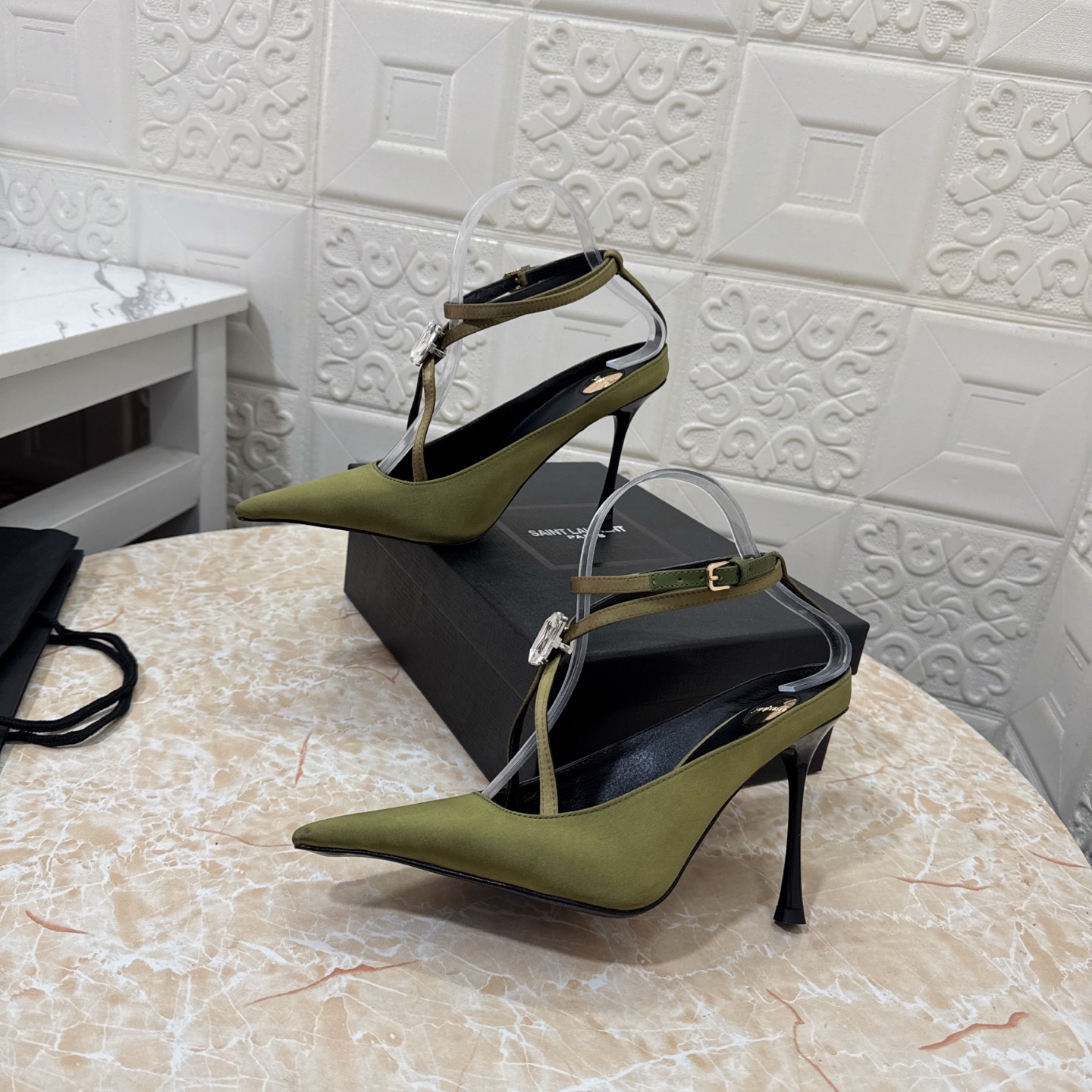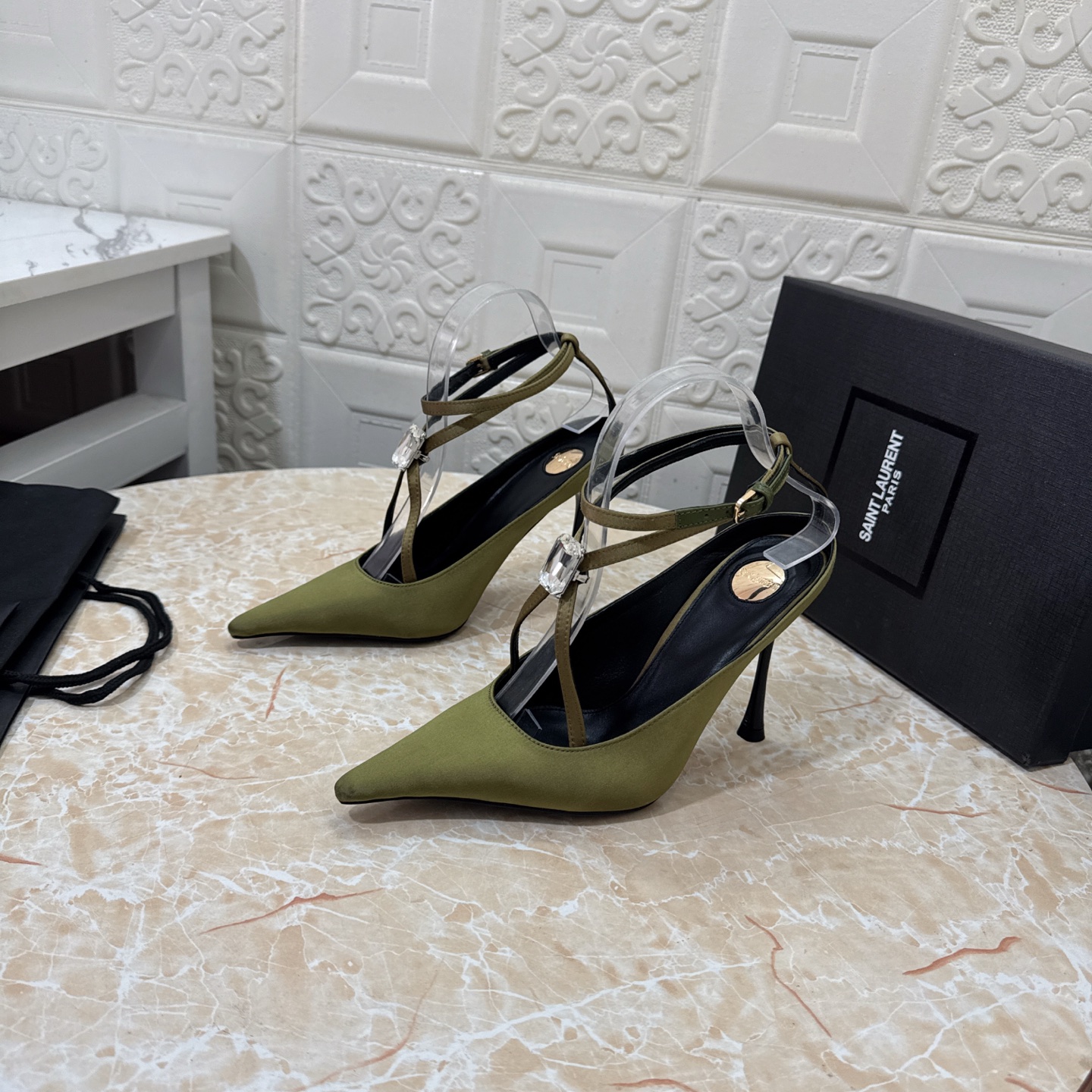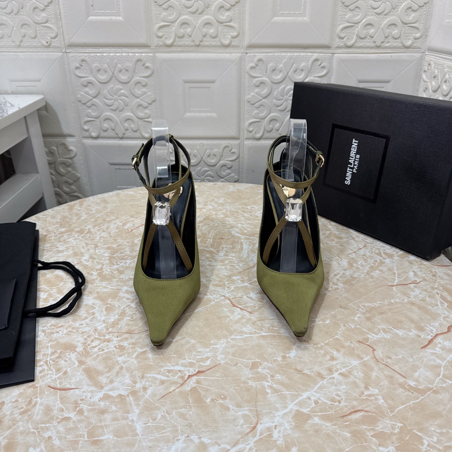 這款鞋子是AAAAA 1:1 質量(非常棒). 使用了和原版一模一樣的材料. 商標部分也保持了和聖羅蘭/Saint Laurent一樣. 圖片拍攝是實物鞋子拍攝, 您所收到的實物保證和我們圖片一模一樣.