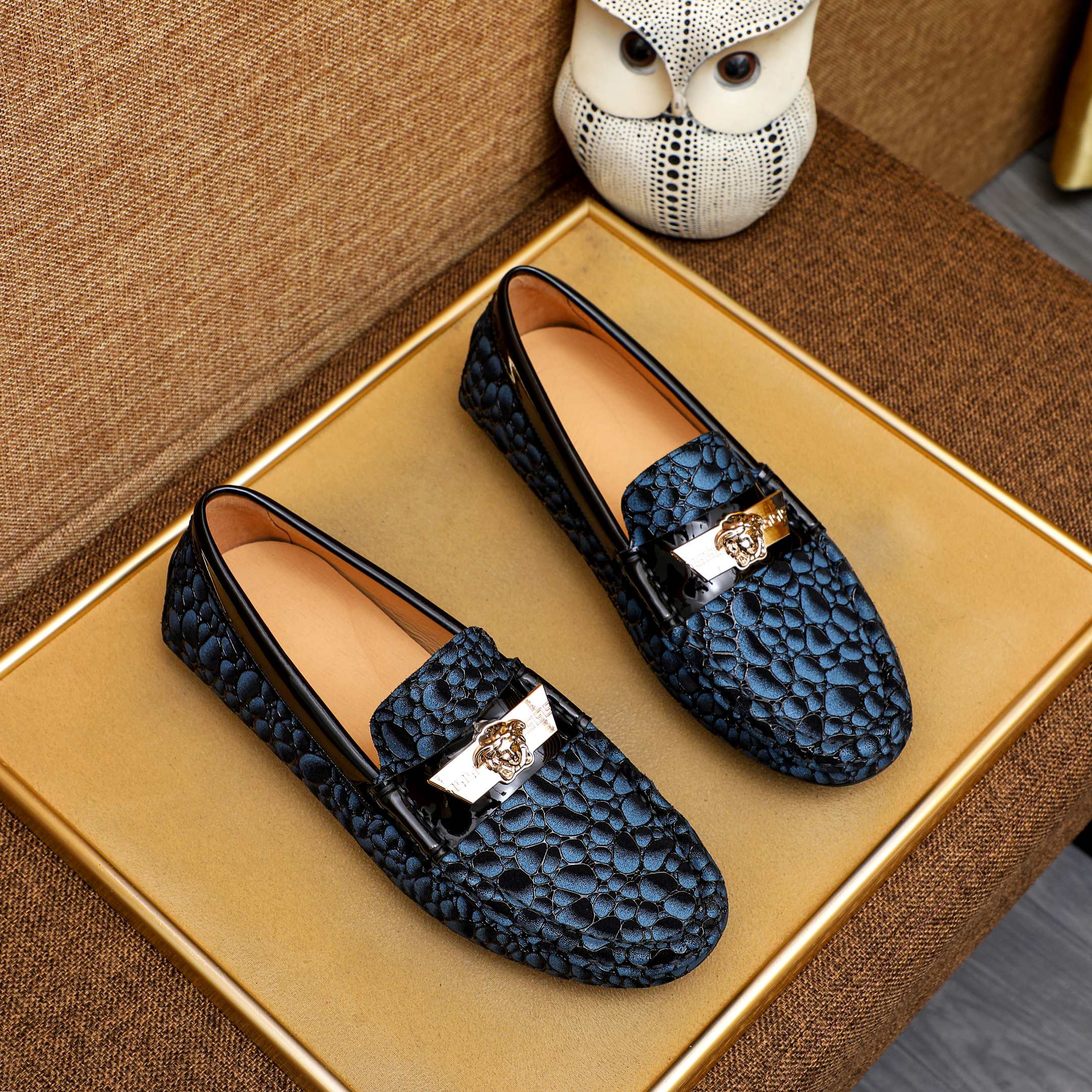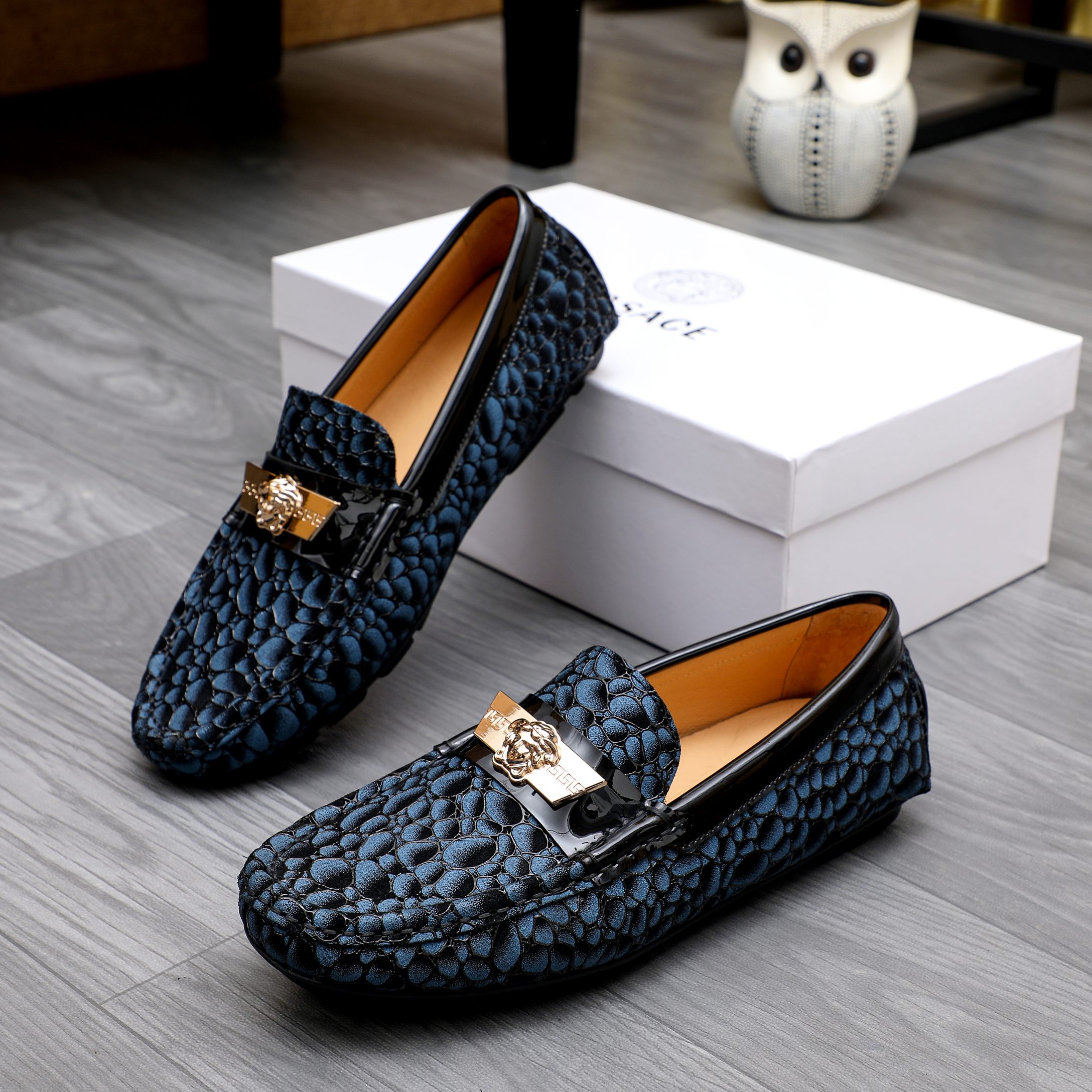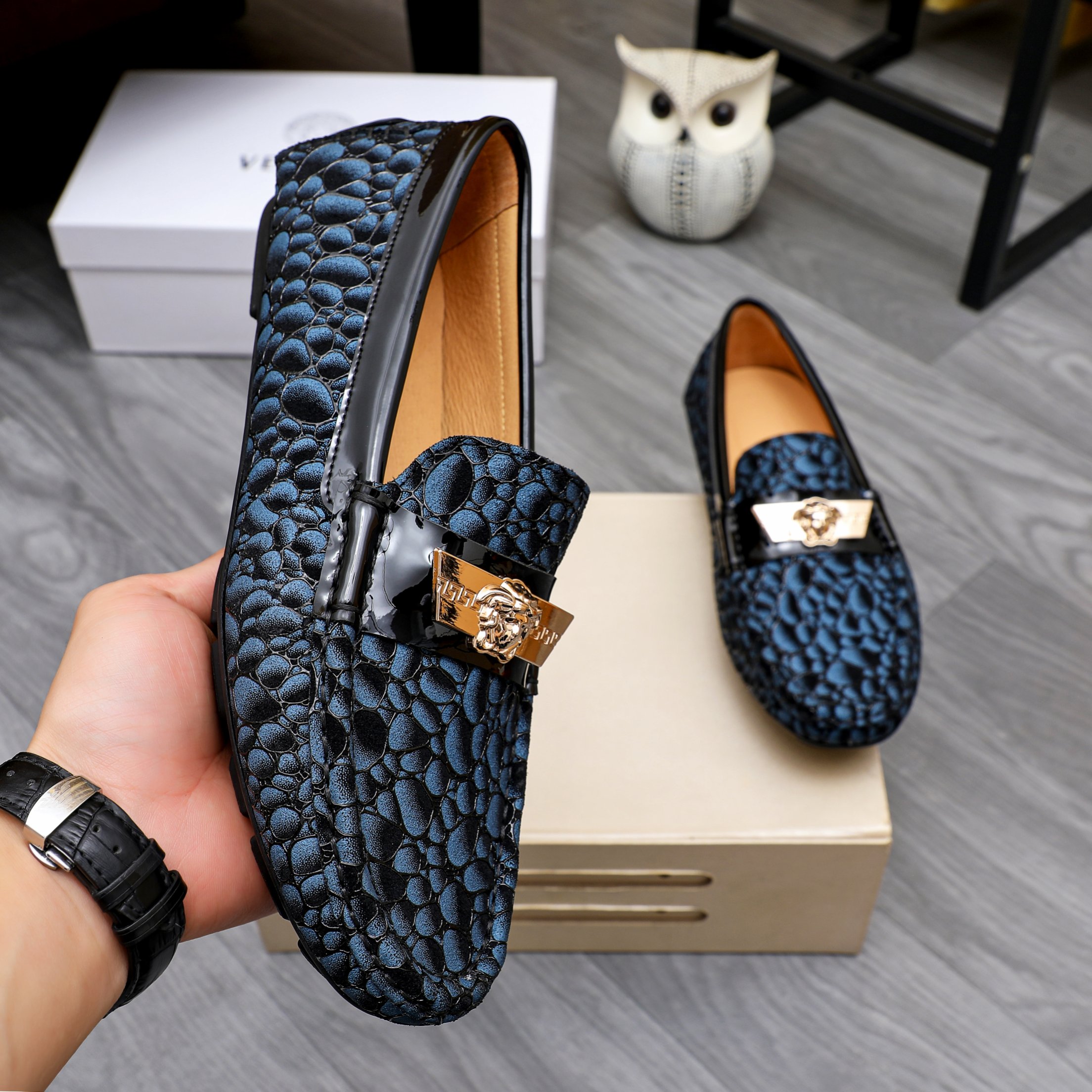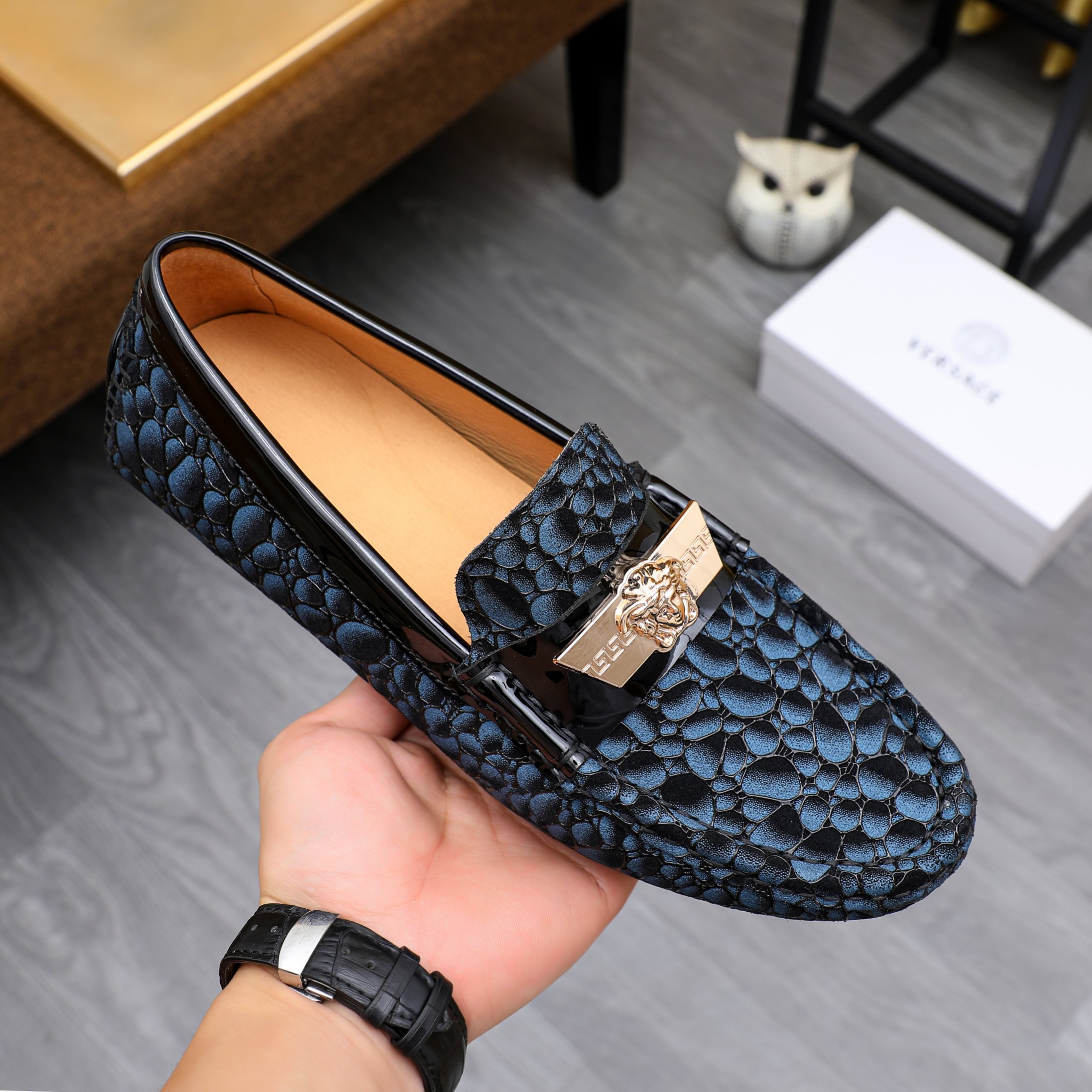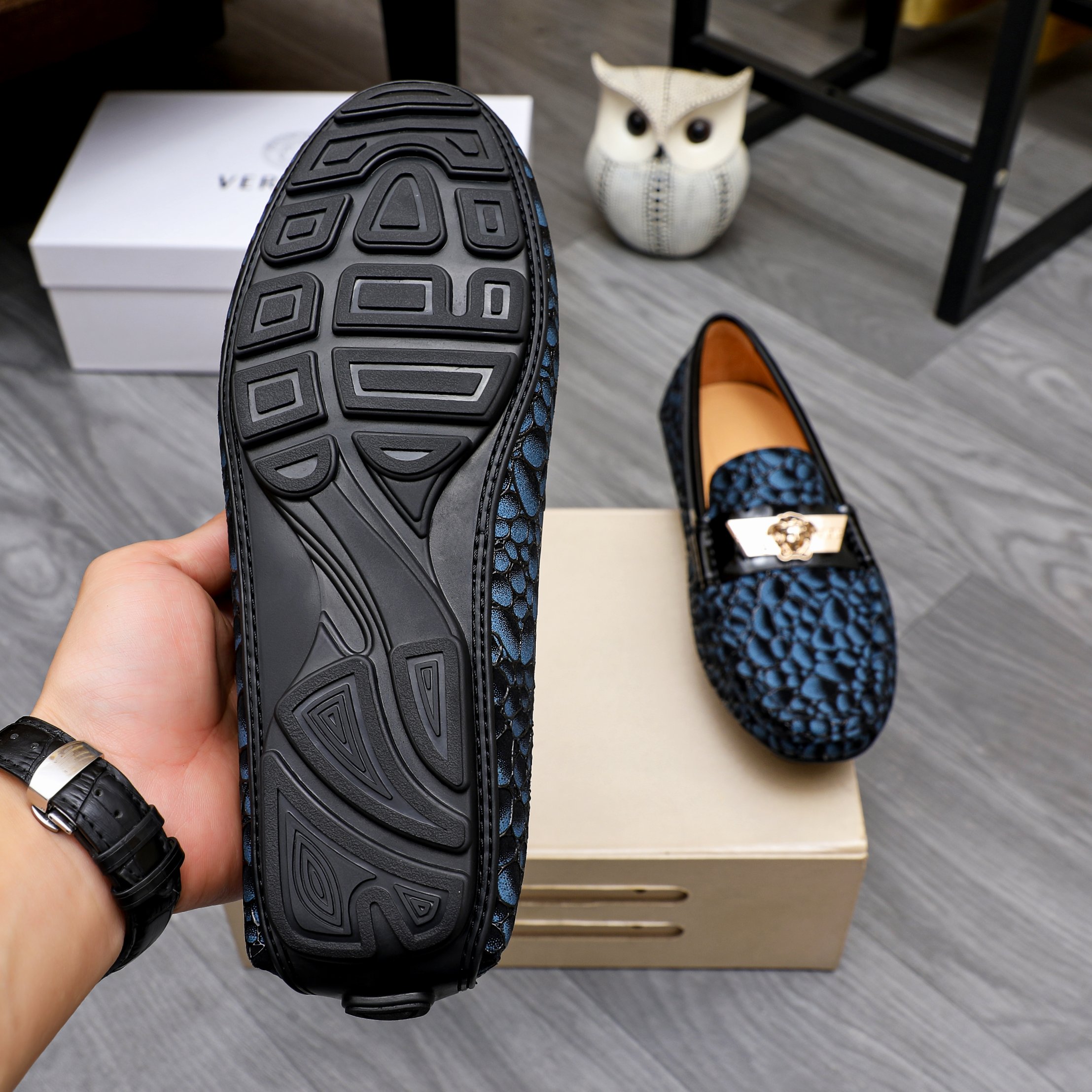 這款鞋子是AAAAA 1:1 質量(非常棒). 使用了和原版一模一樣的材料. 商標部分也保持了和范思哲/Versace一樣. 圖片拍攝是實物鞋子拍攝, 您所收到的實物保證和我們圖片一模一樣.