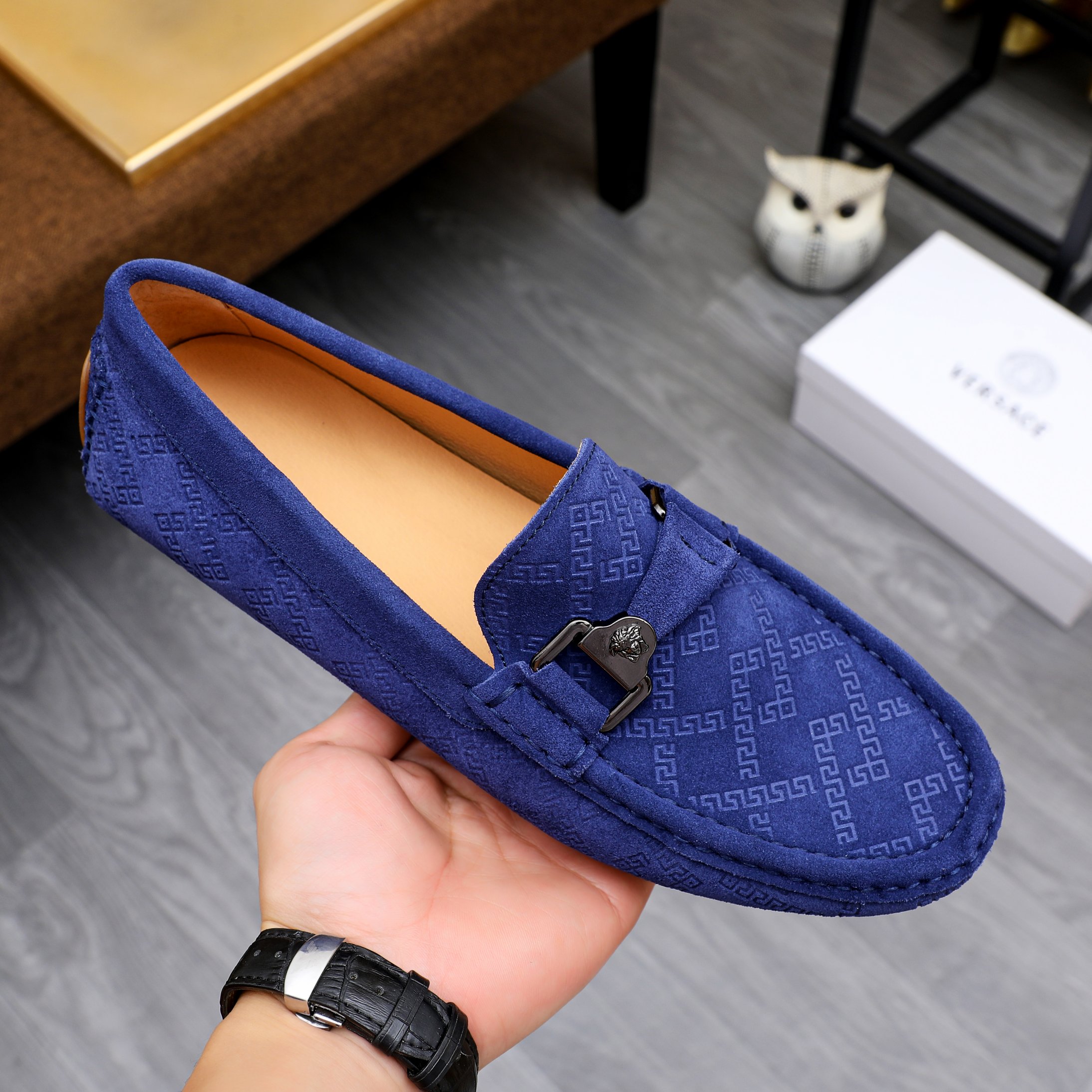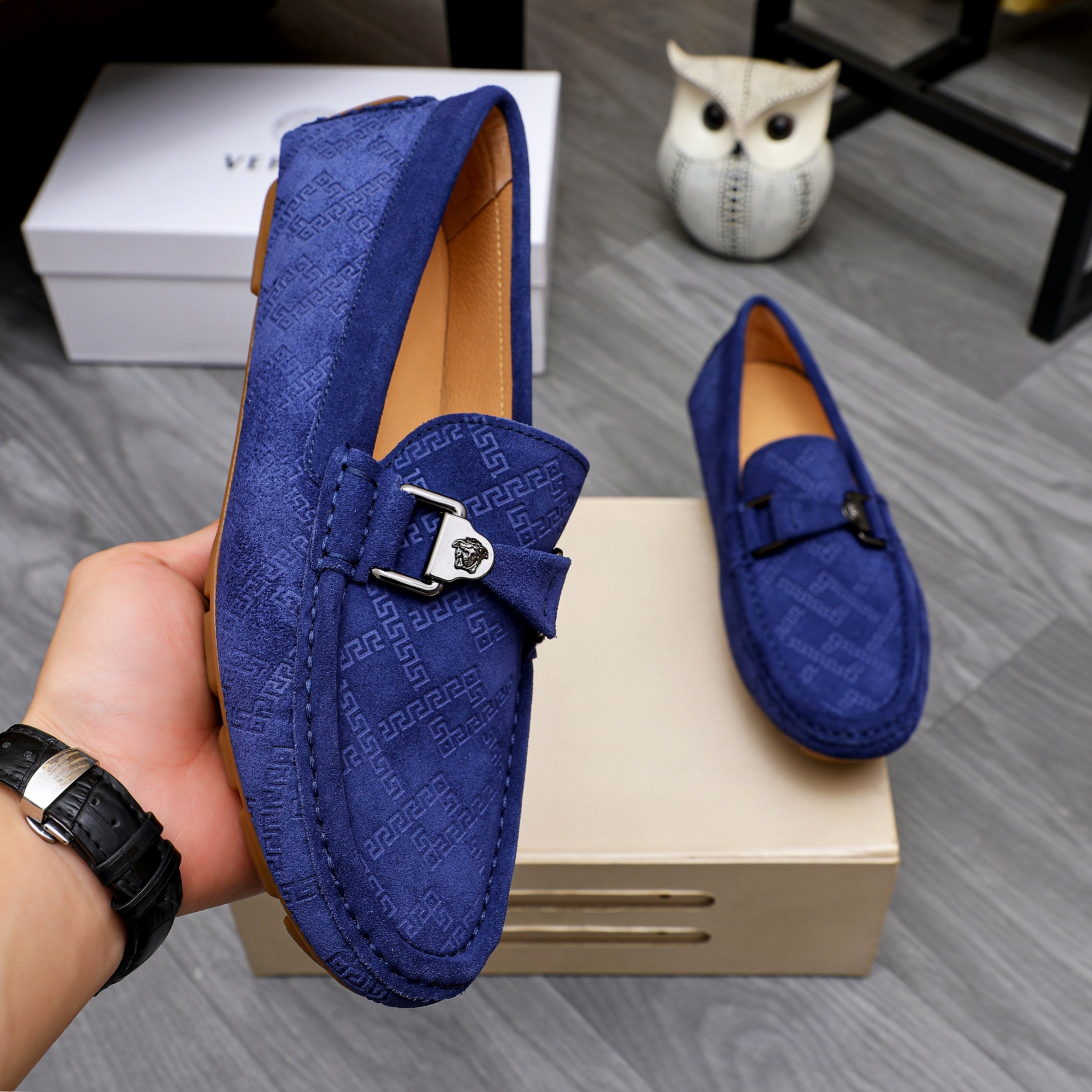 這款鞋子是AAAAA 1:1 質量(非常棒). 使用了和原版一模一樣的材料. 商標部分也保持了和范思哲/Versace一樣. 圖片拍攝是實物鞋子拍攝, 您所收到的實物保證和我們圖片一模一樣.
