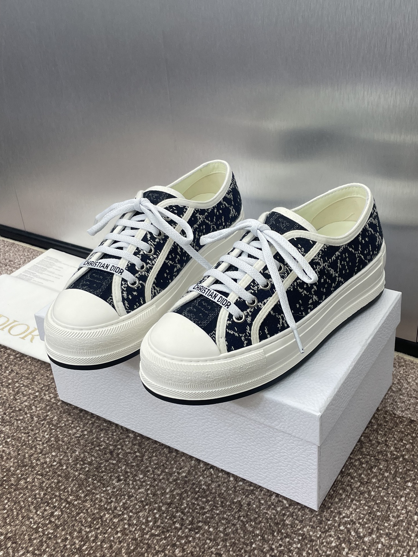這款鞋子是AAAAA 1:1 質量(非常棒). 使用了和原版一模一樣的材料. 商標部分也保持了和迪奧/Dior一樣. 圖片拍攝是實物鞋子拍攝, 您所收到的實物保證和我們圖片一模一樣.