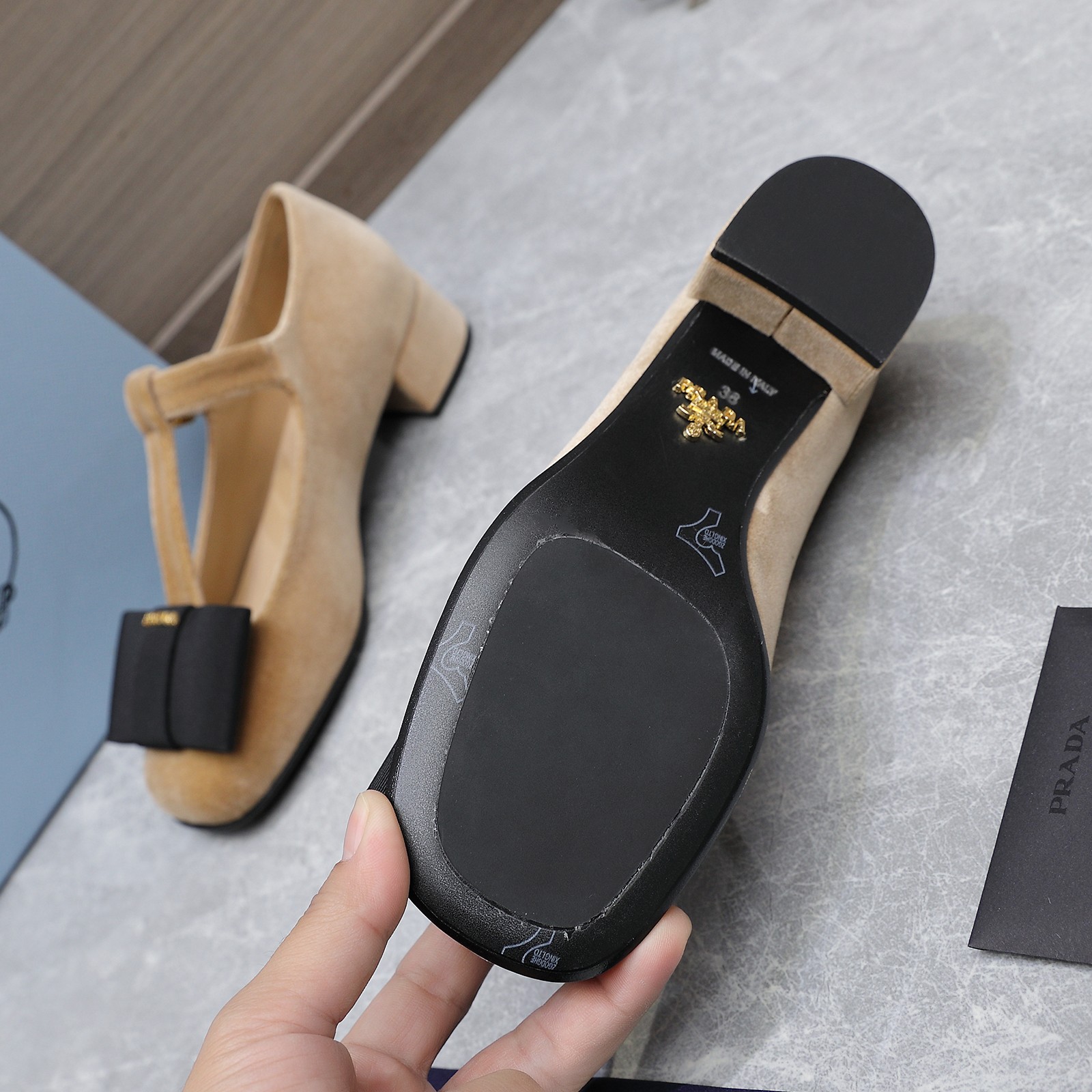 這款鞋子是AAAAA 1:1 質量(非常棒). 使用了和原版一模一樣的材料. 商標部分也保持了和普拉達/Prada一樣. 圖片拍攝是實物鞋子拍攝, 您所收到的實物保證和我們圖片一模一樣.