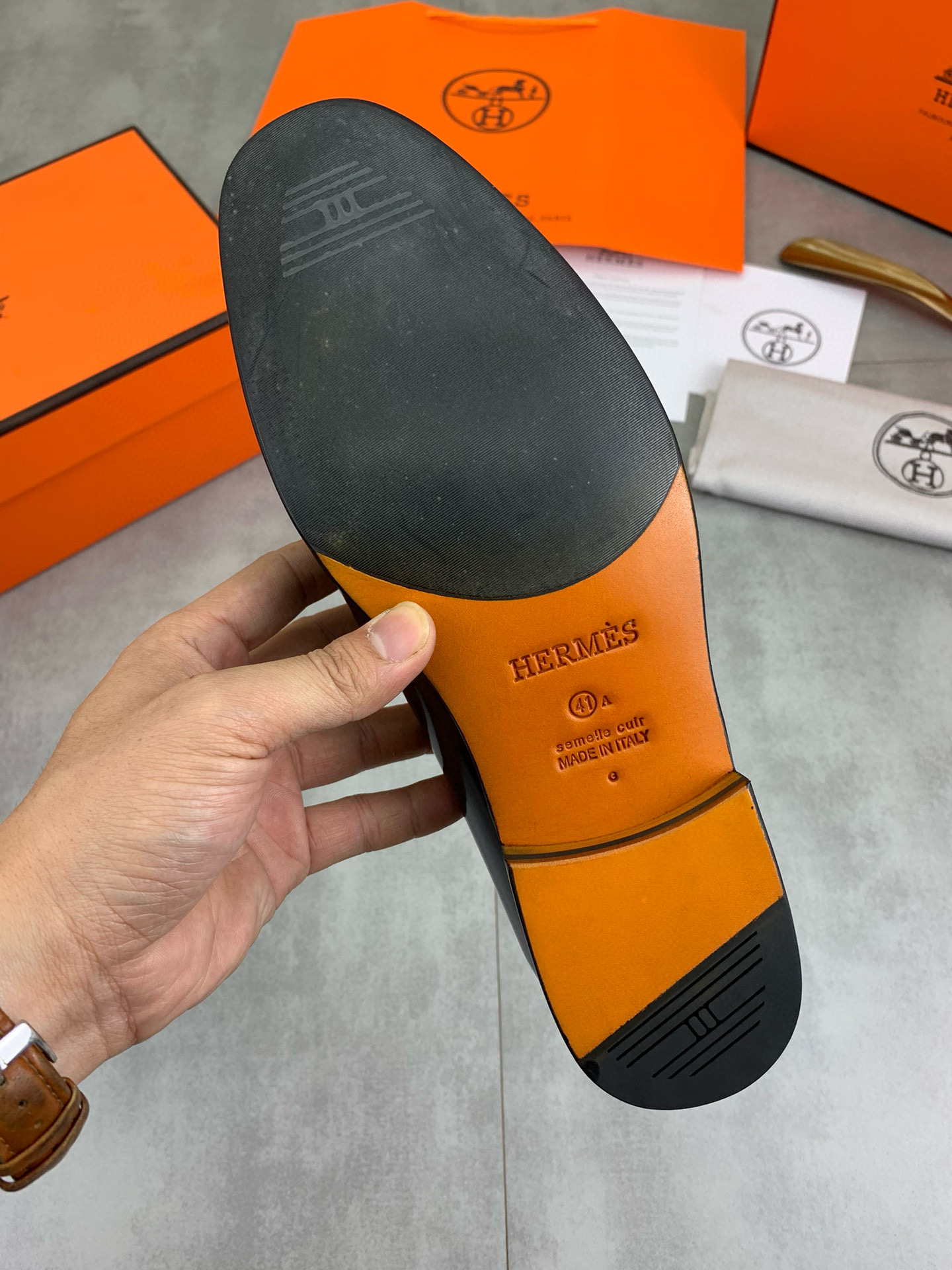 這款鞋子是AAAAA 1:1 質量(非常棒). 使用了和原版一模一樣的材料. 商標部分也保持了和愛馬仕/Hermes一樣. 圖片拍攝是實物鞋子拍攝, 您所收到的實物保證和我們圖片一模一樣.