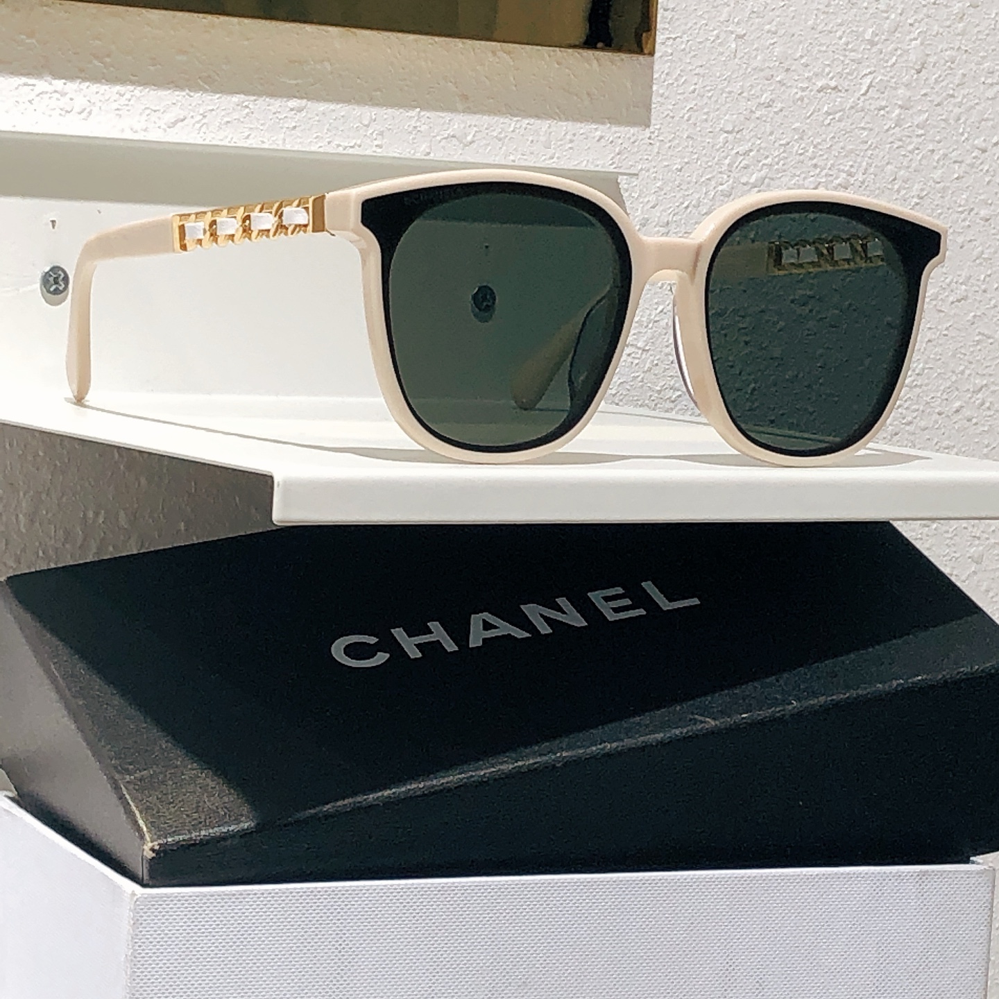 這款太陽眼鏡是AAAAA 1:1 質量(非常棒). 使用了和原版一模一樣的材料. 商標部分也保持了和香奈兒/Chanel一樣. 圖片拍攝是實物太陽眼鏡拍攝, 您所收到的實物保證和我們圖片一模一樣.