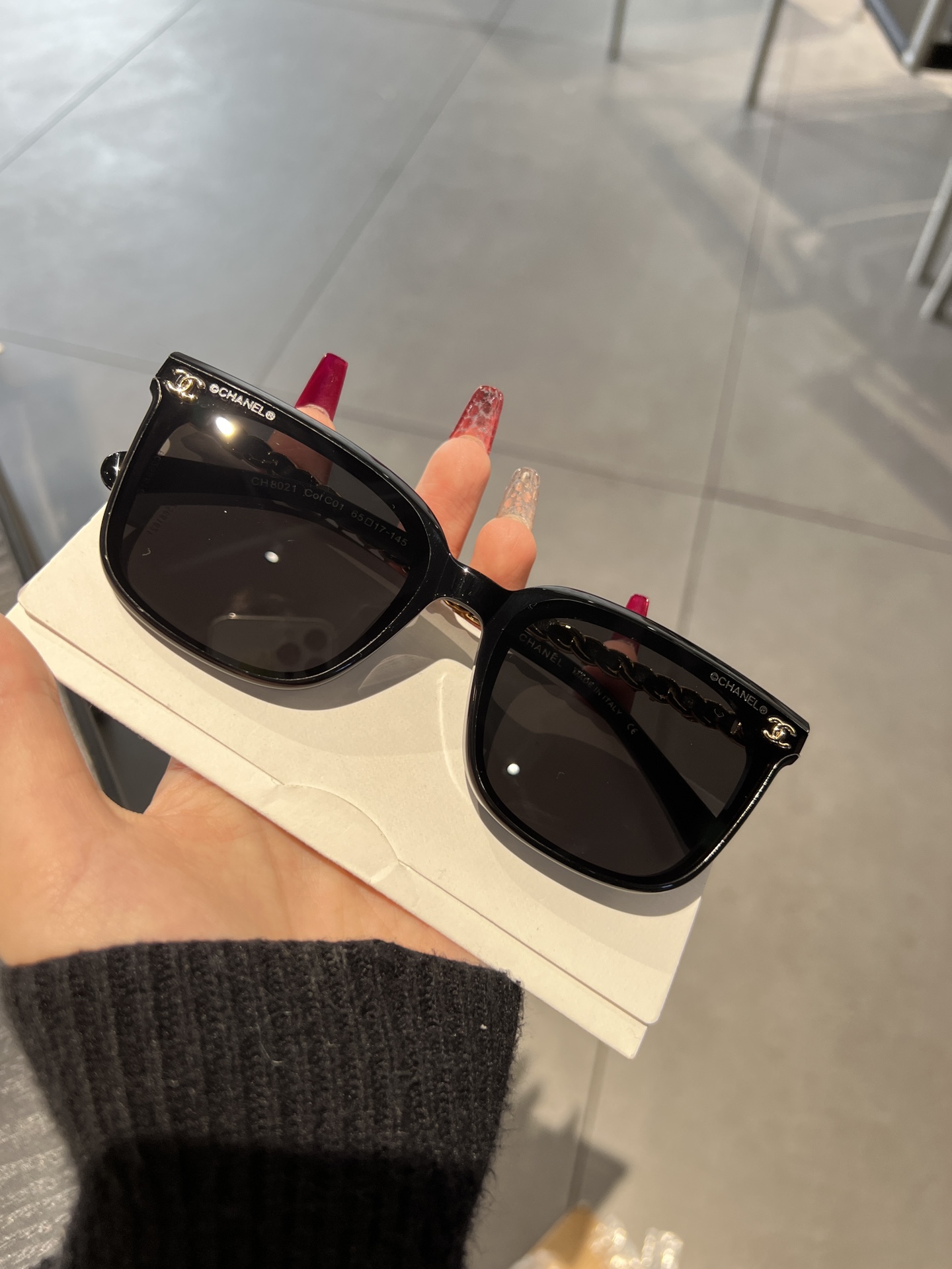 這款太陽眼鏡是AAAAA 1:1 質量(非常棒). 使用了和原版一模一樣的材料. 商標部分也保持了和香奈兒/Chanel一樣. 圖片拍攝是實物太陽眼鏡拍攝, 您所收到的實物保證和我們圖片一模一樣.