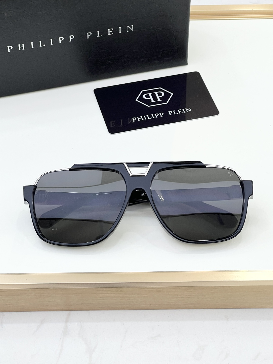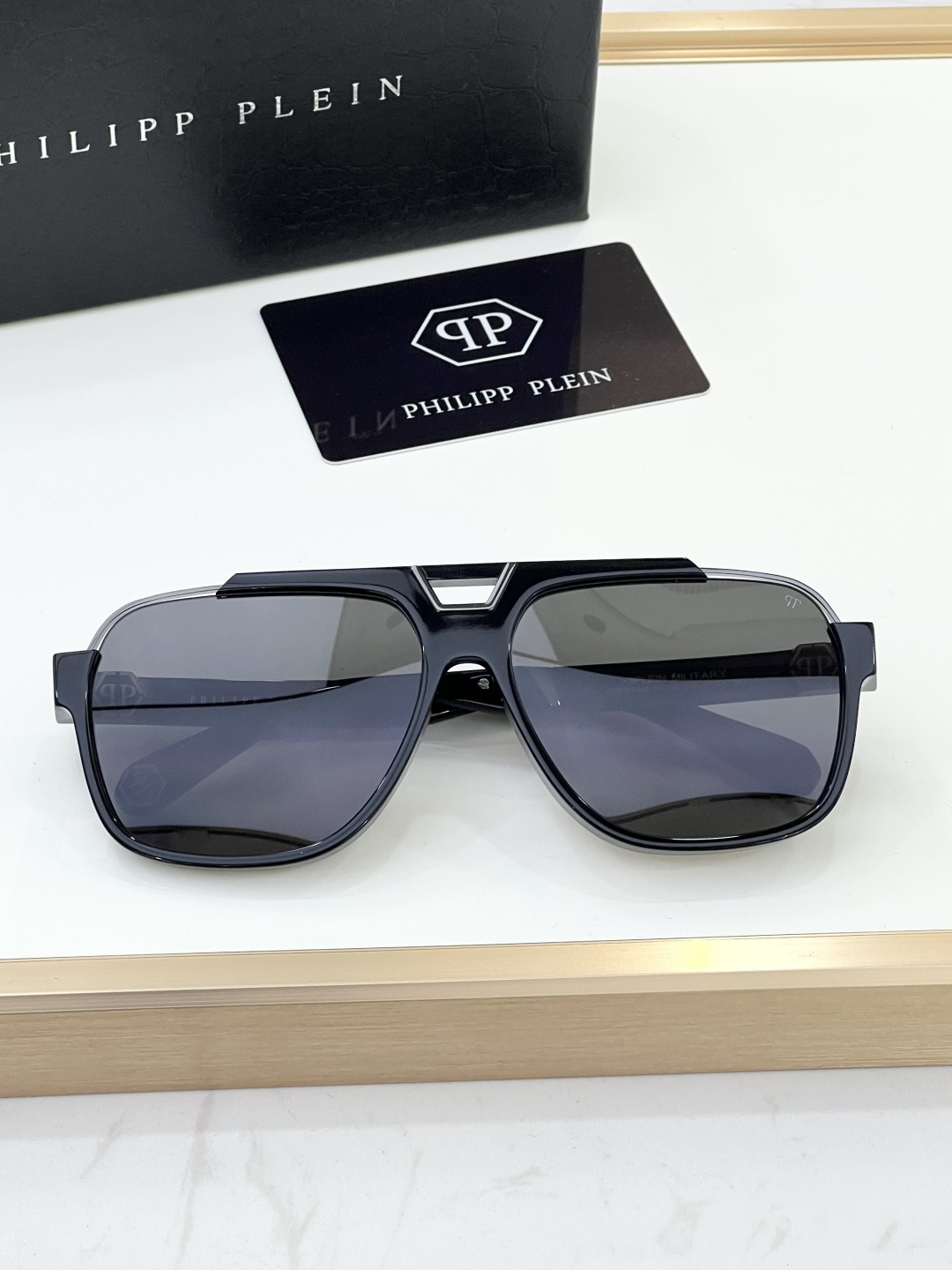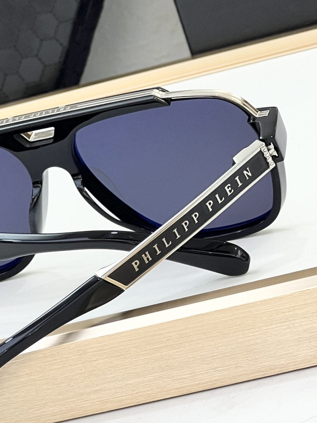 這款太陽眼鏡是AAAAA 1:1 質量(非常棒). 使用了和原版一模一樣的材料. 商標部分也保持了和菲利普·普林/Philipp Plein一樣. 圖片拍攝是實物太陽眼鏡拍攝, 您所收到的實物保證和我們圖片一模一樣.