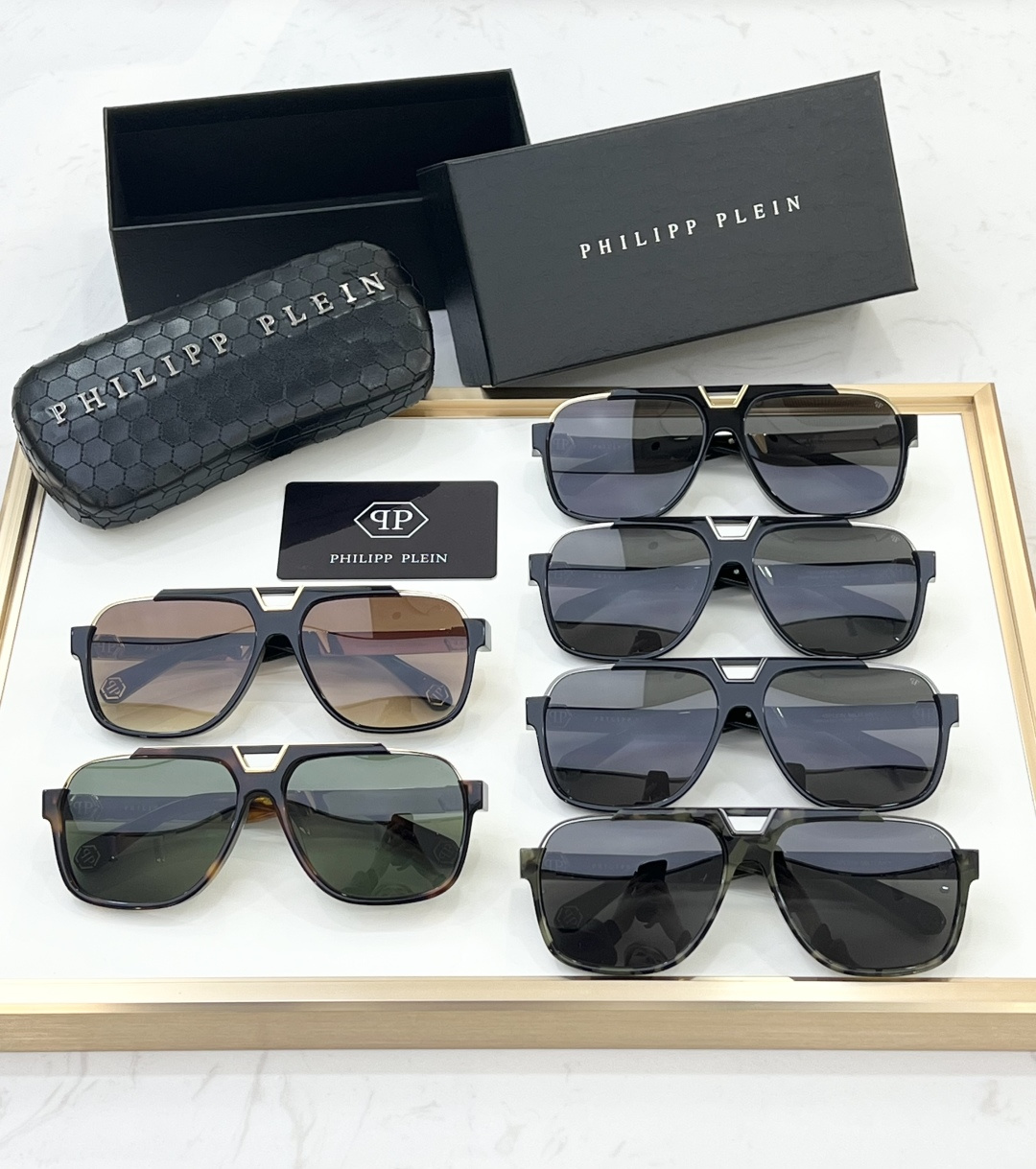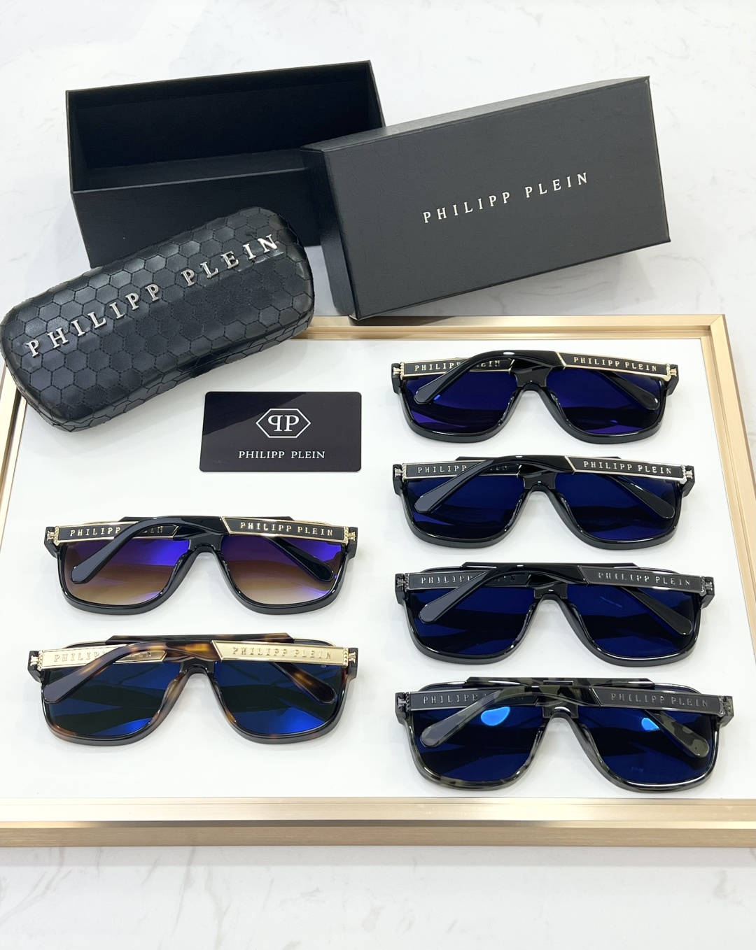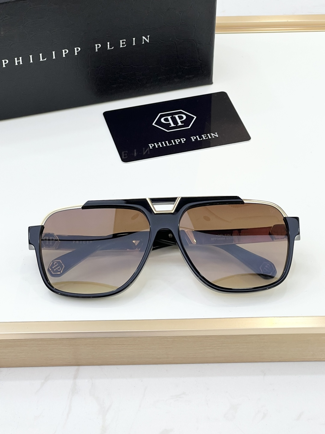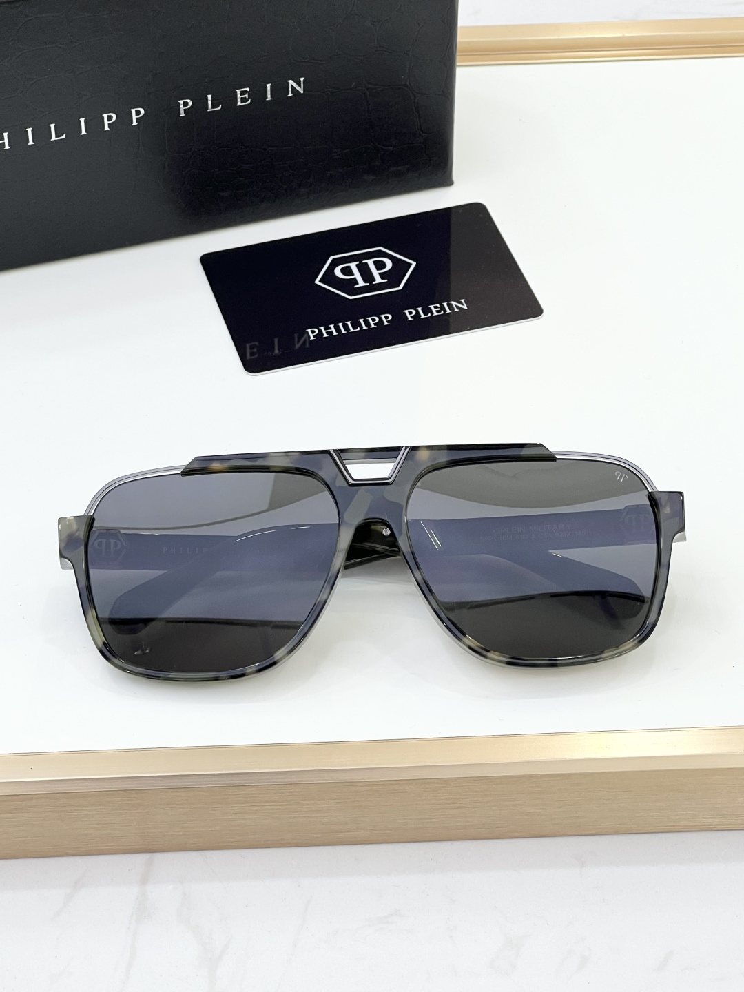 這款太陽眼鏡是AAAAA 1:1 質量(非常棒). 使用了和原版一模一樣的材料. 商標部分也保持了和菲利普·普林/Philipp Plein一樣. 圖片拍攝是實物太陽眼鏡拍攝, 您所收到的實物保證和我們圖片一模一樣.