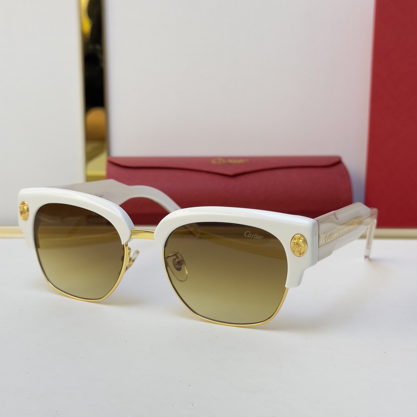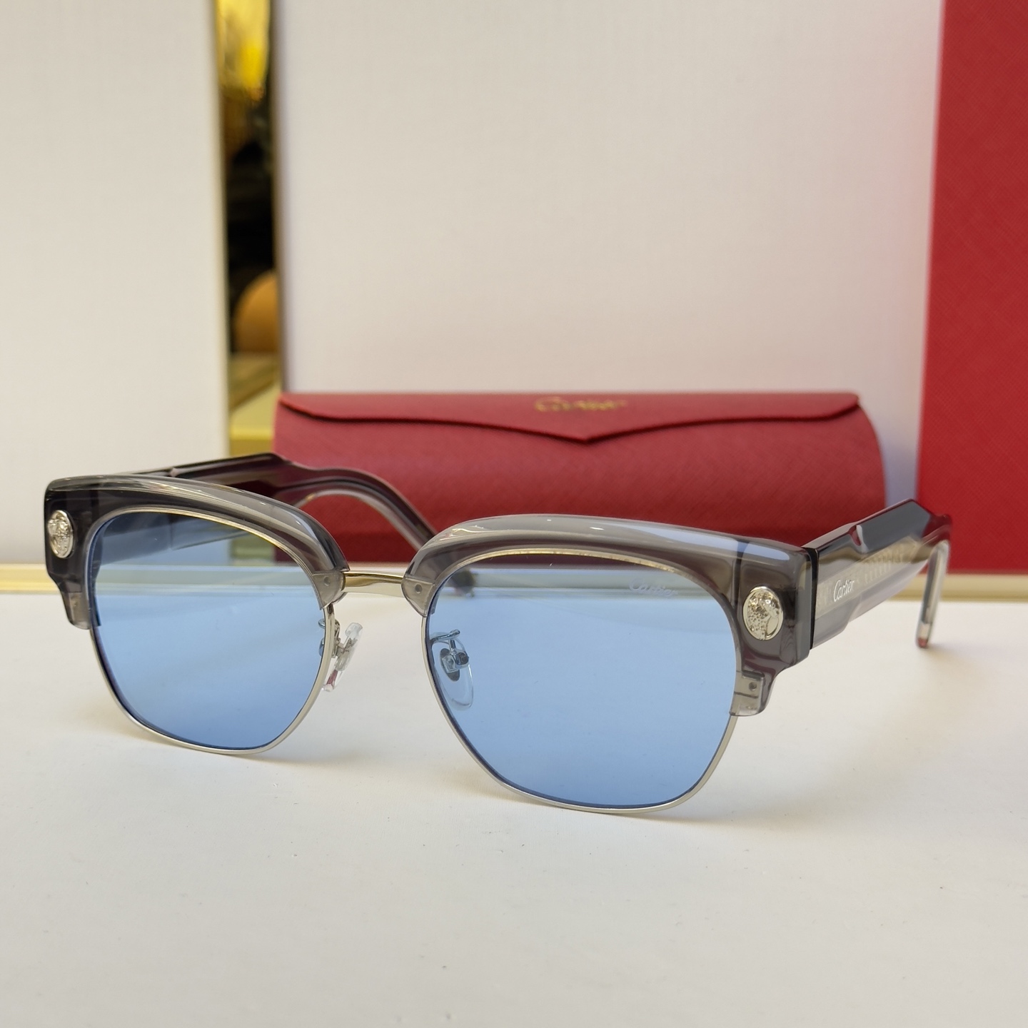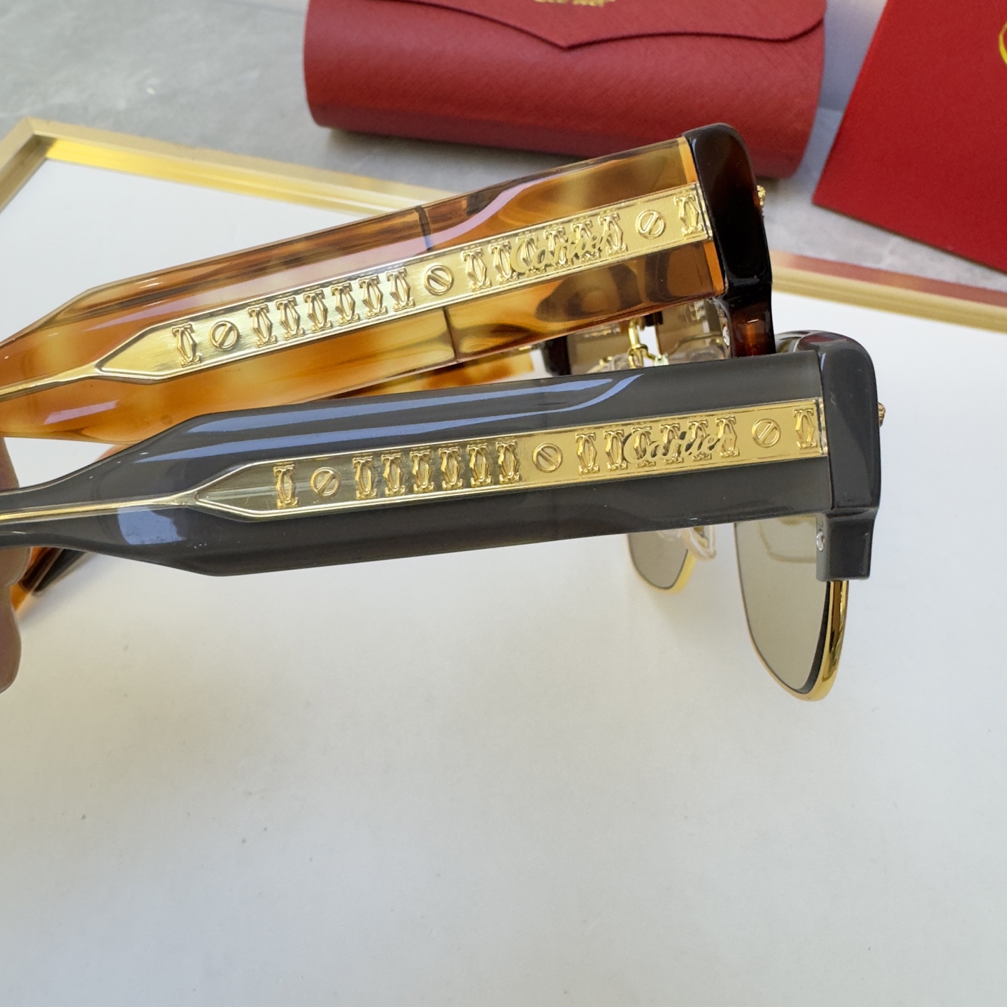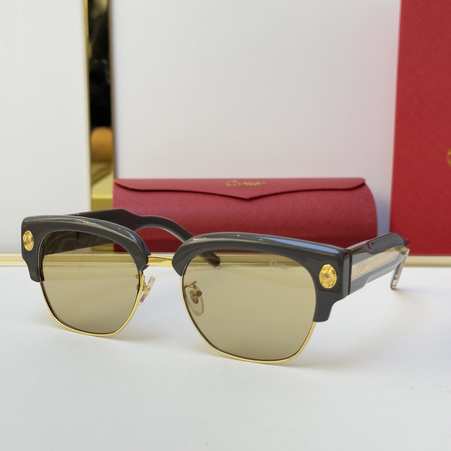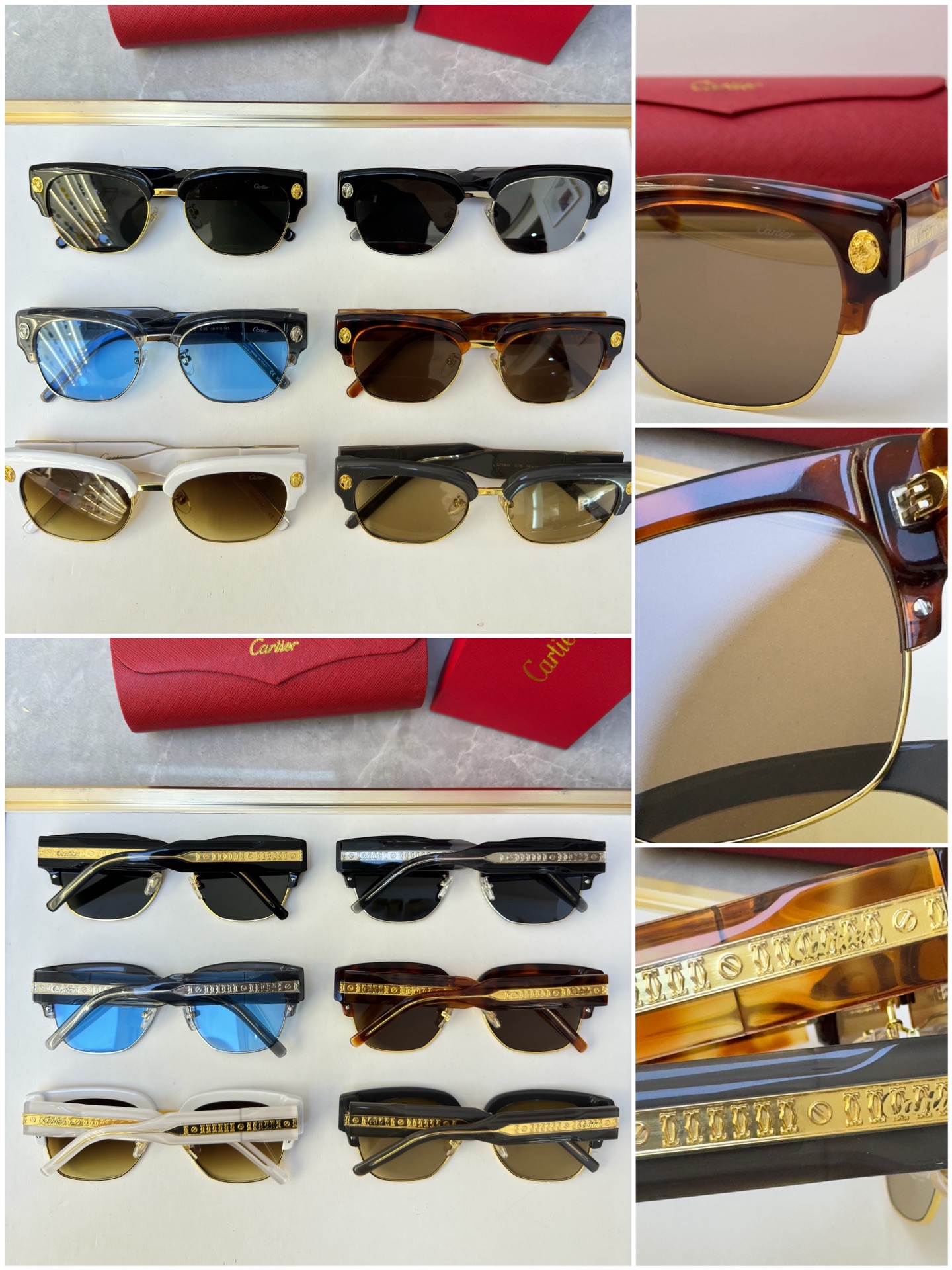 這款太陽眼鏡是AAAAA 1:1 質量(非常棒). 使用了和原版一模一樣的材料. 商標部分也保持了和卡地亞/Cartier一樣. 圖片拍攝是實物太陽眼鏡拍攝, 您所收到的實物保證和我們圖片一模一樣.
