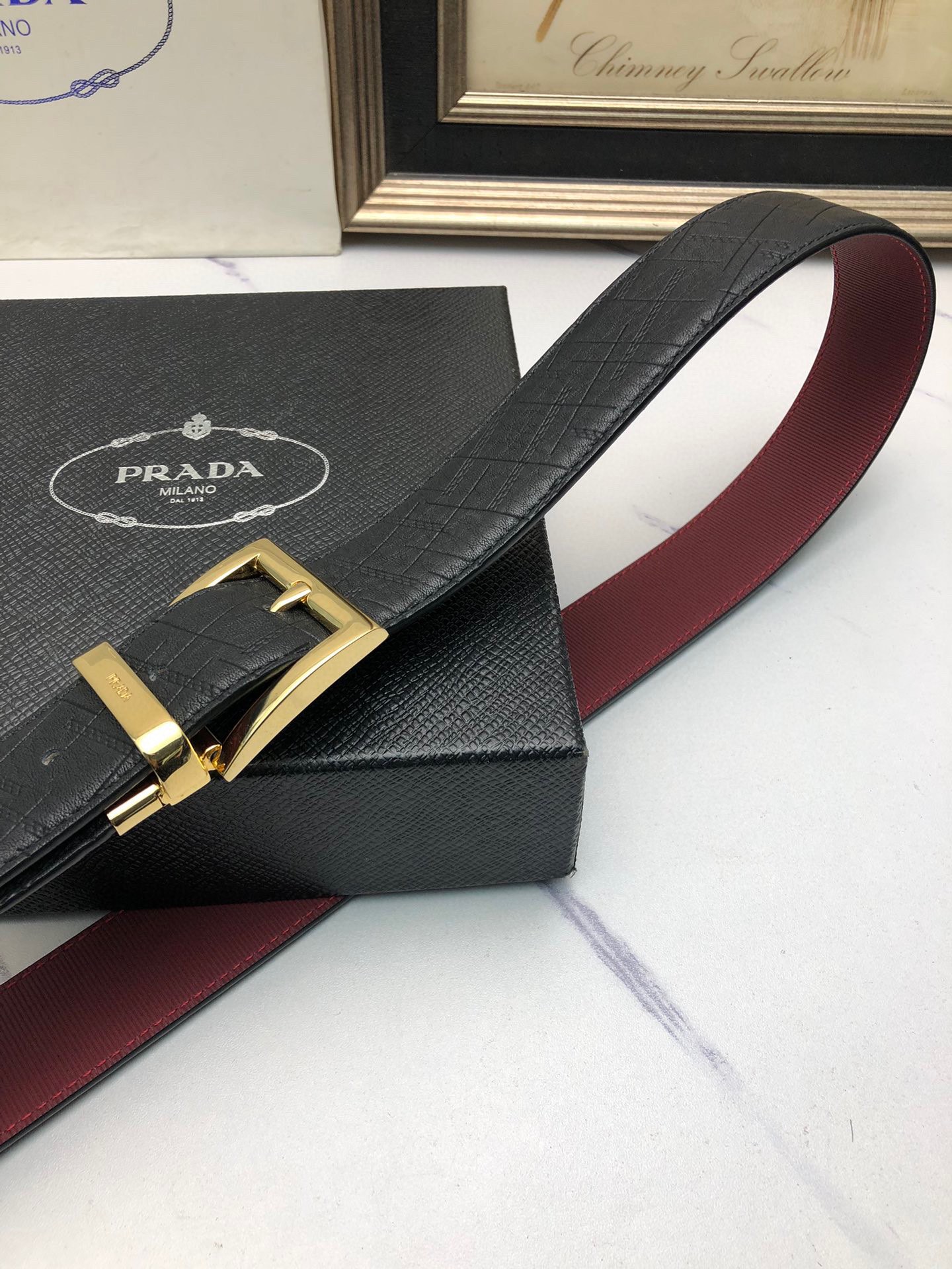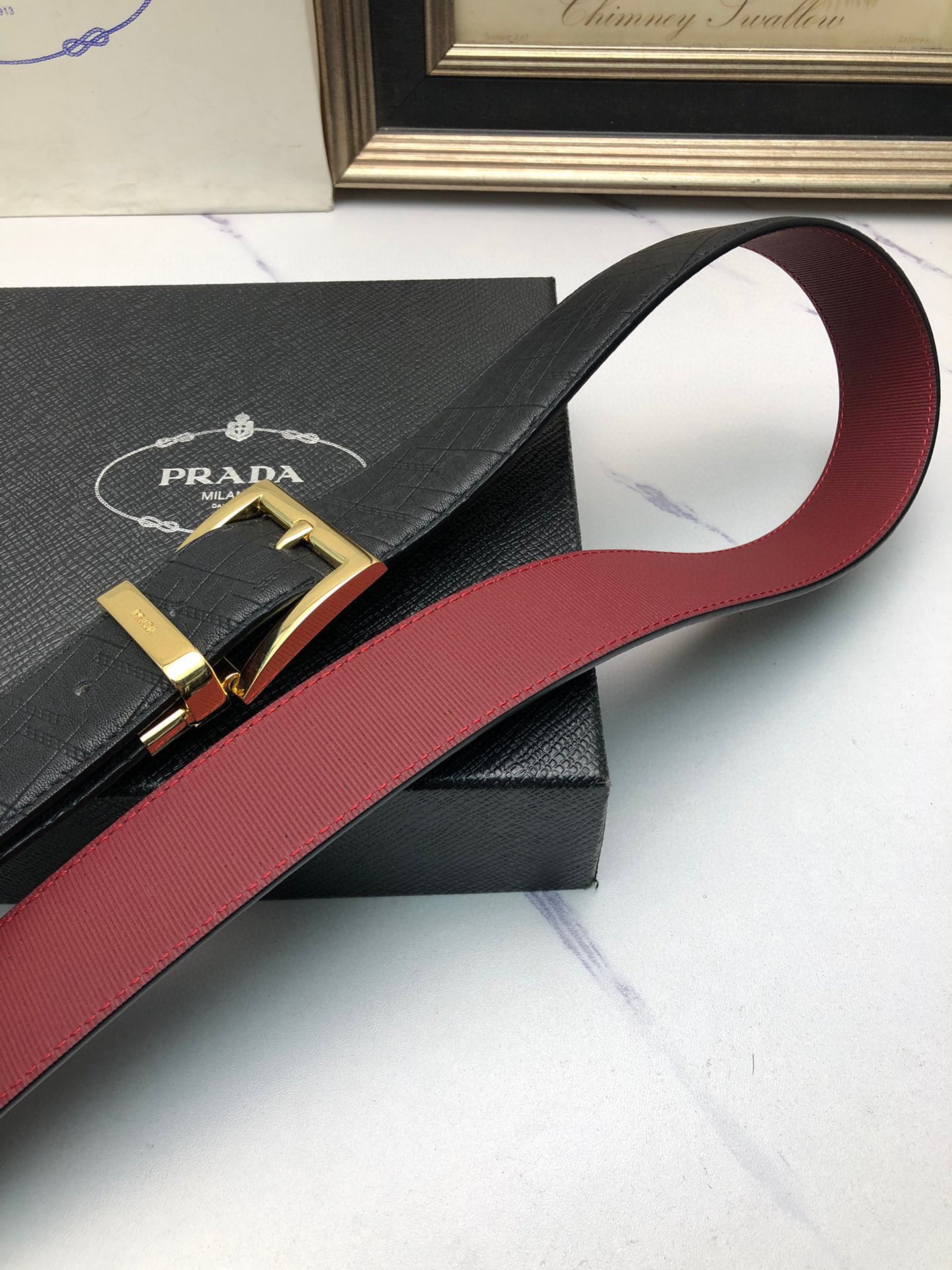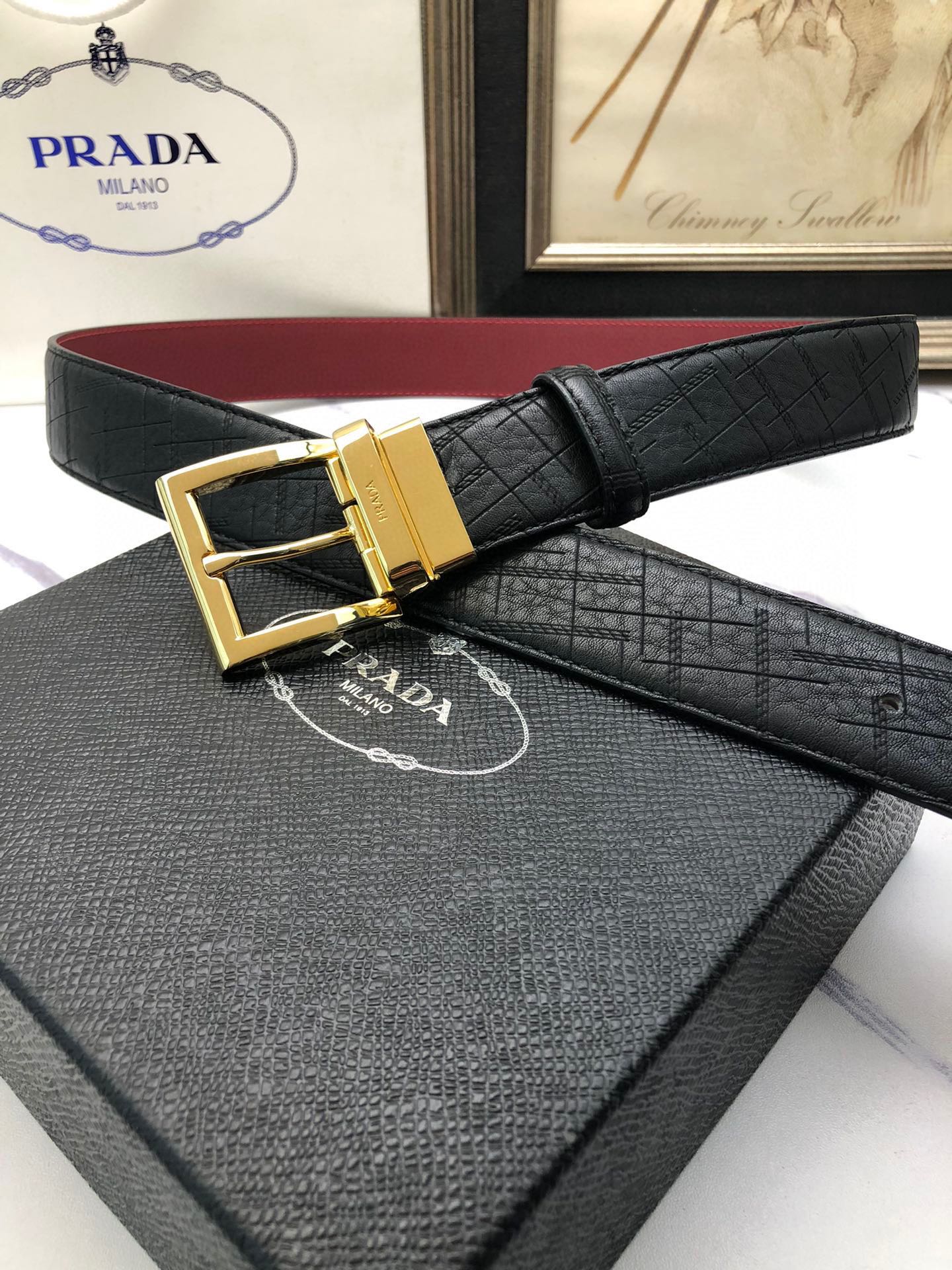 這款皮帶是AAAAA 1:1 質量(非常棒). 使用了和原版一模一樣的材料. 商標部分也保持了和普拉達/Prada一樣. 圖片拍攝是實物皮帶拍攝, 您所收到的實物保證和我們圖片一模一樣.