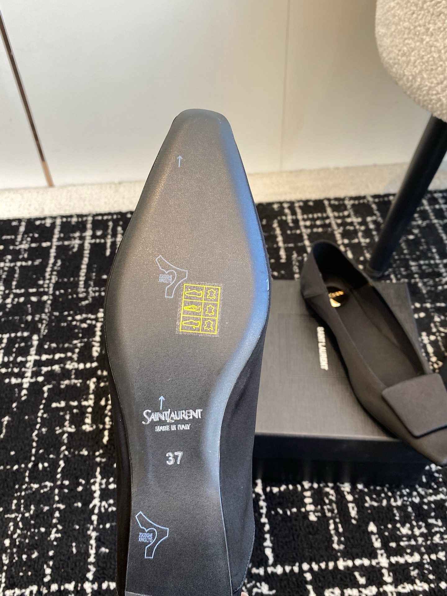 這款鞋子是AAAAA 1:1 質量(非常棒). 使用了和原版一模一樣的材料. 商標部分也保持了和聖羅蘭/Saint Laurent一樣. 圖片拍攝是實物鞋子拍攝, 您所收到的實物保證和我們圖片一模一樣.