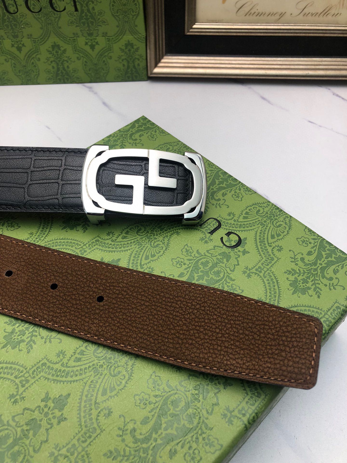 這款皮帶是AAAAA 1:1 質量(非常棒). 使用了和原版一模一樣的材料. 商標部分也保持了和古奇/Gucci一樣. 圖片拍攝是實物皮帶拍攝, 您所收到的實物保證和我們圖片一模一樣.