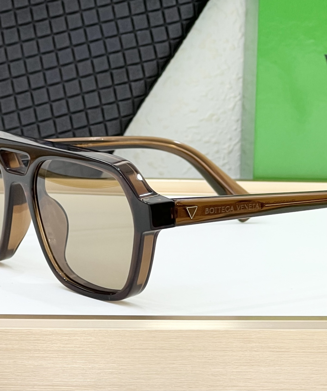 這款太陽眼鏡是AAAAA 1:1 質量(非常棒). 使用了和原版一模一樣的材料. 商標部分也保持了和葆蝶家/Bottega Veneta一樣. 圖片拍攝是實物太陽眼鏡拍攝, 您所收到的實物保證和我們圖片一模一樣.