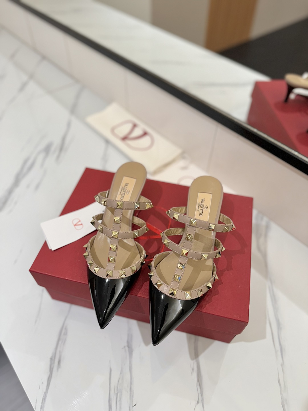 這款鞋子是AAAAA 1:1 質量(非常棒). 使用了和原版一模一樣的材料. 商標部分也保持了和瓦倫蒂諾/Valentino一樣. 圖片拍攝是實物鞋子拍攝, 您所收到的實物保證和我們圖片一模一樣.