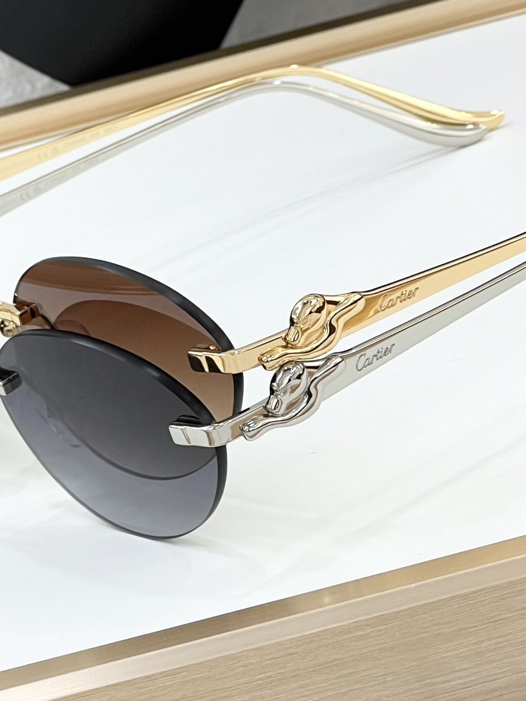 這款太陽眼鏡是AAAAA 1:1 質量(非常棒). 使用了和原版一模一樣的材料. 商標部分也保持了和卡地亞/Cartier一樣. 圖片拍攝是實物太陽眼鏡拍攝, 您所收到的實物保證和我們圖片一模一樣.